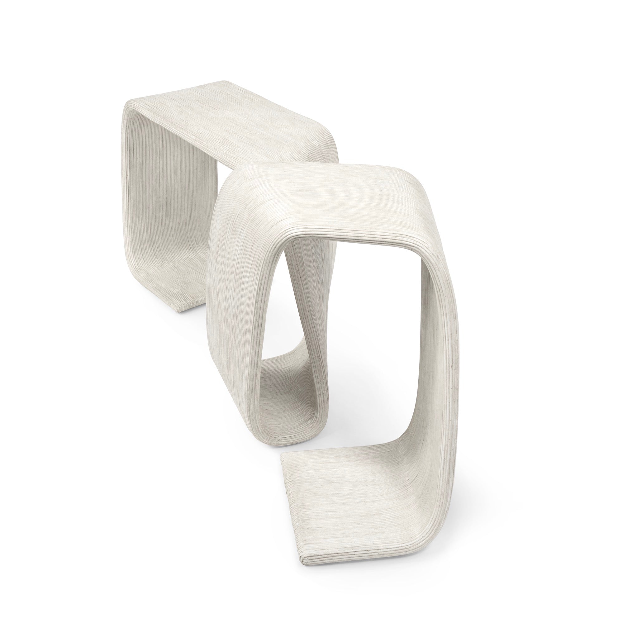 DescriptionCore rattan in a whitewash finish hand-bent and laminated over a powder-coated metal frame in a unique scrolled design. Texture, size, and color may slightly vary. Coordinates with the Allegro white collection.