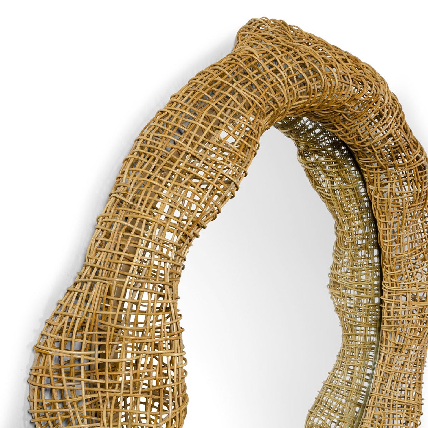 DescriptionMirror is framed in a hand-formed split rattan open weave in a natural finish hand-formed over a powder coated metal frame. Mirror includes metal cleat for mounting. Coordinates with the Andorra collection.