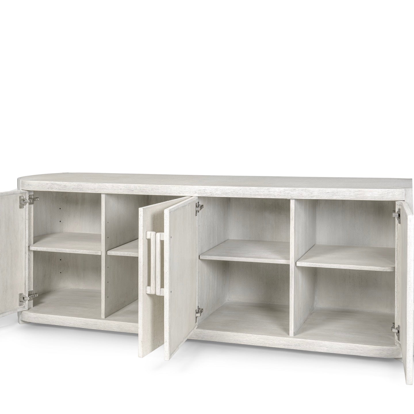 DescriptionSolid oak hardwood frame and handles feature an inlayed raffia top, sides and door fronts all in a whitewash finish. Four inside compartments feature one adjustable shelves. Coordinates with the Astoria collection. Sideboard is shipped on a pallet and may require lift gate and/or forklift. White glove option is also available. Please inquire further with our customer service team.