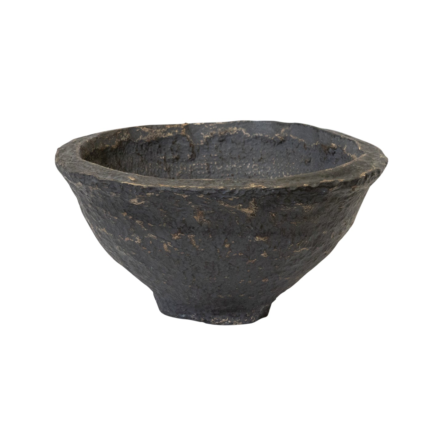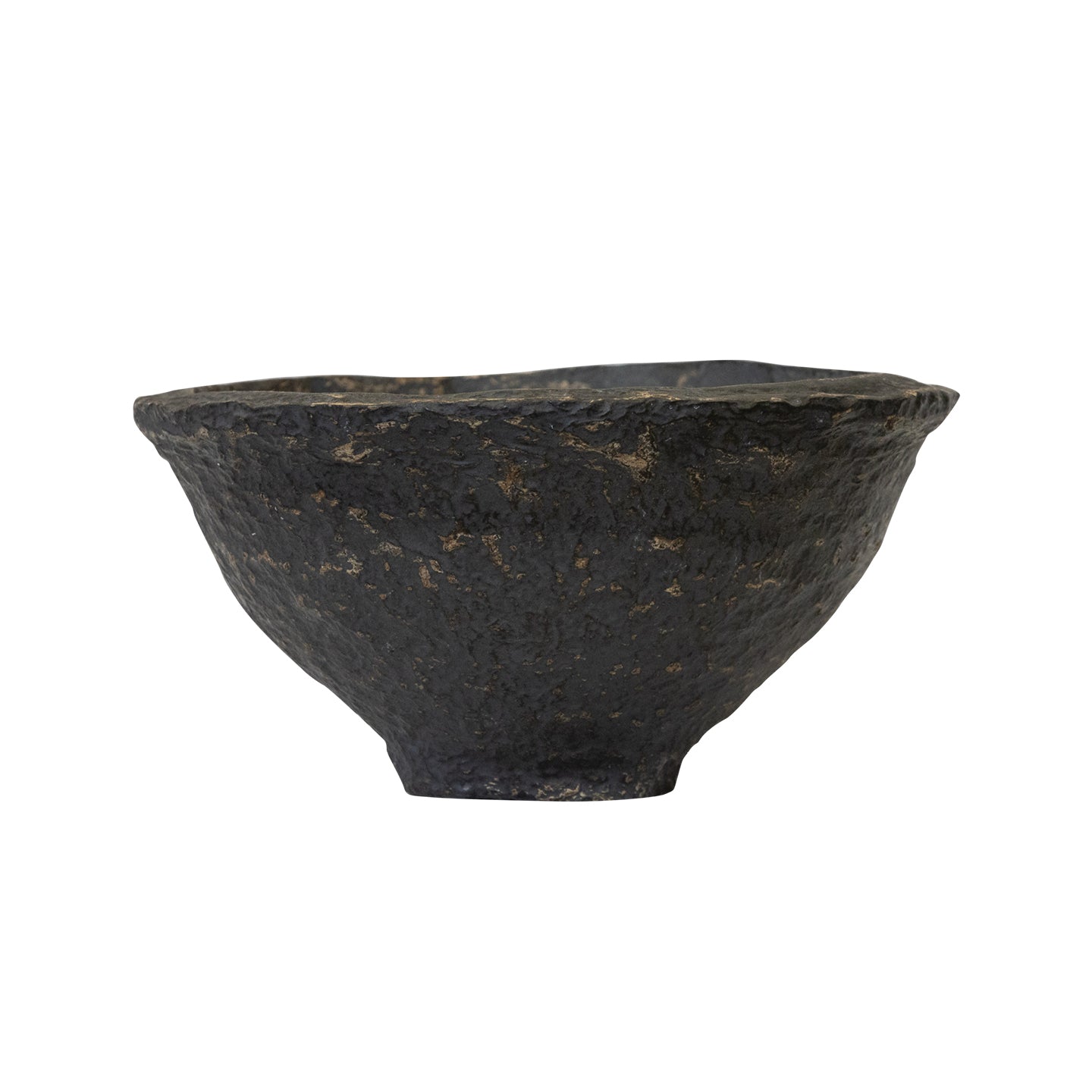DescriptionRaw and unpolished, this hand sculpted paper mache bowl is abundant in texture and colour variations. An interesting use of material and technique, this piece is characterised by unique shapes and uneven edges shaped by its maker's hands.