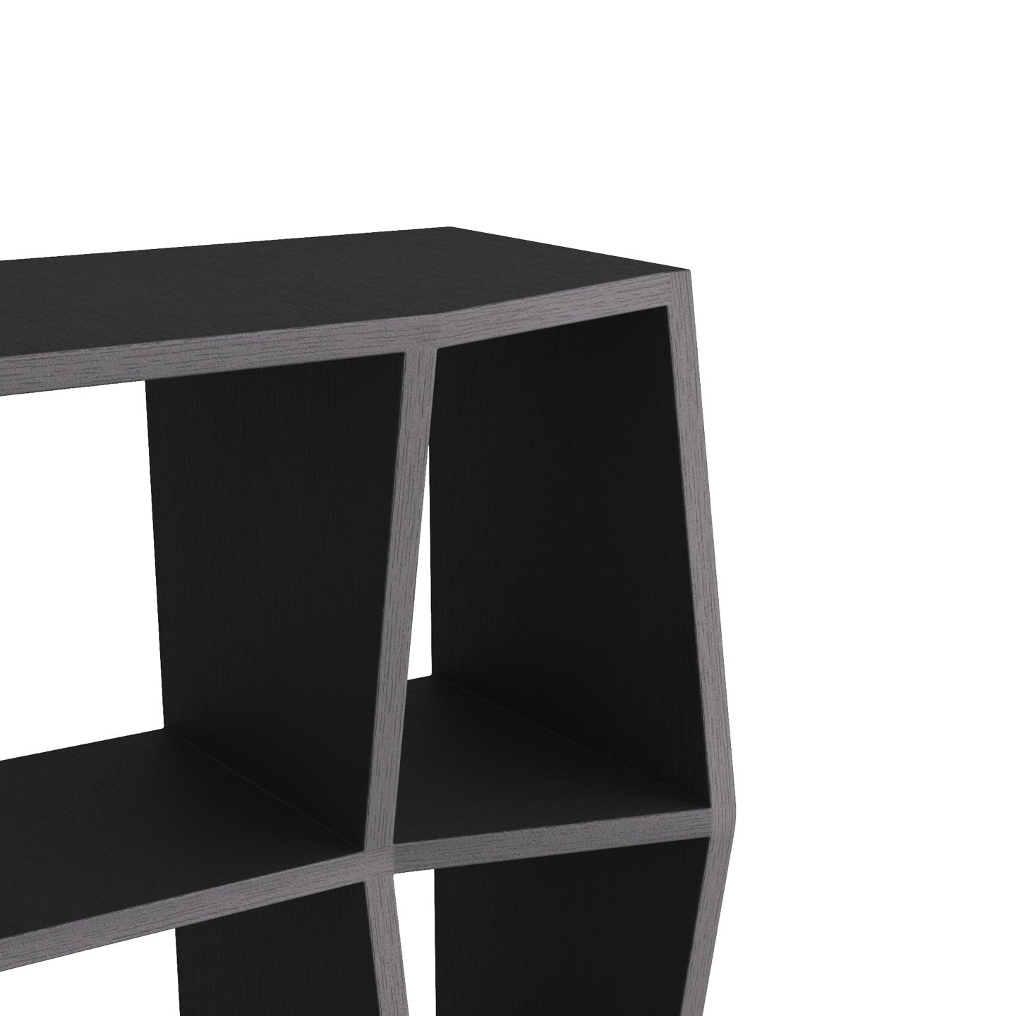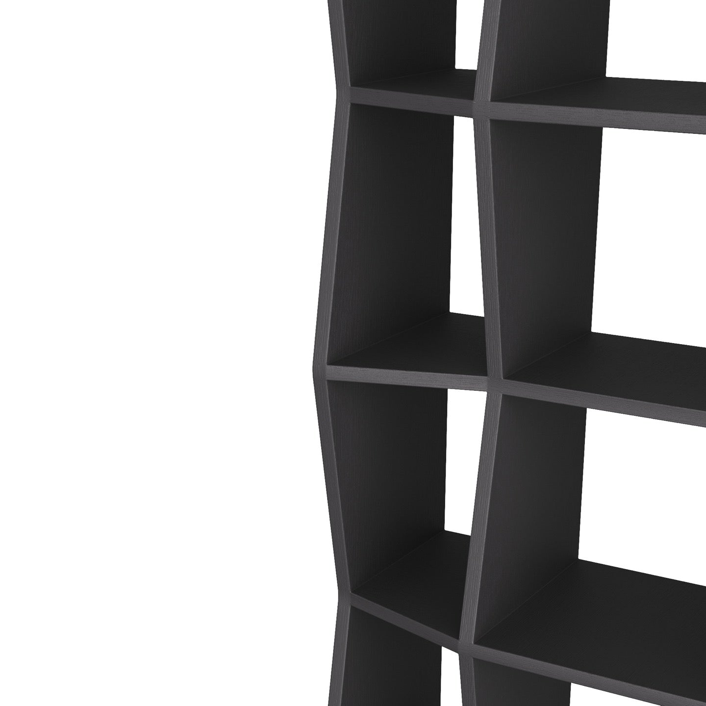 DescriptionSubtle zigzags elevate the classic structure of our bookcase. Designed with shelving of varied depths, its playful angles add dynamism to any space. Finished in ebony over white oak veneer