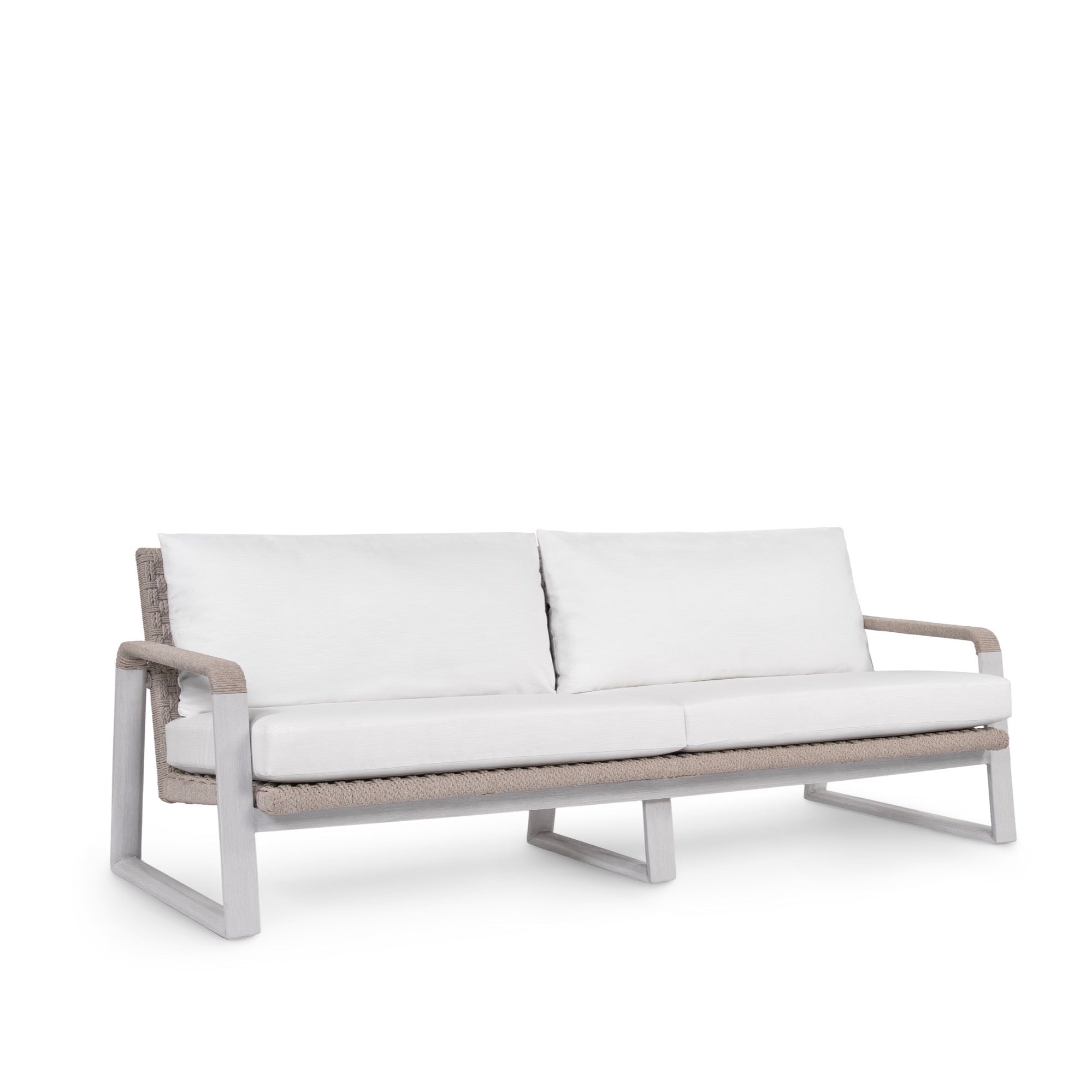 DescriptionTaupe colored all-weather rope is meticulously braided and woven on the seat and back which sits suspended in a hand-painted whitewash textured finished aluminum frame. The rope is resistant to cracking, peeling and fading. Chair comes with a loose seat and back cushions. Coordinates with the Blake outdoor collection.