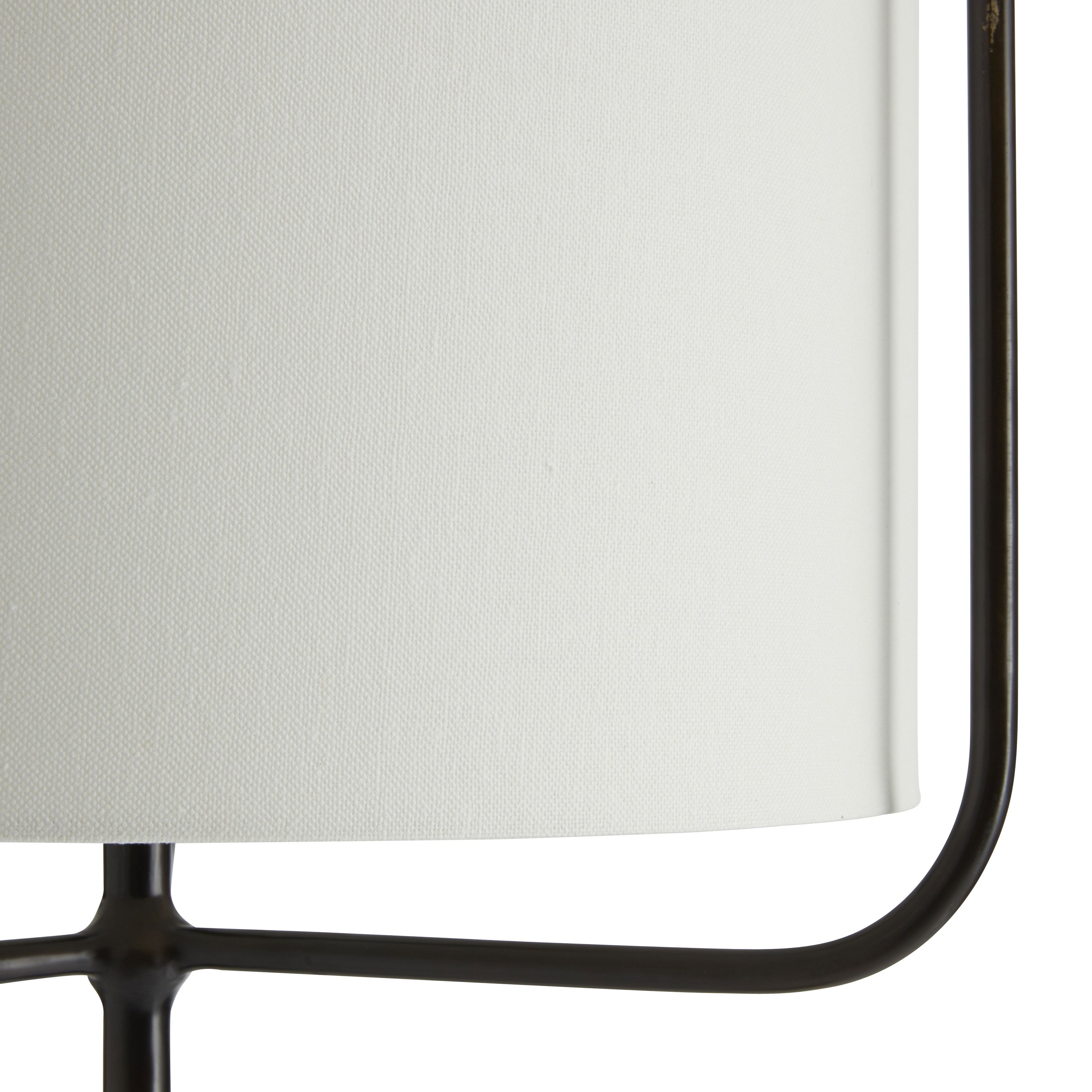 DescriptionA delicate iron frame in a bronze finish dons an oversized drum shade to create this simple and sophisticated floor lamp. Three arms surround the shade offering a unique visual appeal as it appears to float. The sleek frame is fashioned to an antique brass iron base for a striking contrast and the off-white linen shade with off-white cotton lining is complemented by a 1" brass sphere finial. A great addition to traditional at-home and commercial settings. All Arteriors lighting pieces are re - wired with black wiring. During the re-wiring process for AU/NZ certification this items ceramic sockets have been replaced with black plastic sockets.