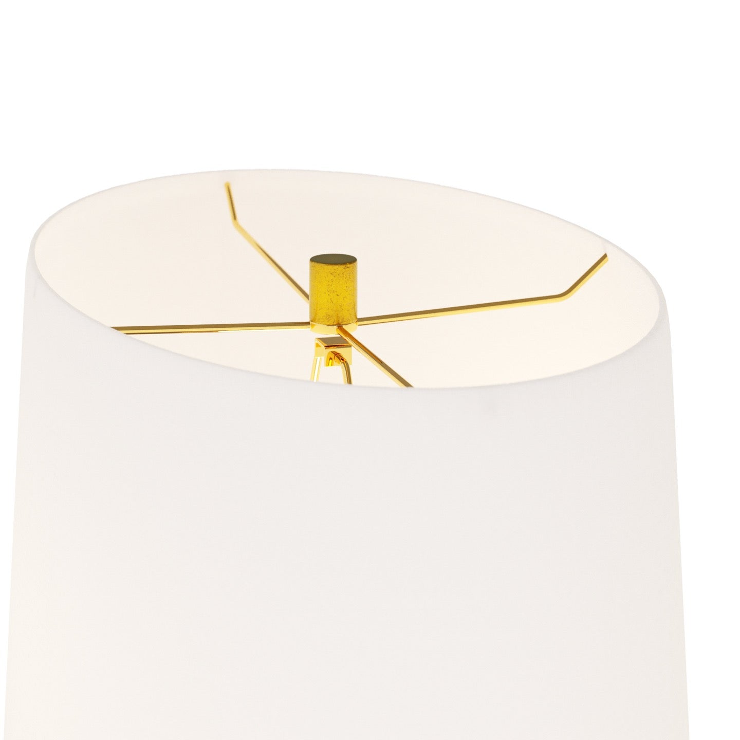 DescriptionIts form gently undulates to highlight an intriguing mix of gray, black, and white patterns atop an oval base of antique brass. An oval drum shade of white microfiber lined in cotton adds a neutral accent. Taupe cloth cord and three-way rotary switch. Finish will vary
