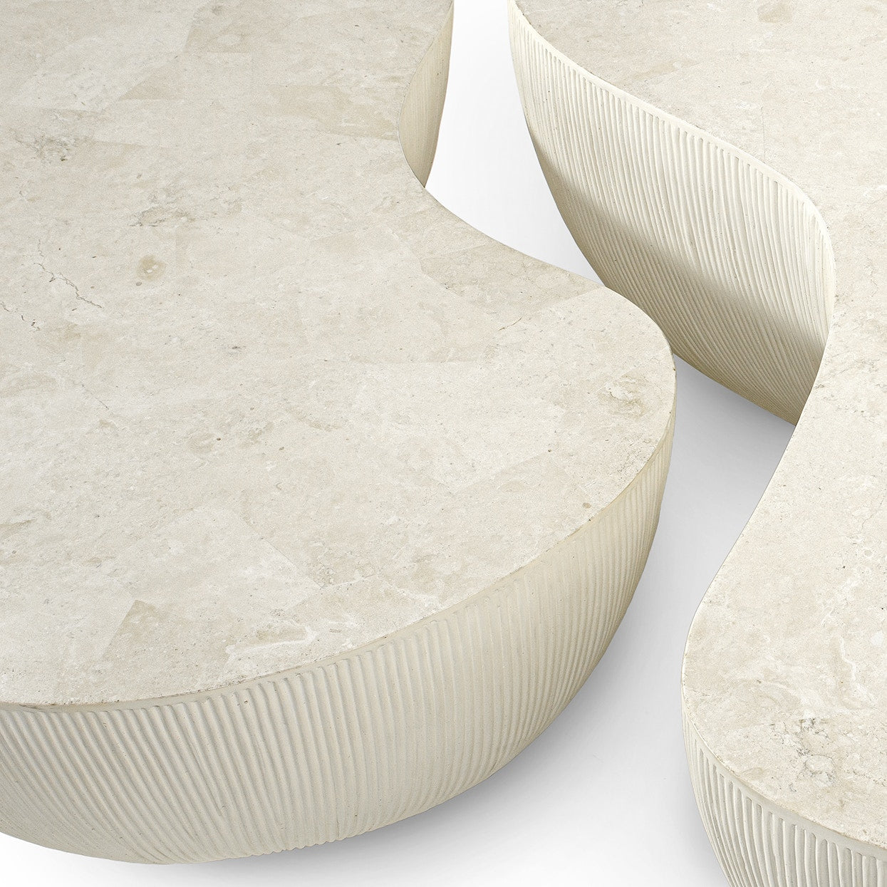 DescriptionCast from a hand-carved mold with white reeded stonecast texture and fiberglass body, this table features an inlaid white agate stone top and is entirely suitable for outdoor use. Agate stone is a natural material and will vary in color and grain. Table coordinates with the smaller version of this design (771779).