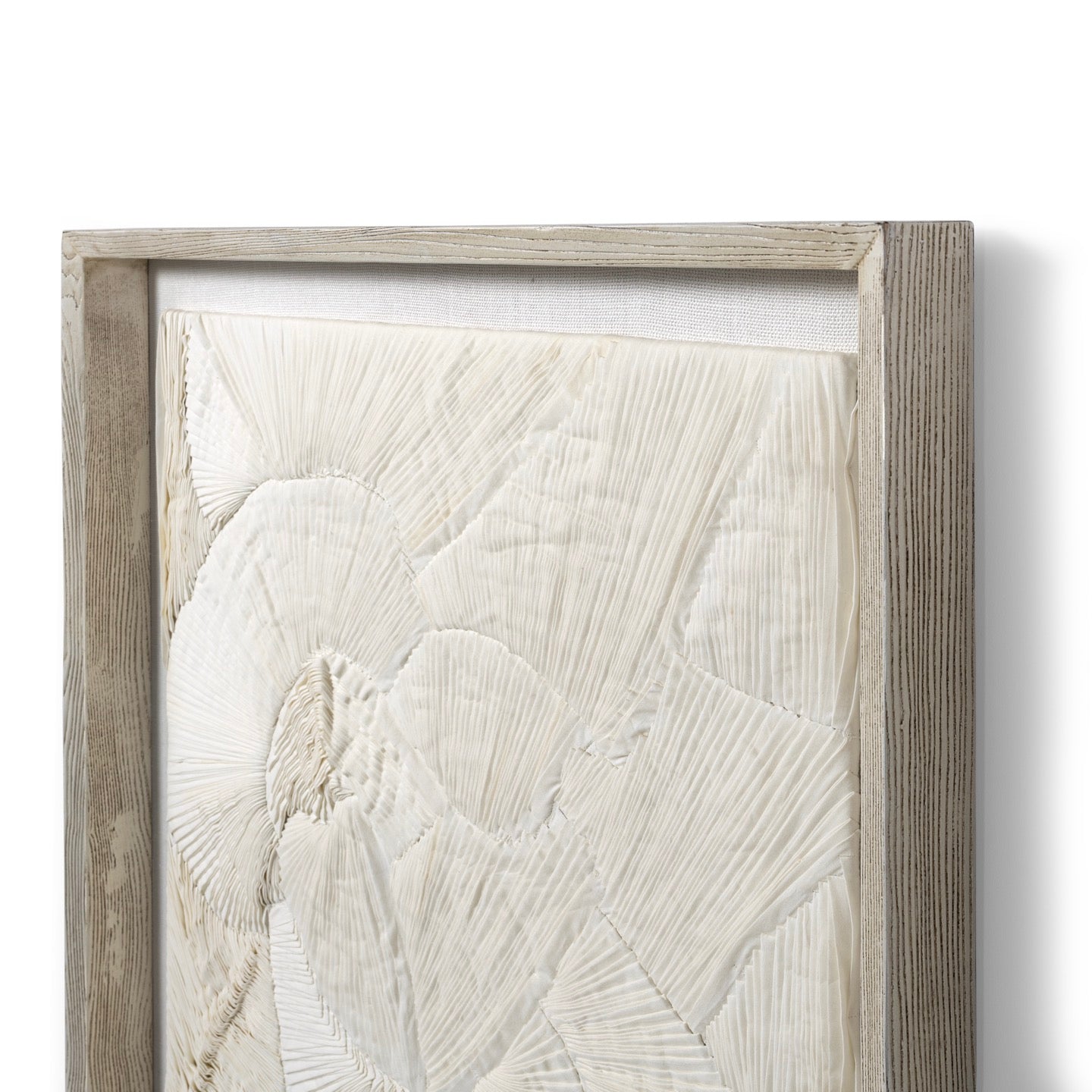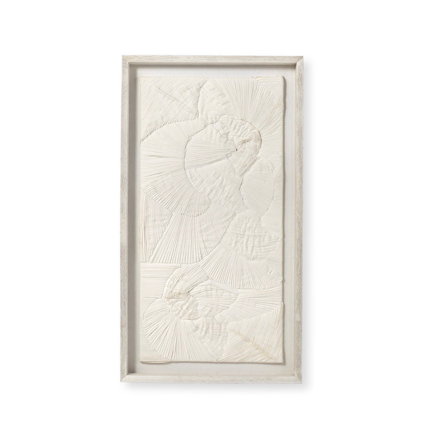 DescriptionNatural cotton poplin fabric pleated and hand-sewn together, creating a soft textured flowing design set over a thick linen background with a cerused white oak frame. Decor comes with metal cleats to hang both vertically and horizontally.