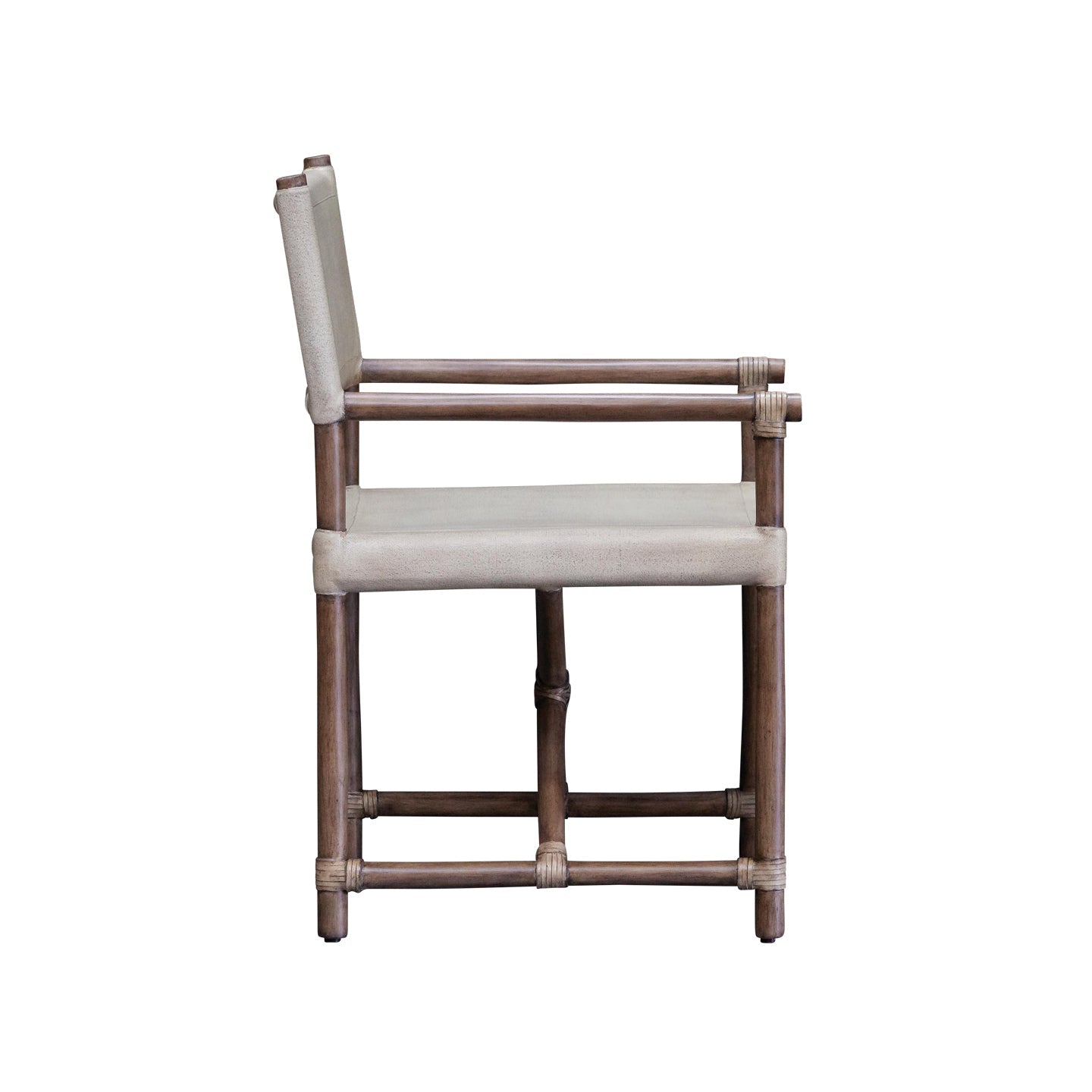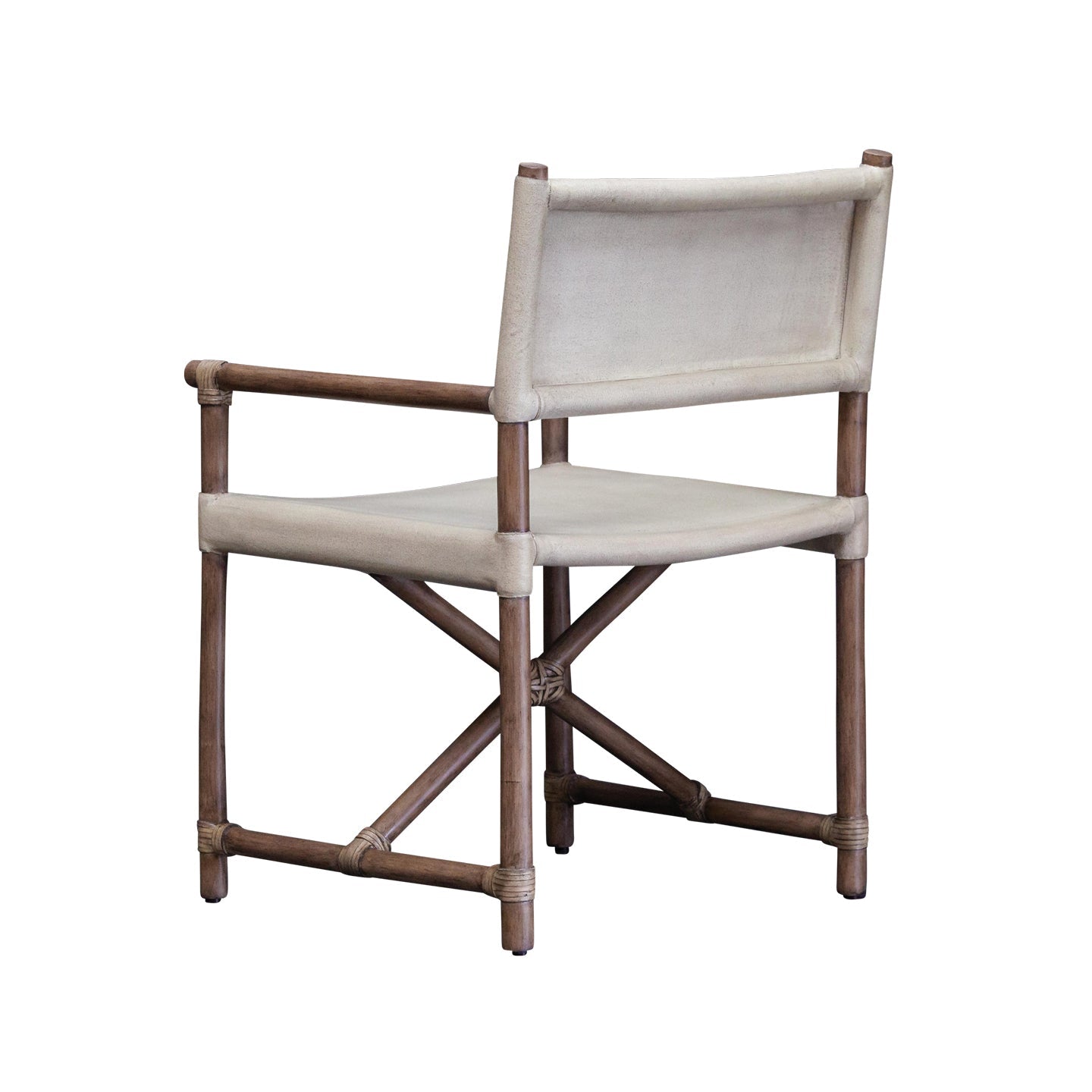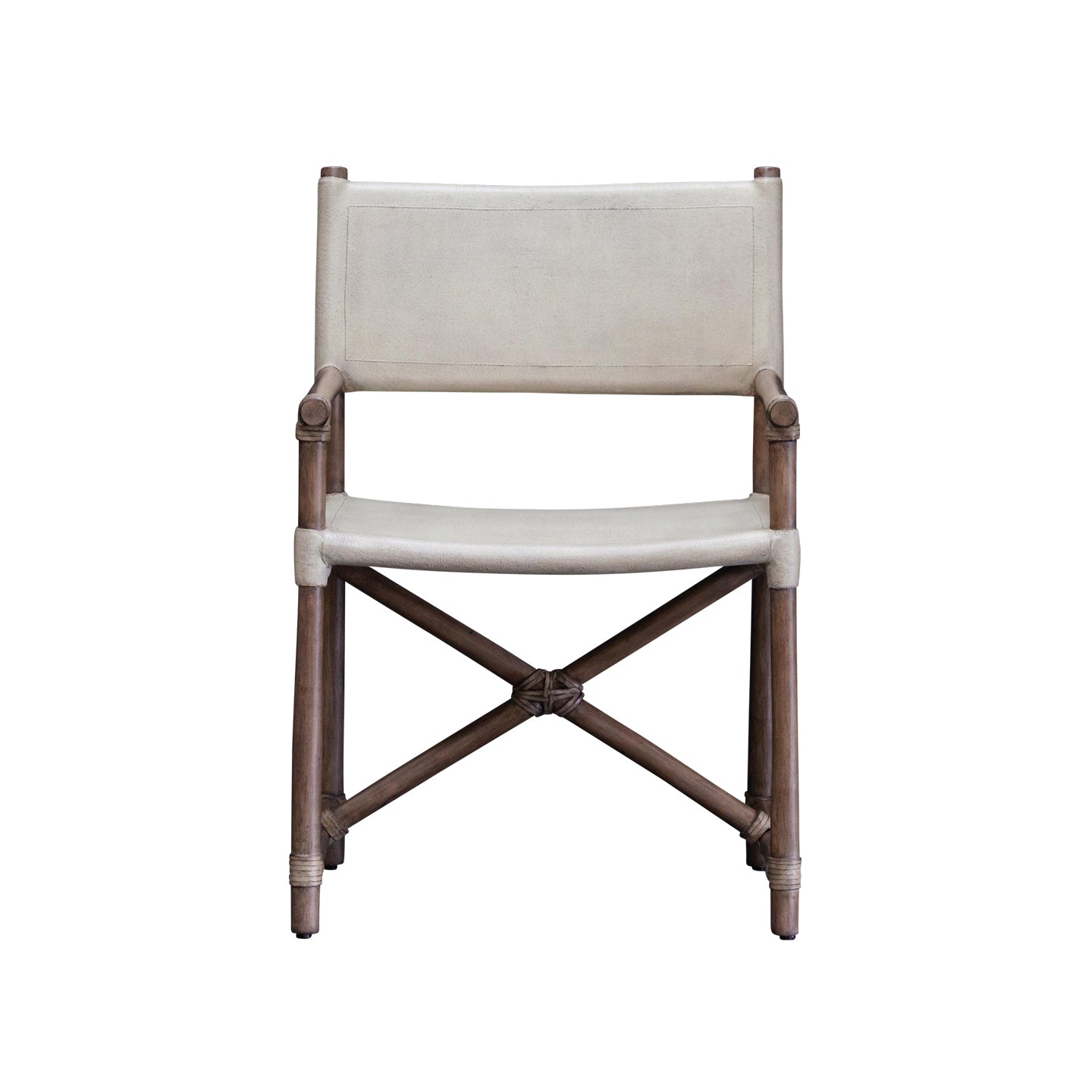 This interpretation of a classic directors chair takes design cues from safari and campaign-style furniture. Reflecting decades of timeless furniture design, this piece pays homage to colonial influences with its solid rattan frame and laminated canvas seat and back rest.