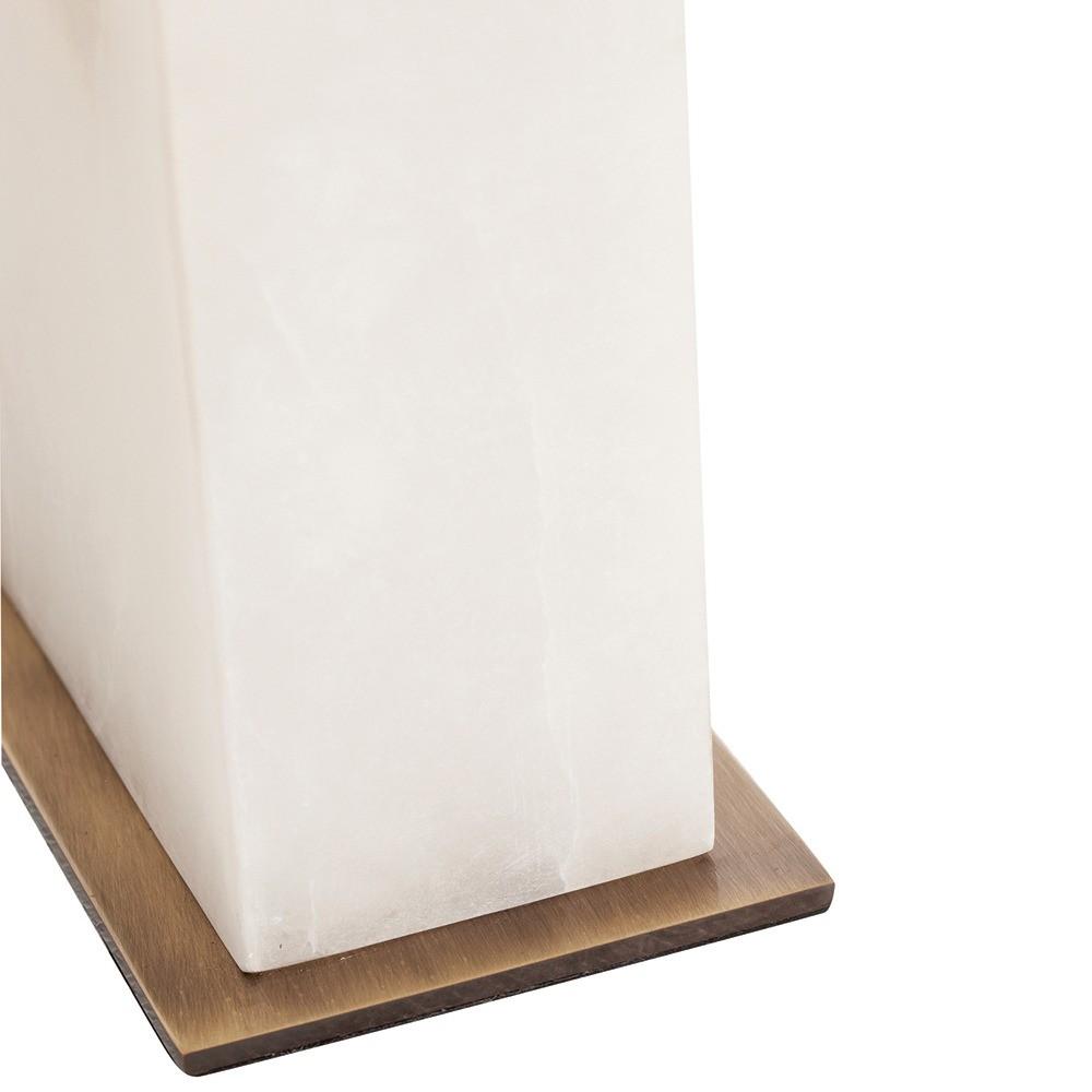 DescriptionSimple and elegant the Carson is defined by a rectangular slab of snow marble atop a brass base. Topped with a rectangle ivory microfiber shade lined in cream cotton. All Arteriors lighting pieces are re - wired with black wiring. During the re-wiring process for AU/NZ certification this items ceramic sockets have been replaced with black plastic sockets.
