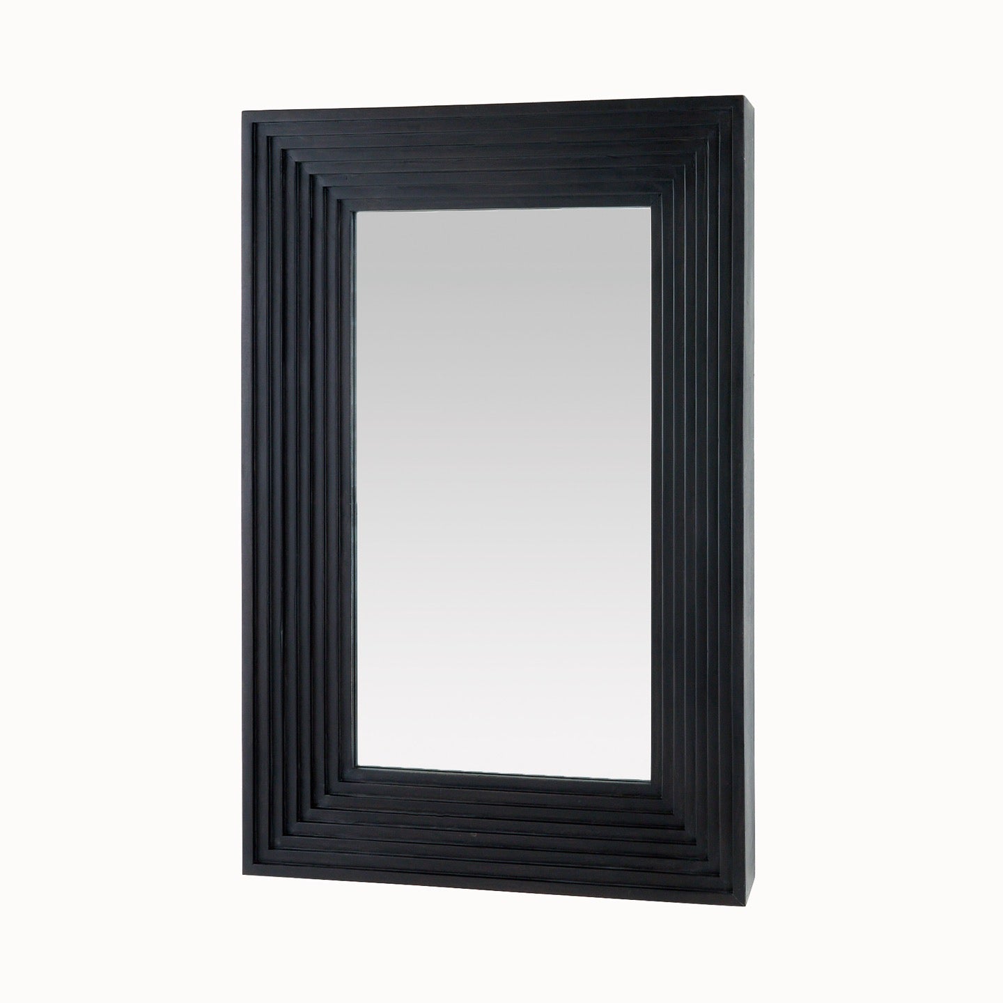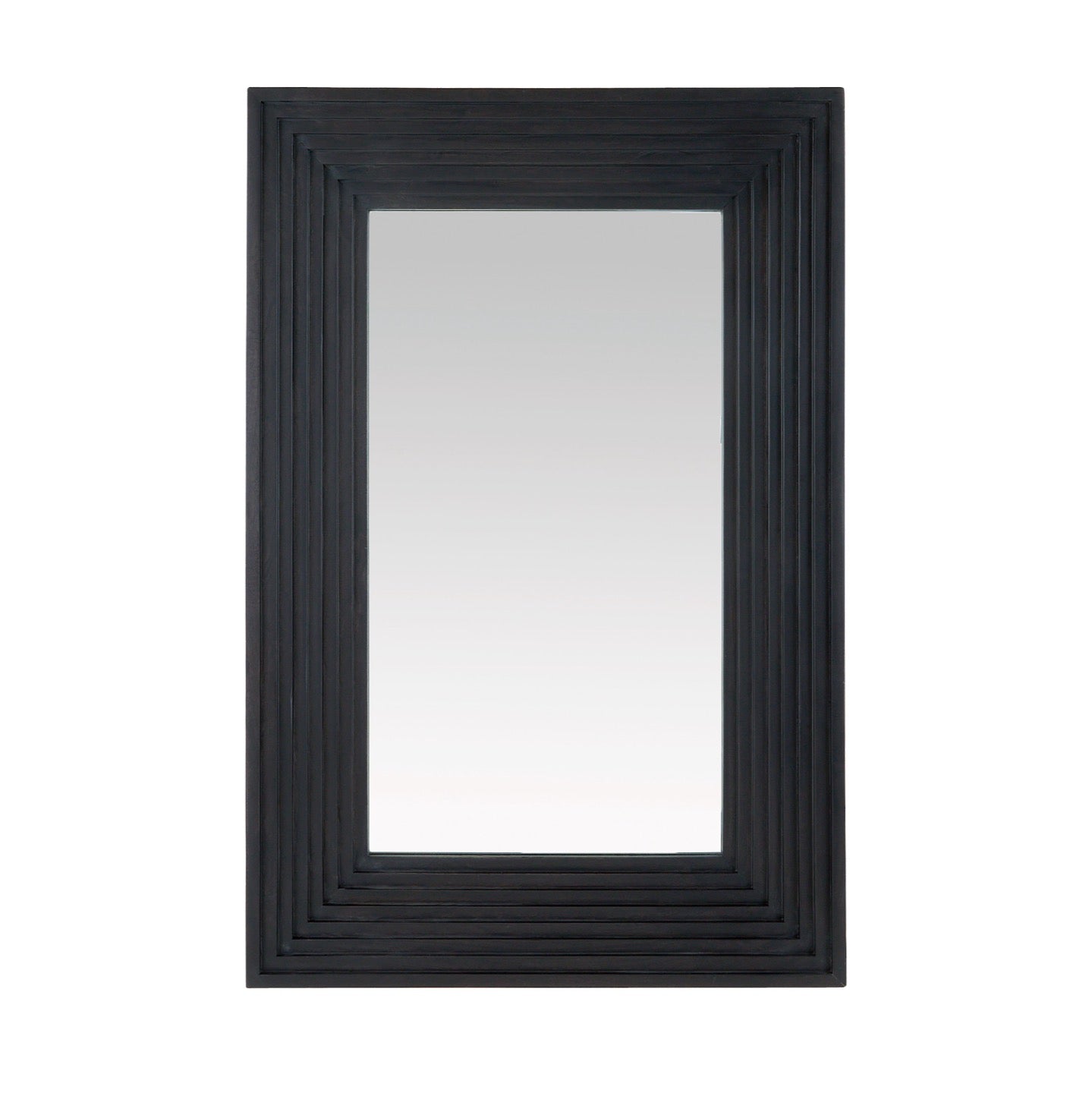 DescriptionA minimal rectangular mirror is framed with stepped, muscular detailing carved to draw the eye. Crafted of mango wood of a rich ebony hue, our inverted style was designed to be hung horizontally or vertically. Accented with a secure cleat attachment at the back. Finish will vary