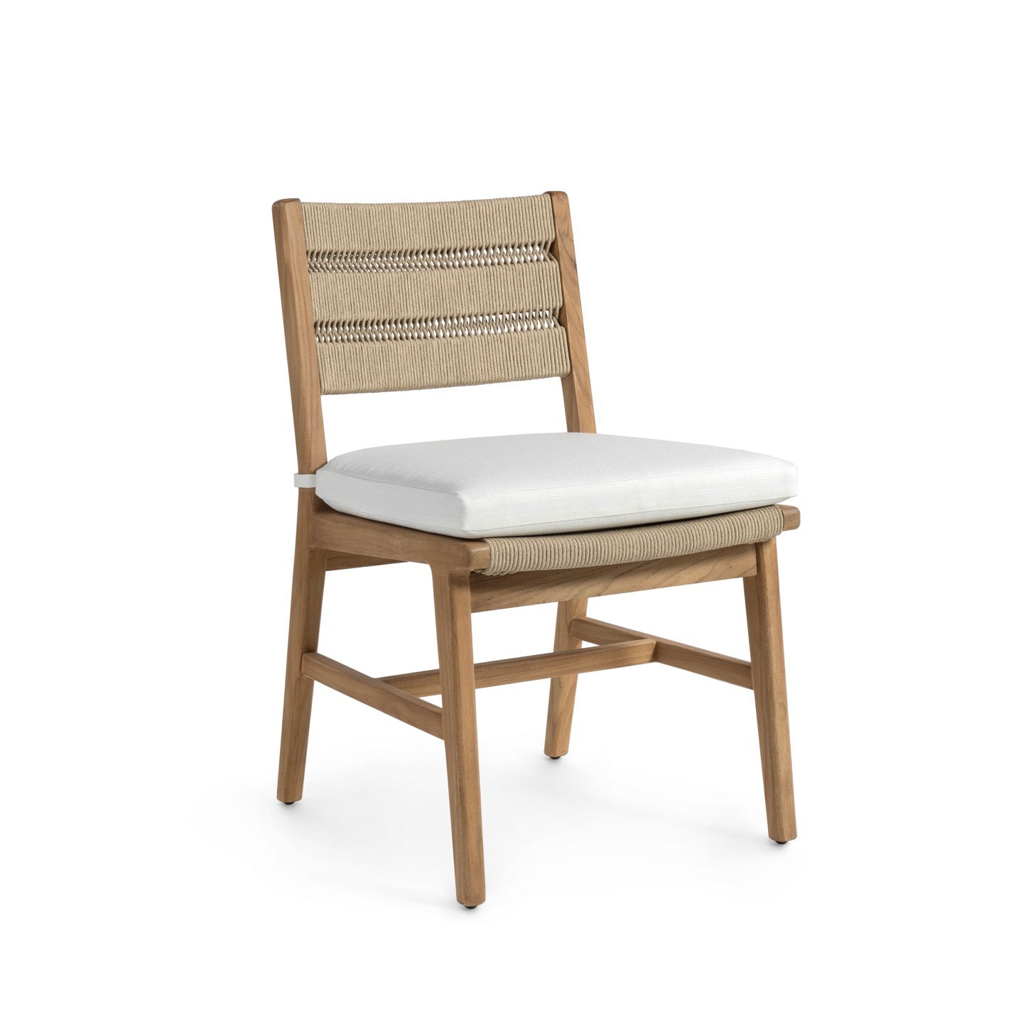 DescriptionNatural teak wood frame and legs feature a double wall back of all-weather synthetic rope with maximum UV protection in beige. Natural teak wood is a golden brown color and over time, with exposure to the elements, will gradually change to a silver gray patina which distinguishes finely aged outdoor teak. Weave is resistant to cracking, peeling, fading and breaking. Chair comes with a loose seat cushion. Coordinates with Covington outdoor collection.
