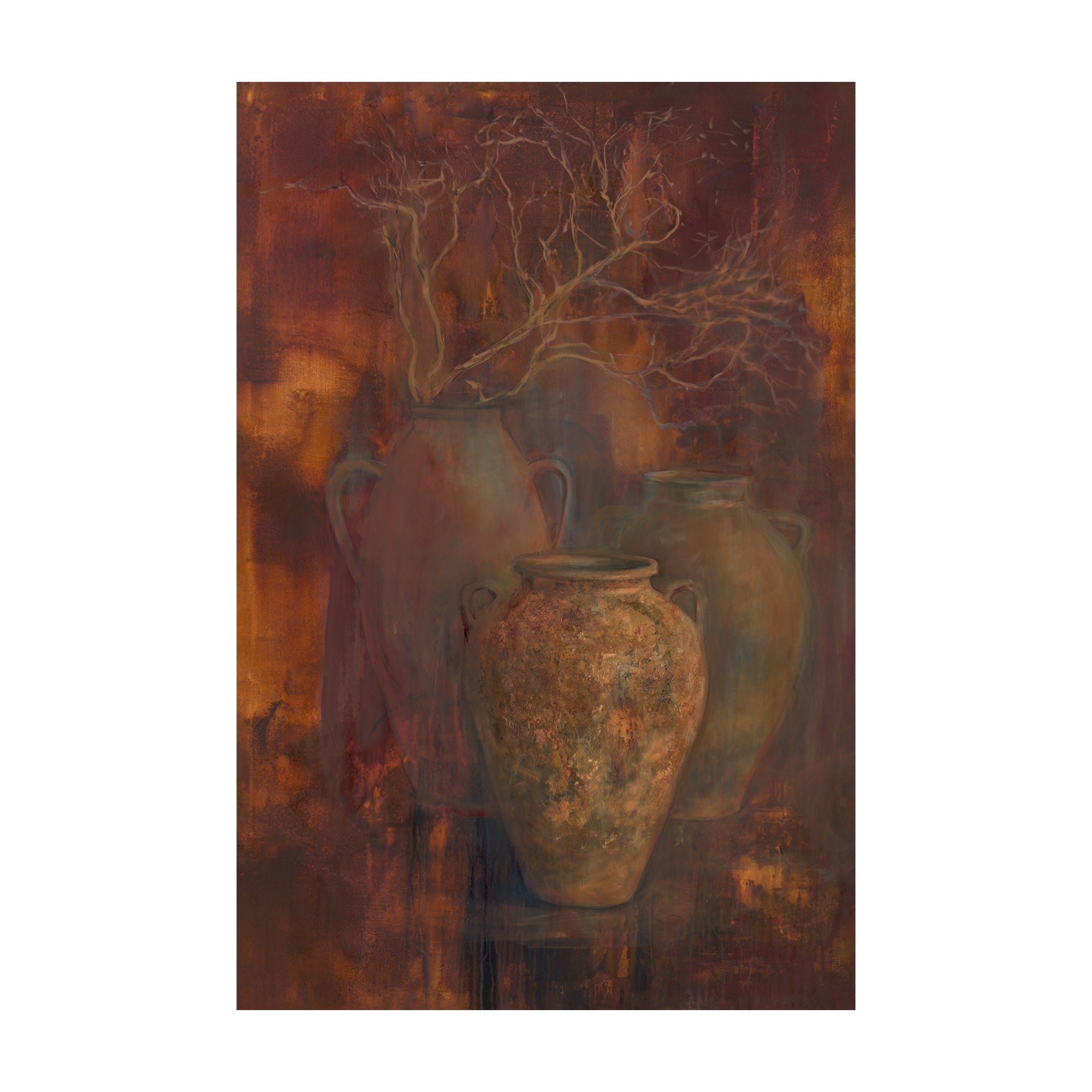DescriptionEarthen Grace by Maelani Blue celebrates the quiet beauty of timeworn pottery, layering deep terracotta, sienna, and umber tones to evoke warmth and history. Subtle highlights trace the contours of ancient vessels, while delicate branches add a touch of organic movement. Crafted on linen, the natural weave enhances the earthy palette and gives the piece a soft, tactile richness that echoes its grounded, timeless subject.