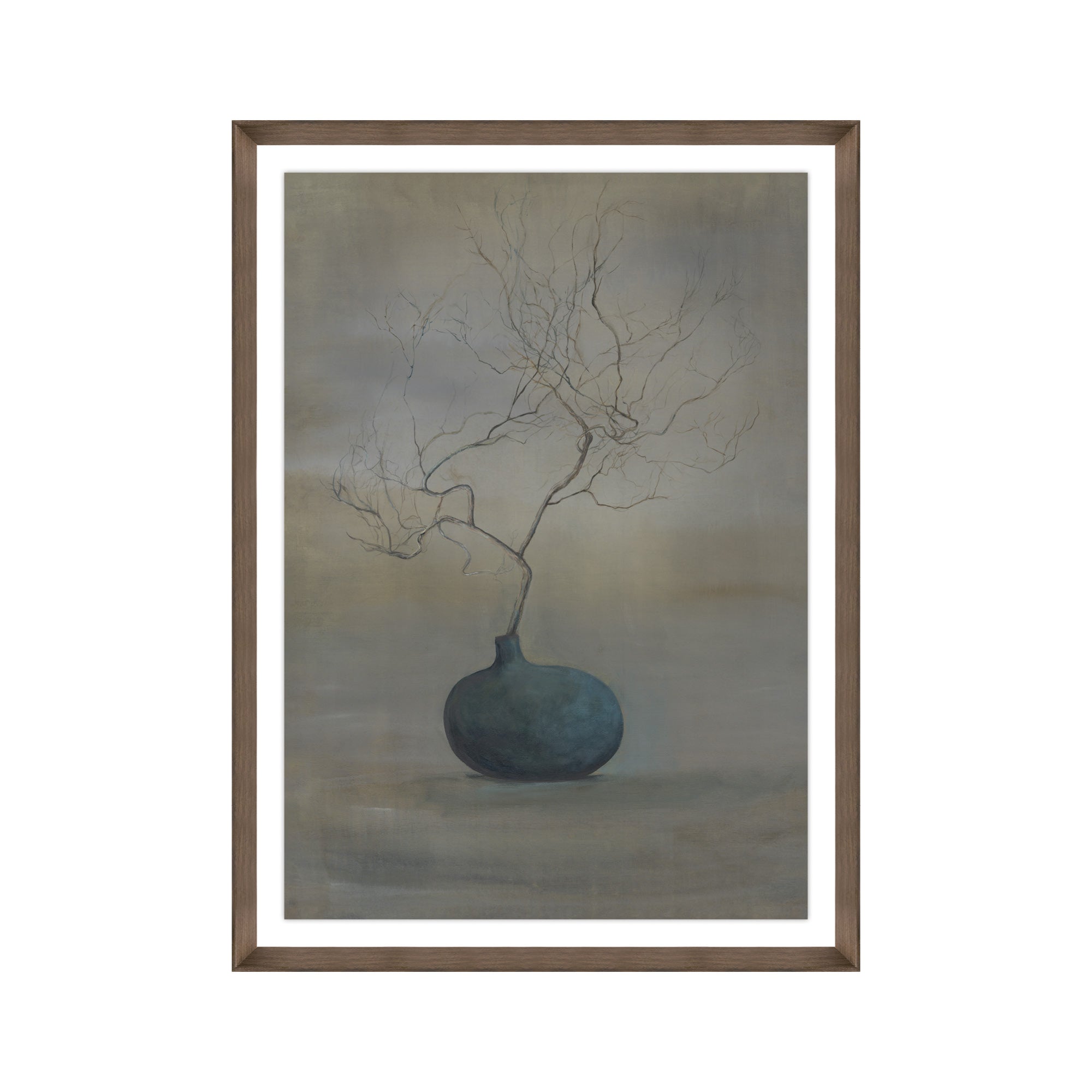 DescriptionEmbracing Imperfections III by Maelani Blue captures serene simplicity with a single rounded vessel and delicately branching stems set against a misty, muted backdrop. Gentle gradients of soft grey and blue invite a sense of calm introspection. Presented in a sleek glass frame, the piece gains a refined clarity that highlights its subtle textures and quiet, contemplative beauty.