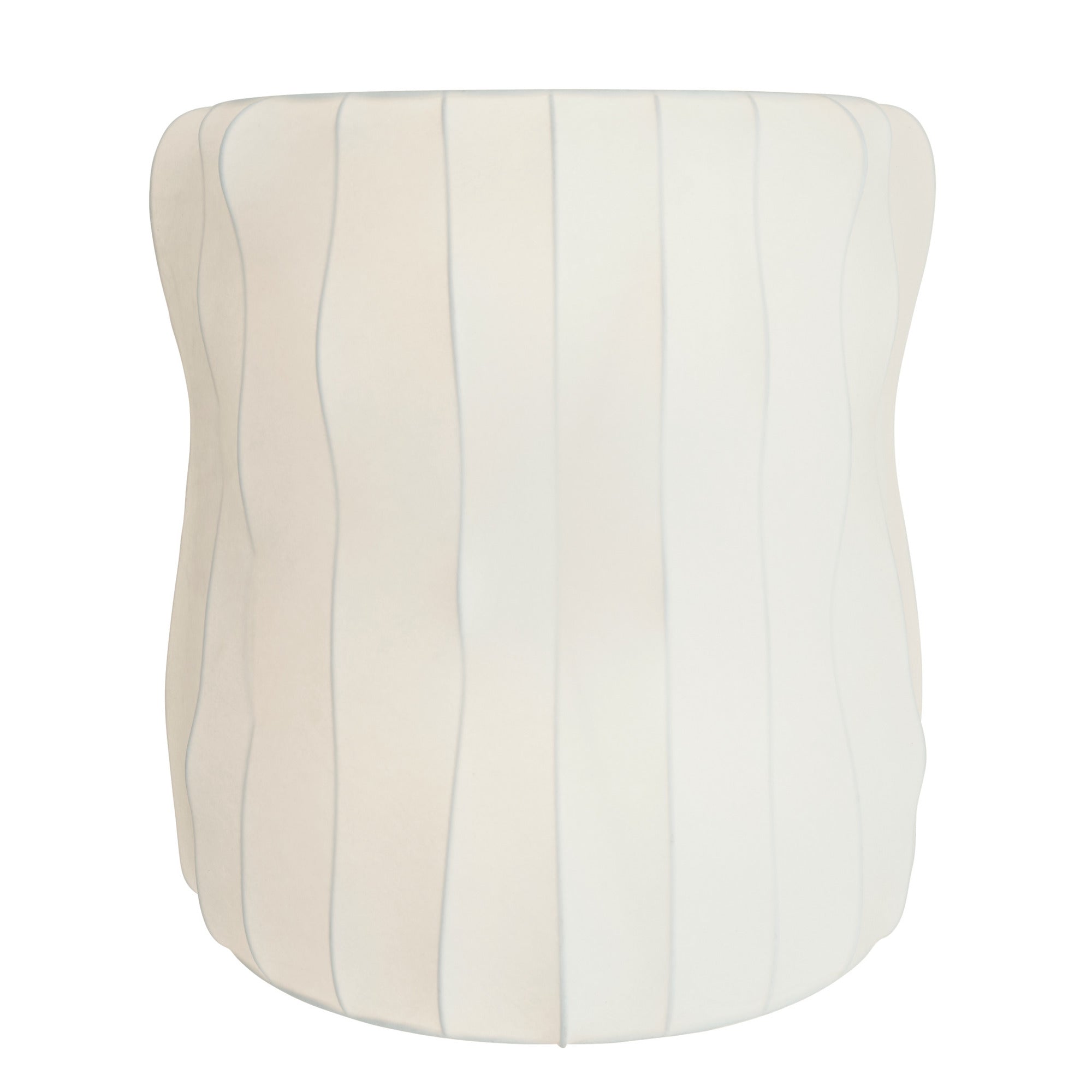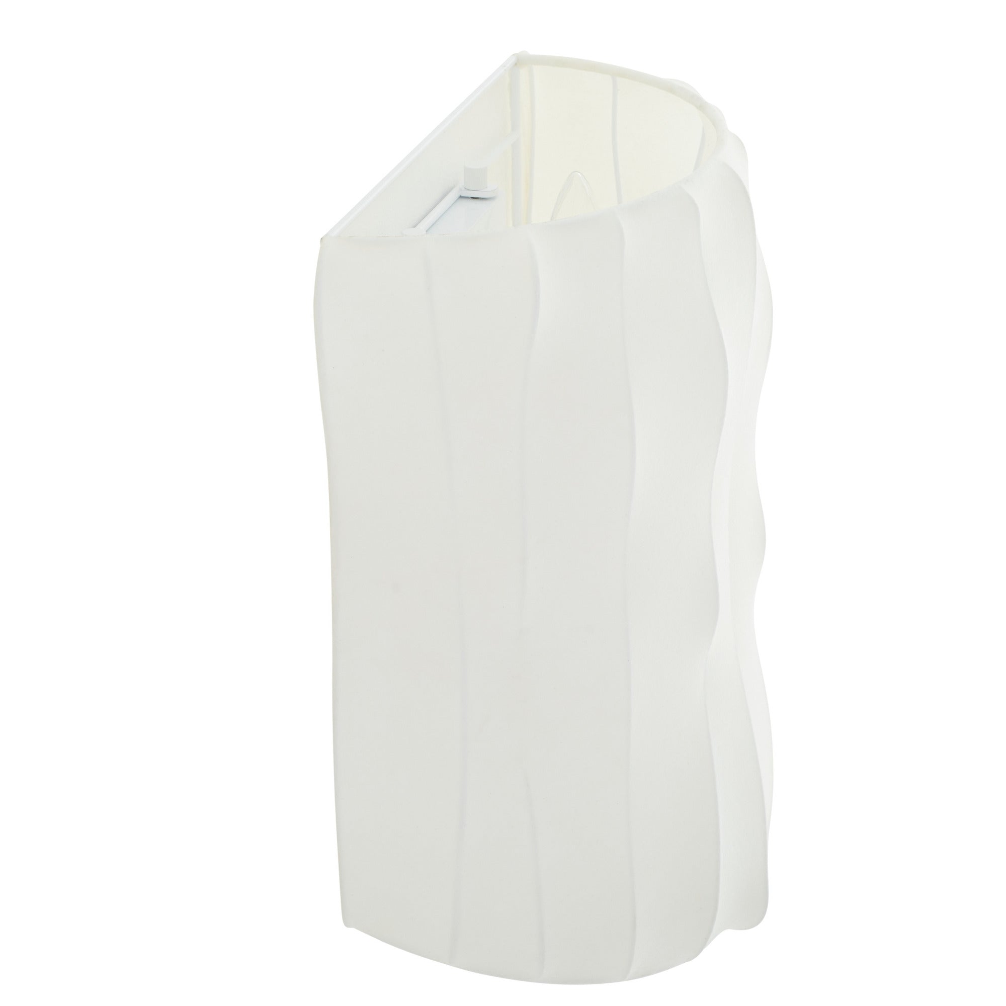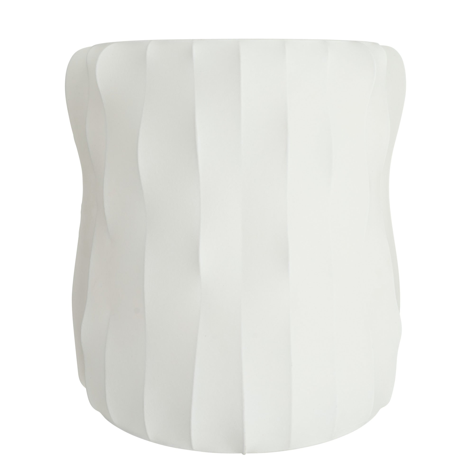 DescriptionFaux ivory vellum is stretched over a ribbed framework of antique brass-plated steel to form a curvaceous sconce. The simple yet gestural form allows illumination to take center stage. Damp-rated, although limited covered outdoor areas may affect finish. Finish will vary.