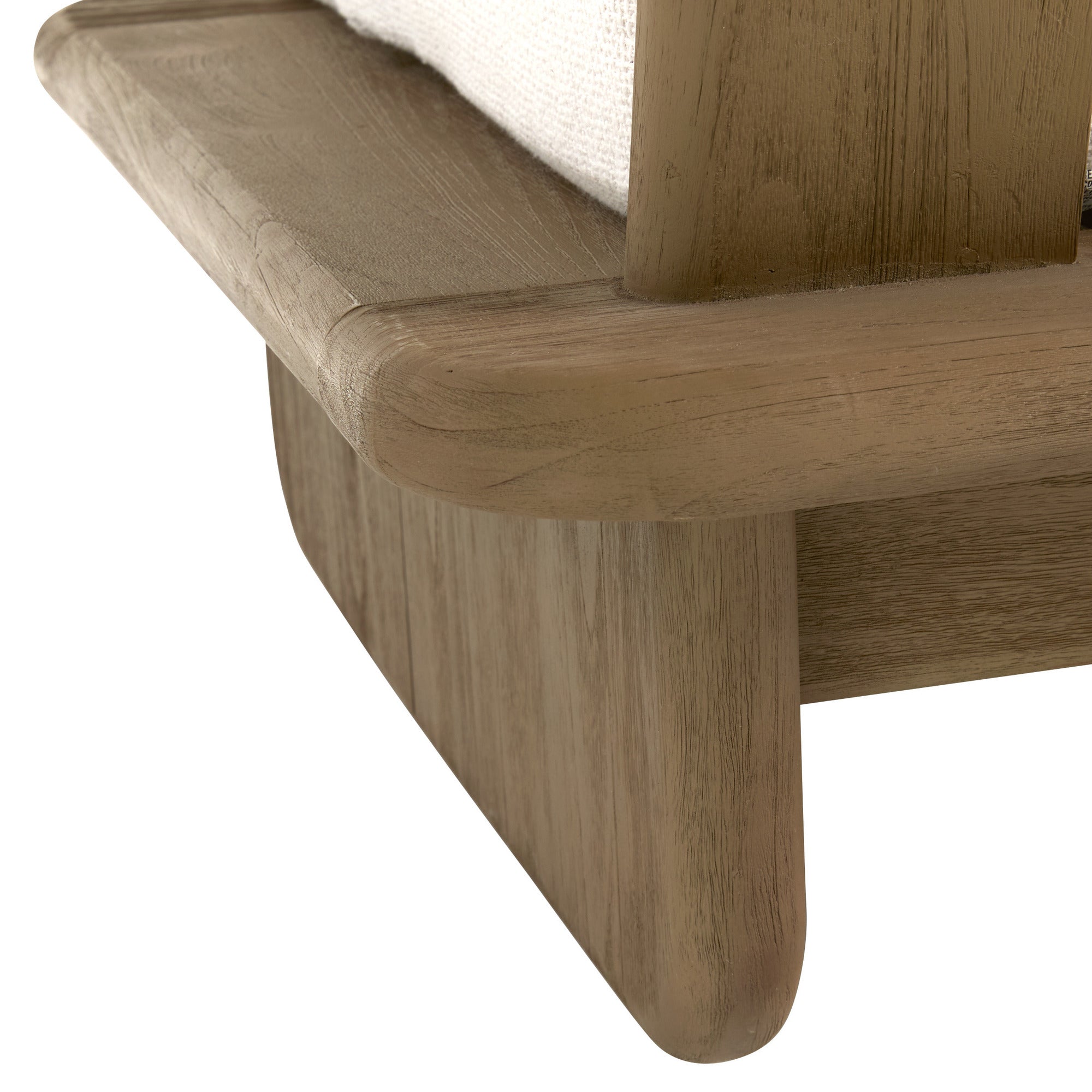 DescriptionPlayful yet contemporary, this small settee draws inspiration from the best Japanese design. Constructed of weathered teak wood, the planar form is finished with rounded edges and a deeper seat. Our Shale Outdoor Texture cushion and two lumbar pillows make this style the ultimate in lounging. Stylish on its own or when grouped in a pair. Wood will vary.