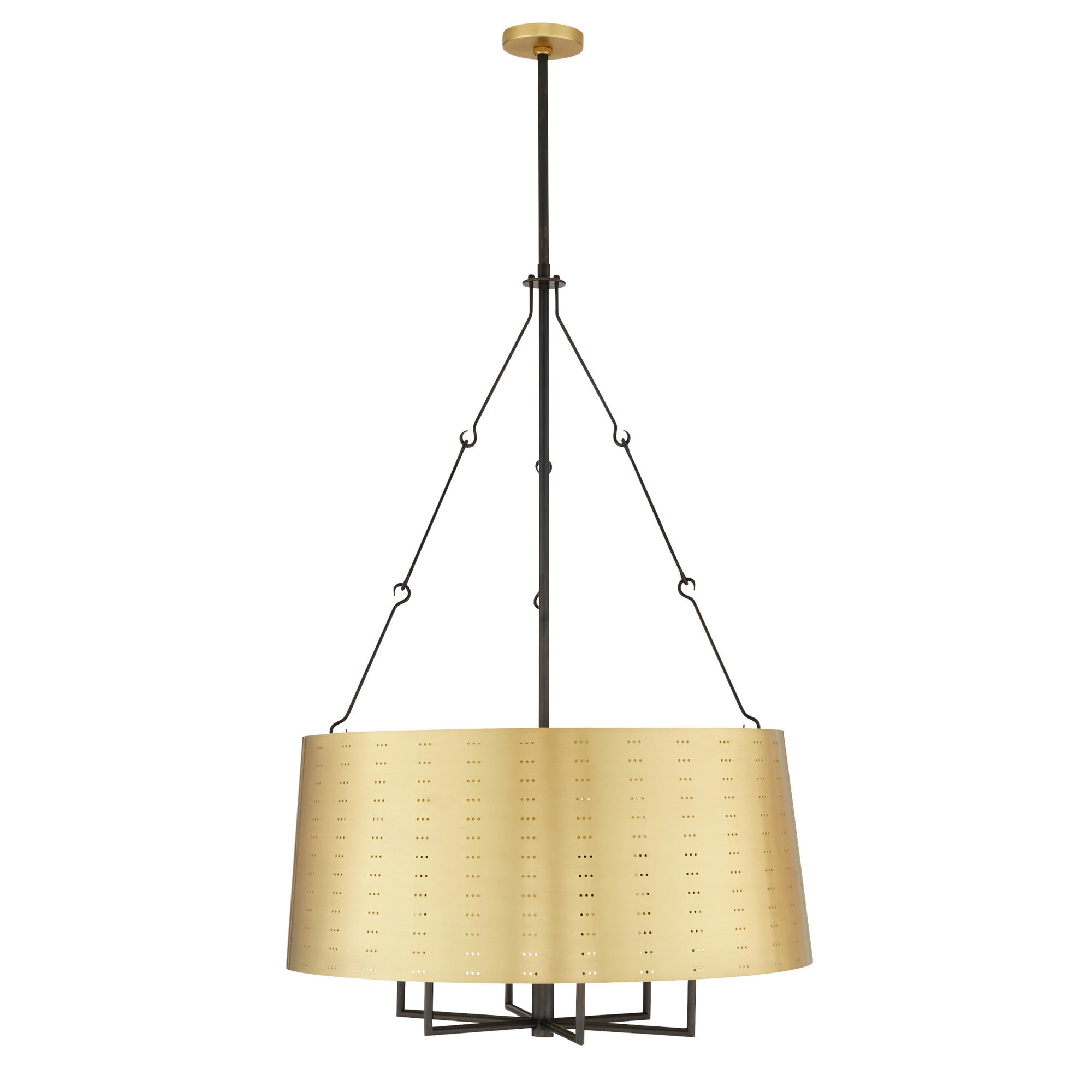 DescriptionWe perforated the Felipe to cast subtle shadows for a lace effect. Architecturally inspired, it juxtaposes an antique brass-plated iron shade with English bronze-plated iron arms and pipe. Damp-rated, although limited covered outdoor areas may affect finish.