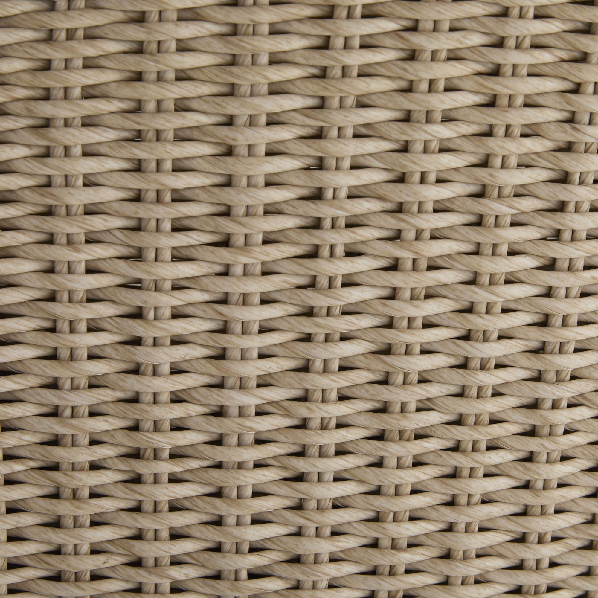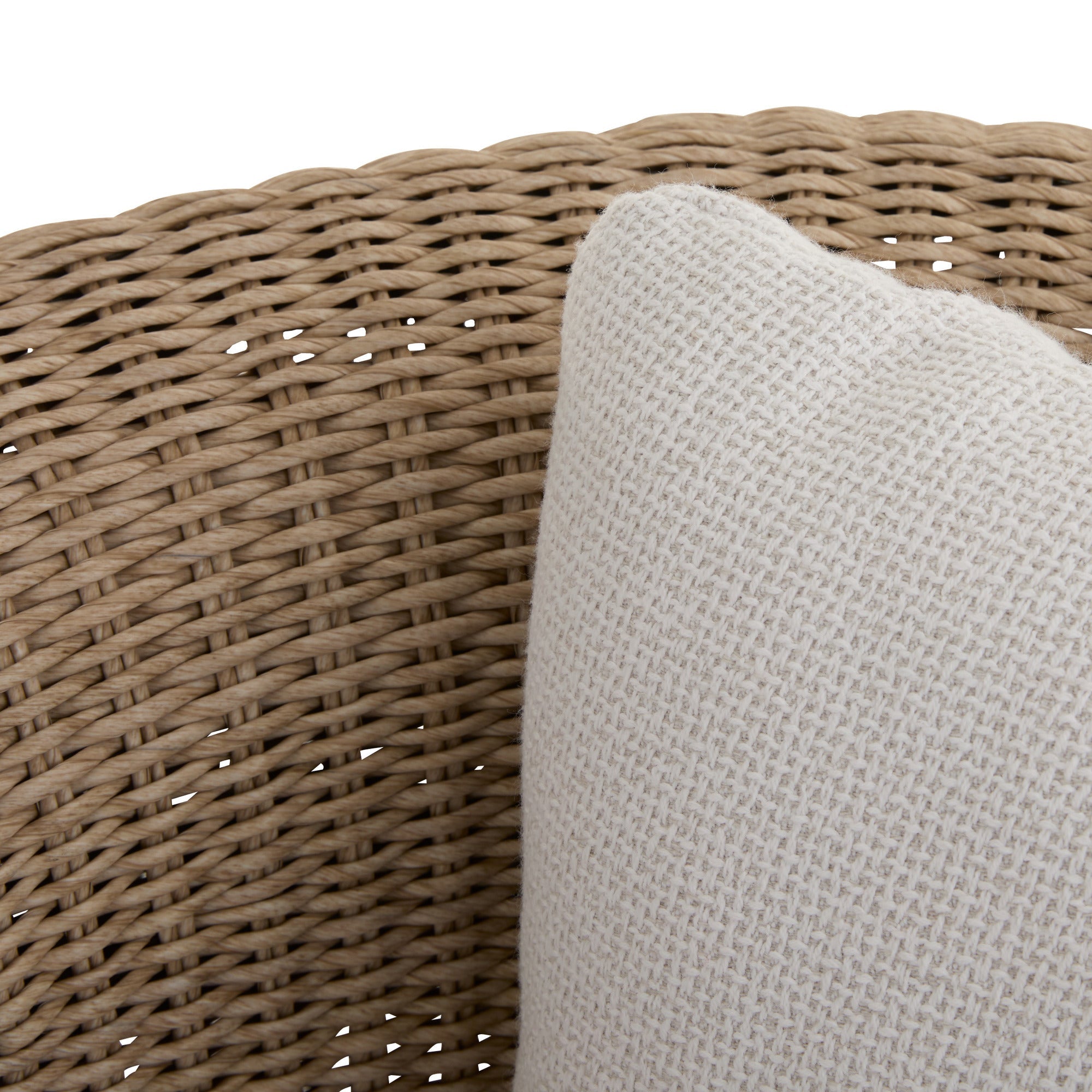 DescriptionLike a woven shrug, the fashionable form of this dune twisted synthetic rattan seat was designed to cradle the body like a hug. The playful yet contemporary form is overscaled, with wheat teak wood legs and roll edges. Our Pearl Outdoor Performance Boucle´ cushion and lumbar pillow are attached with Velcro. Finish will vary.