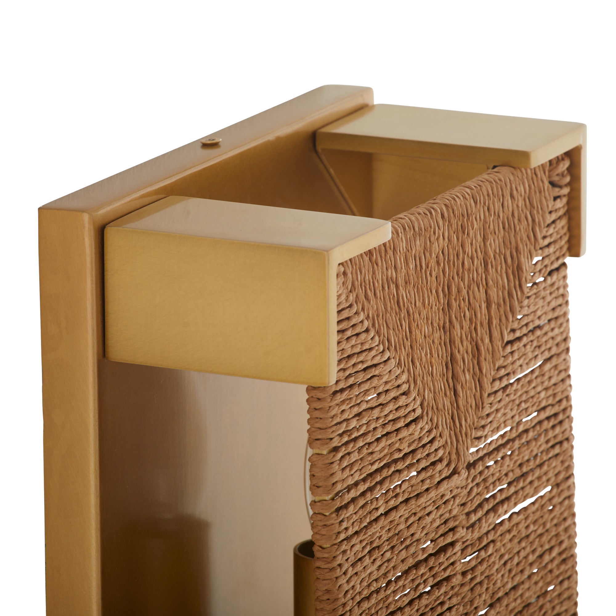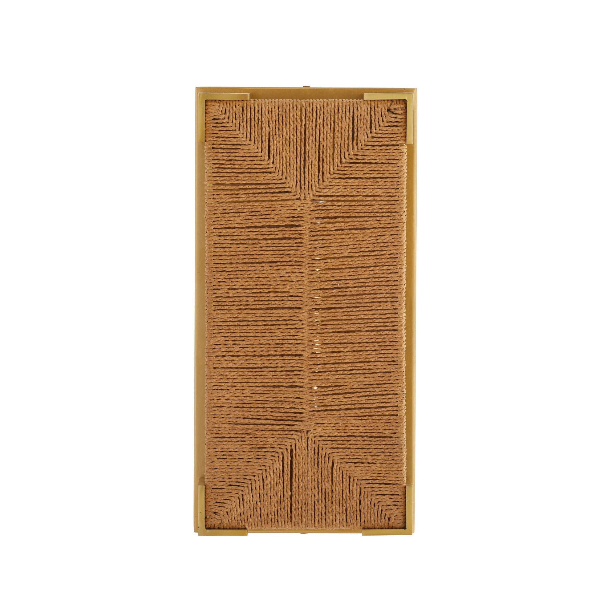 DescriptionWoven in a traditional Scandinavian rush seat pattern, this natural jute rope fixture lends a natural materiality to an architectural form. Clamped in an antique brass-plated iron setting, it is a dynamic addition to a classic coastal or rustic lodge-style interior. Damp-rated, although limited covered outdoor areas may affect finish. Finish will vary.