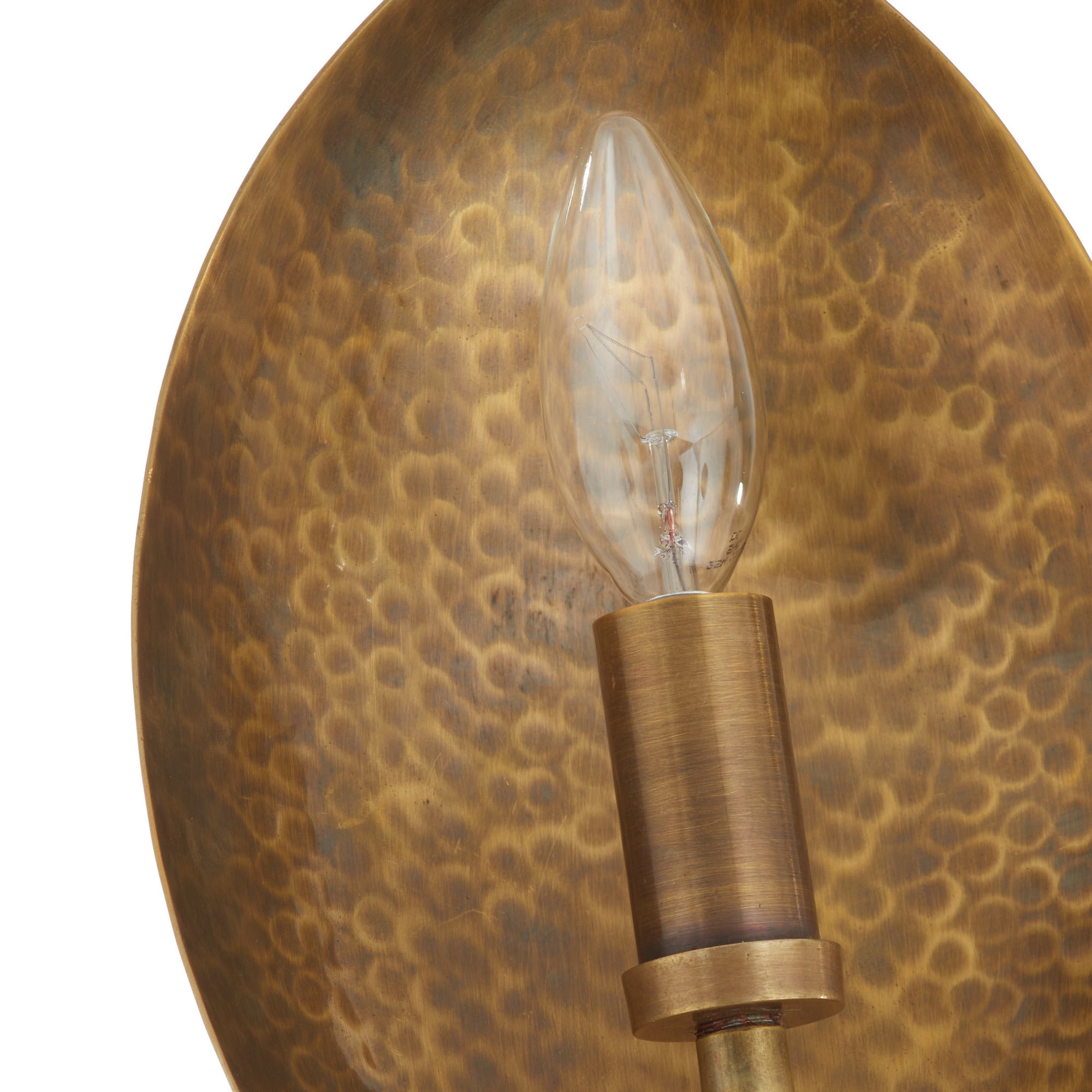 DescriptionThe reflective texture of our lotus-inspired vintage brass shades bounces light to every corner of the room. The delicate arms of this vintage brass-plated iron fixture shows the hand of its maker with hammered details. When suspended over a table, a small blossom adorns the bottom for an enchanting view. Damp-rated, although limited covered outdoor areas may affect finish.