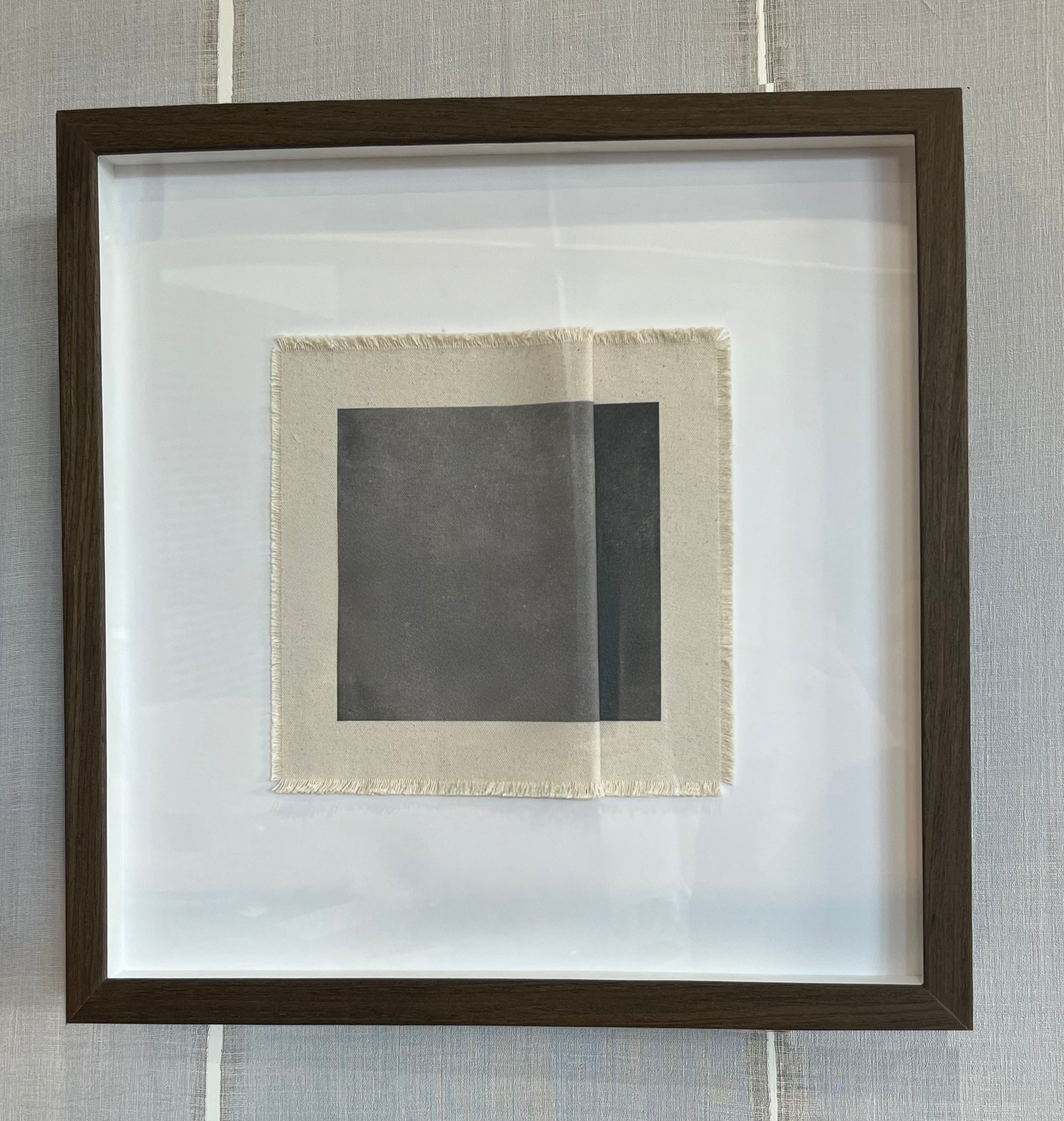 Composed of painted natural linen, carefully frayed at the edges, and folded by hand in angular and soft curves, these interesting works adds geometric form and rich textures to any space. These pieces are best featured in an area where you can enjoy the visual elements from multiple angles.