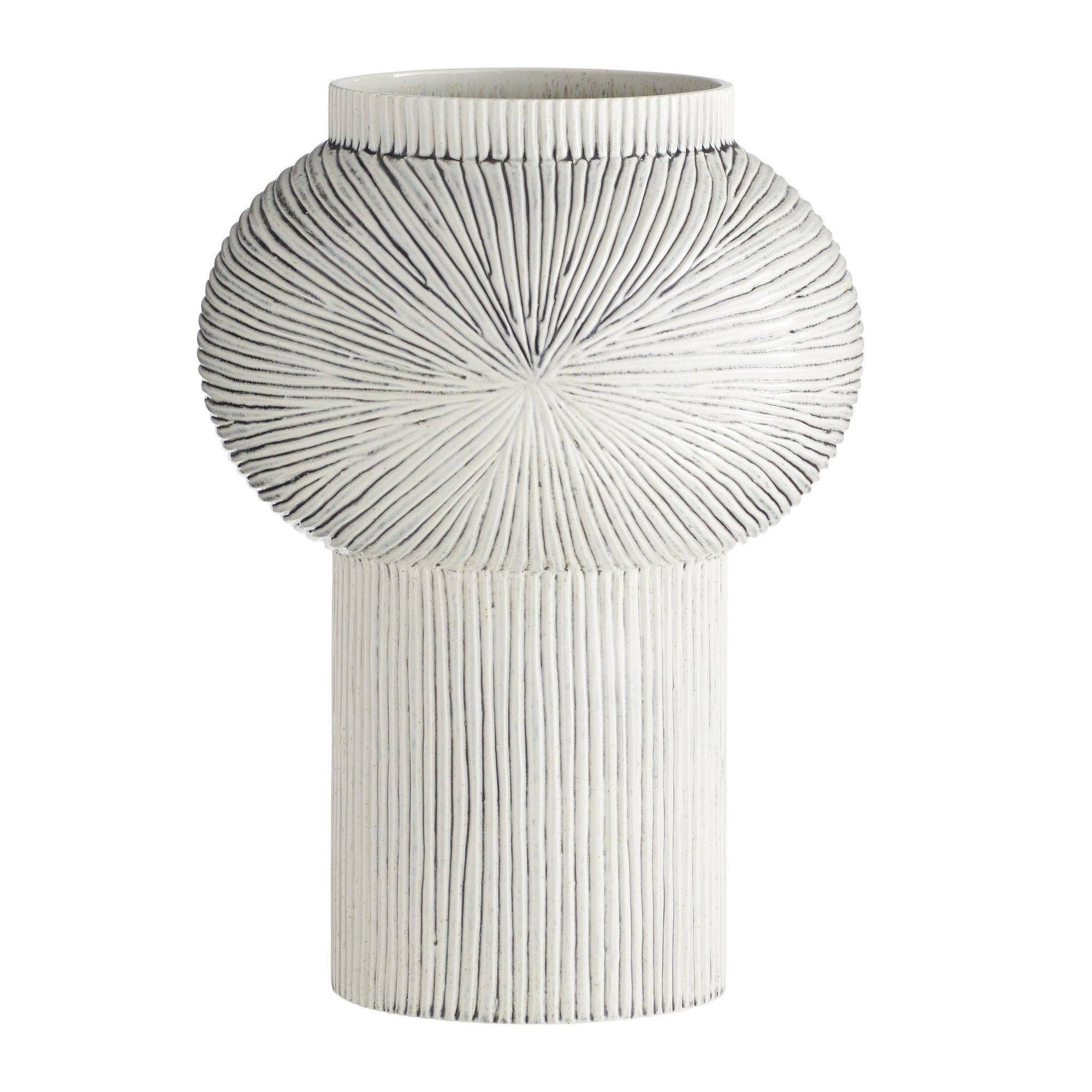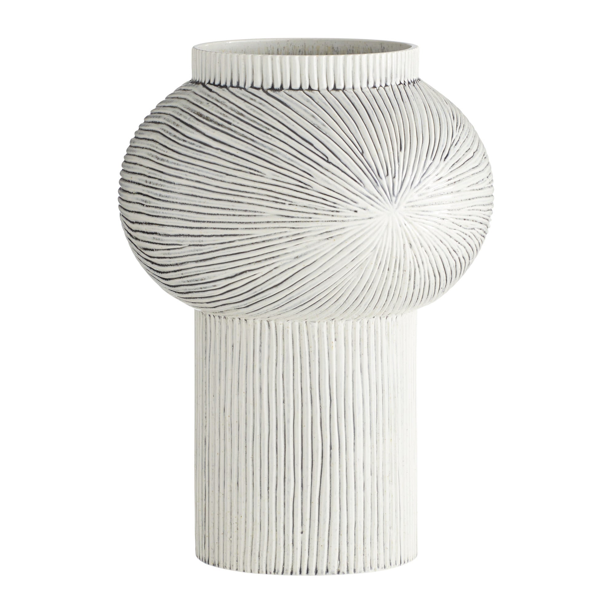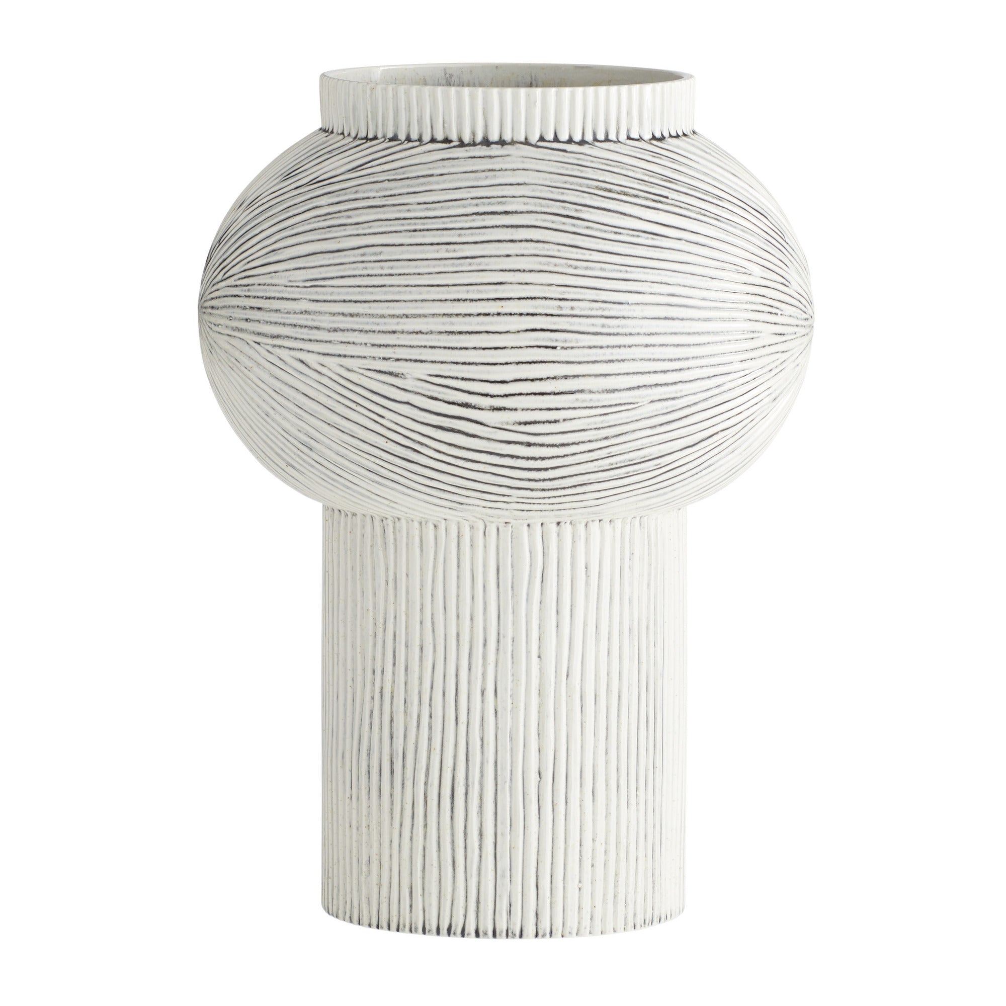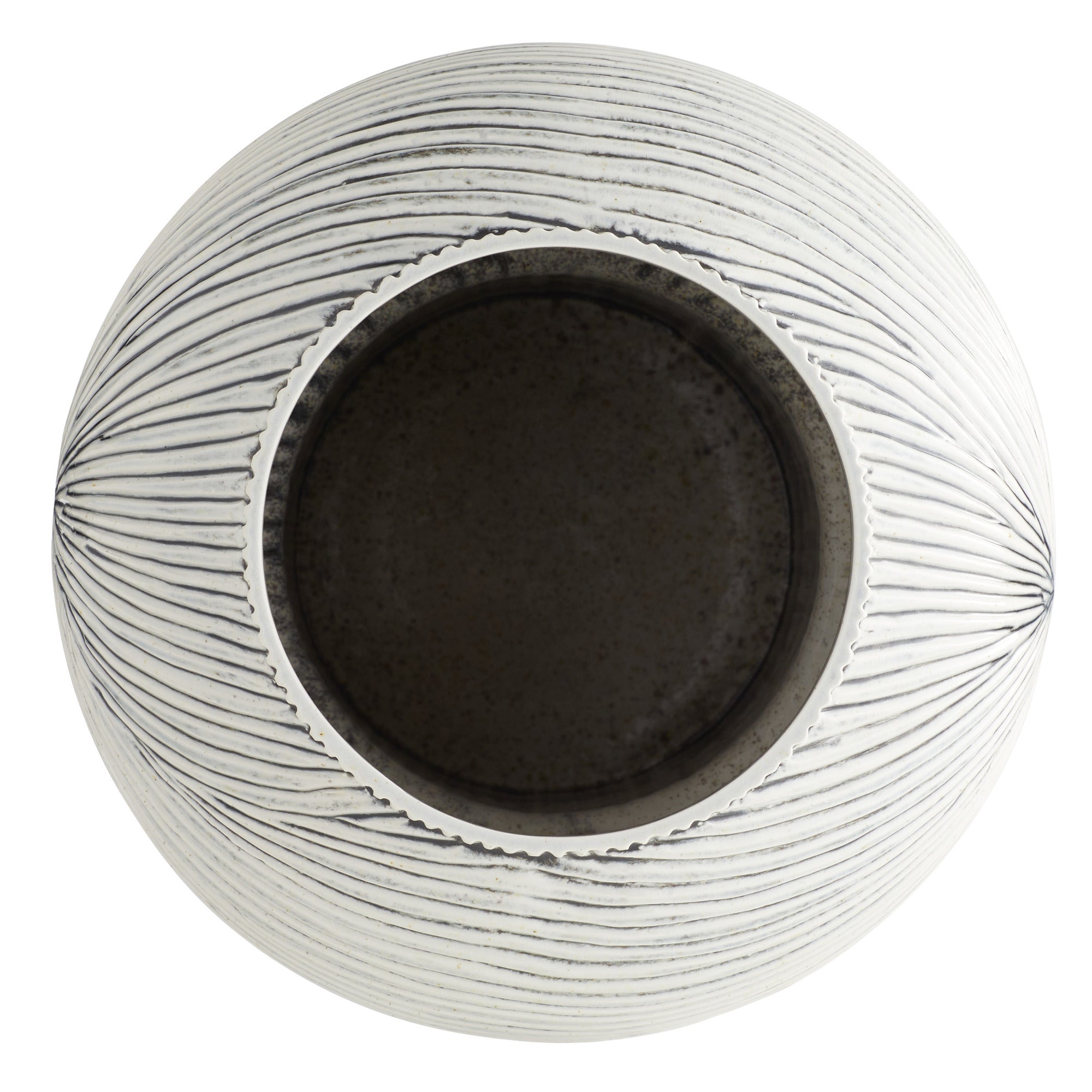 DescriptionIntricate lines and wave-like textures wrap around this porcelain vase, finished with an ice-reactive glaze. Embracing the lines of platonic geometry, it features a rounded top. Finish will vary.