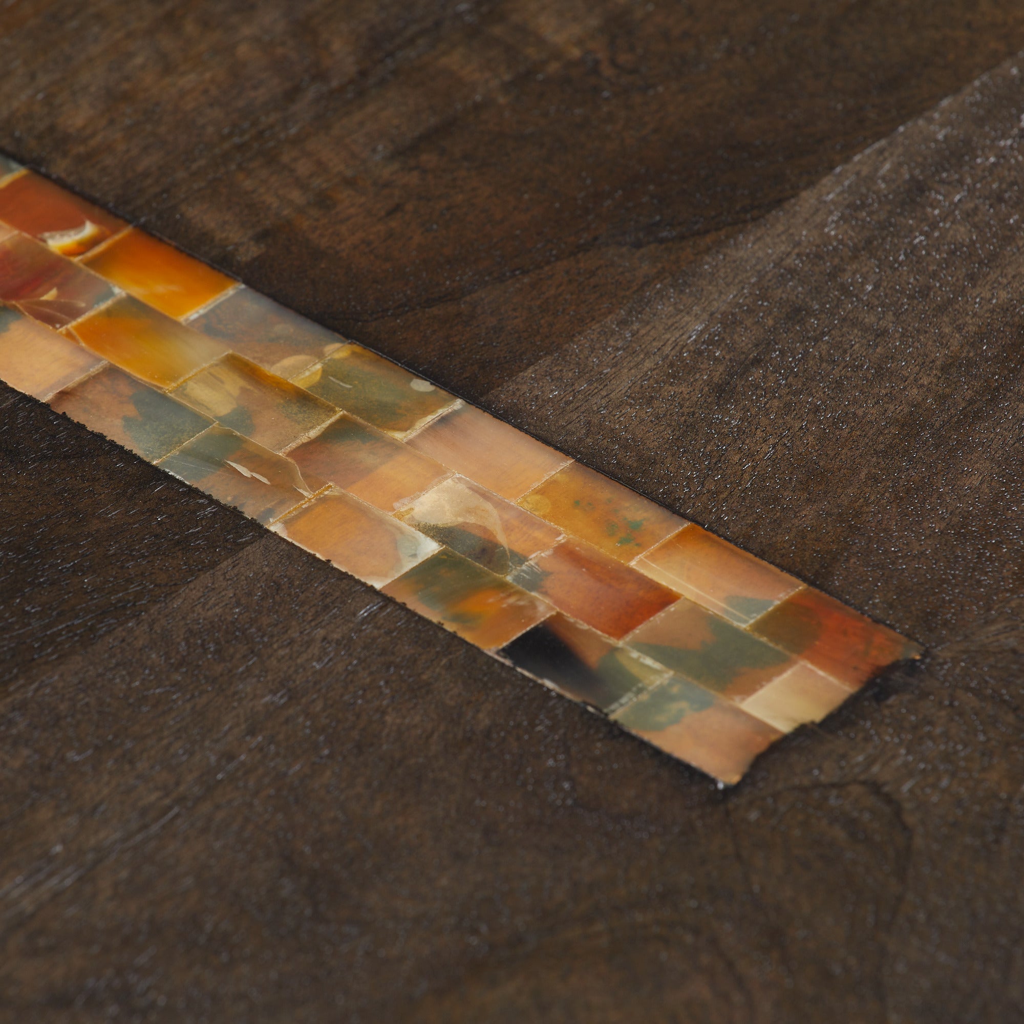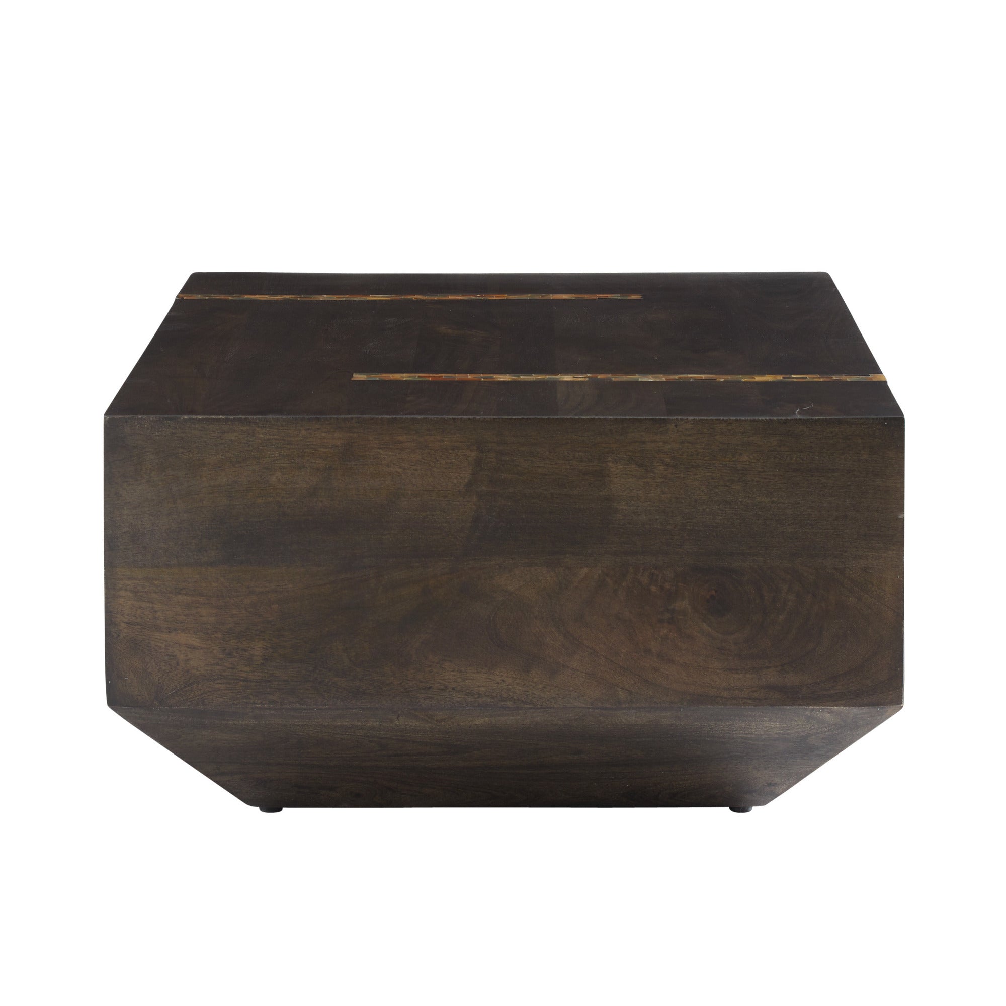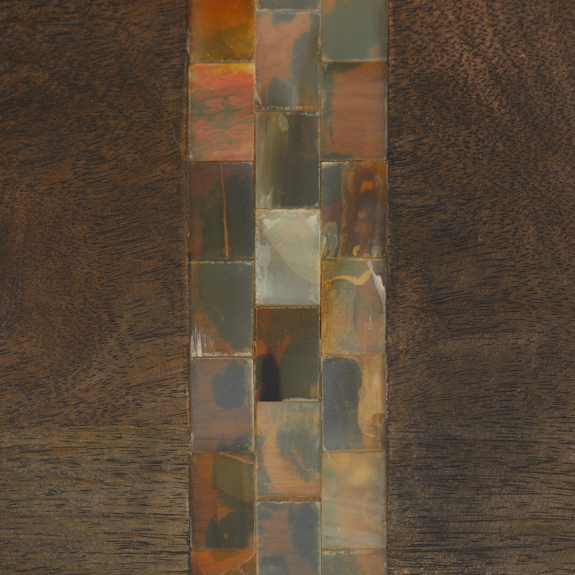 DescriptionOur monolithic form of umber mango wood is inset with opposing racing stripes of natural faux horn resin. Cascading in waterfalls down the sides, these impactful details give a cantilevered effect to the split veneer surface, adding to the natural beauty. Finish will vary.
