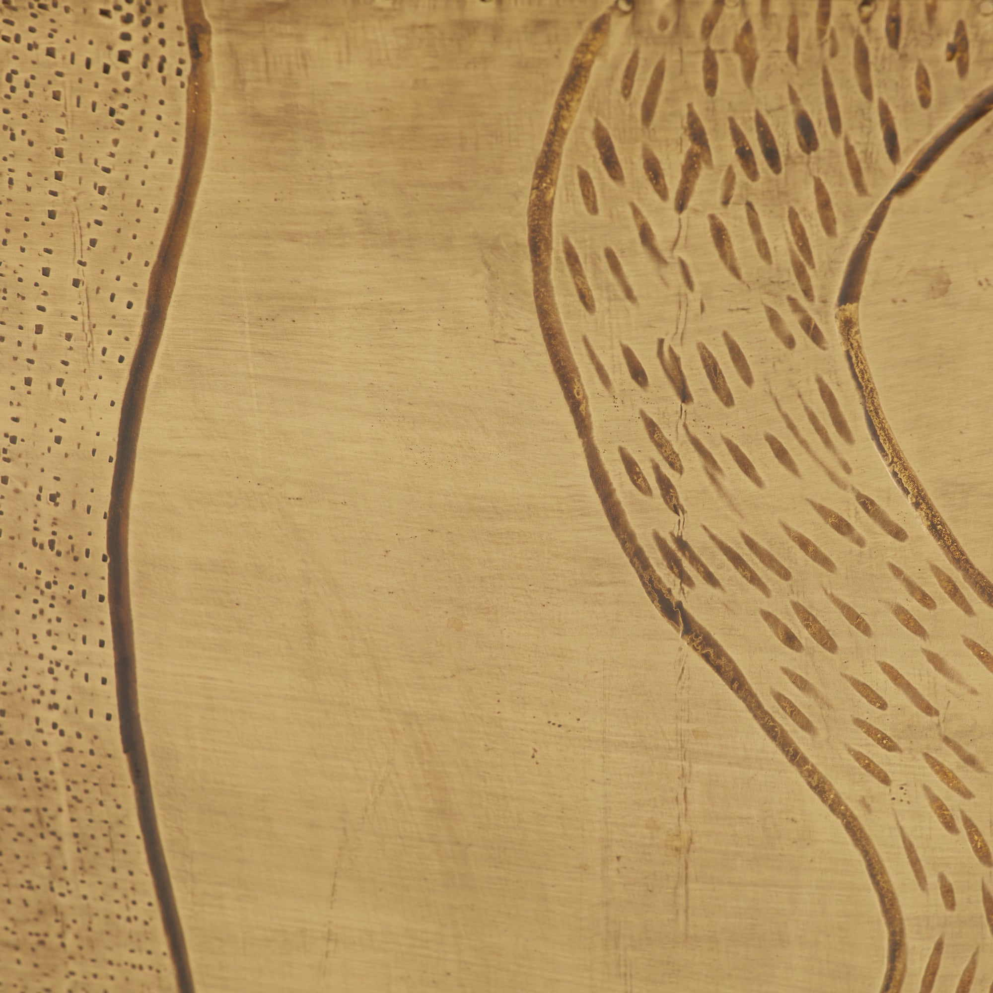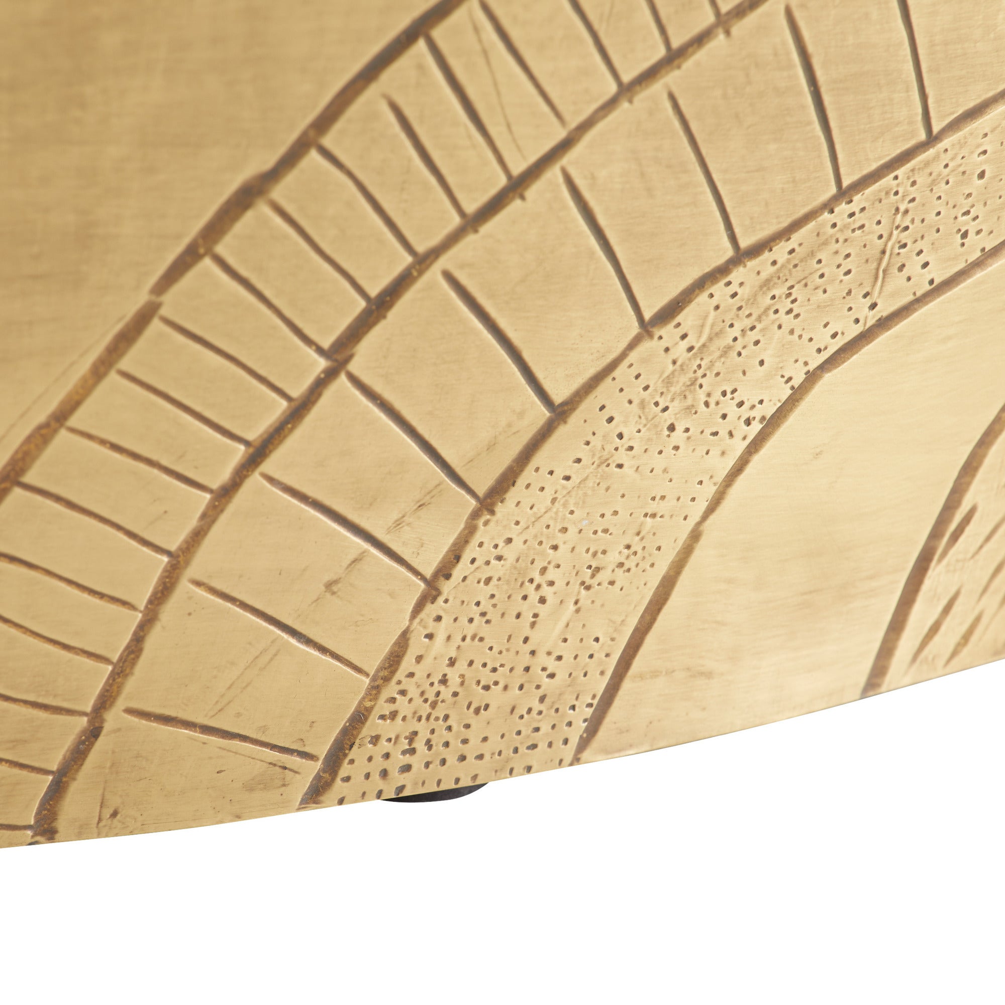DescriptionThe contour lines and relief features of topographic maps influenced the etched brass surface of Glasgow. Cladded in a classic kidney shape of antique brass, this textural style is tapered for dynamic movement. Pair them to accompany a large sectional sofa. Clad will vary.