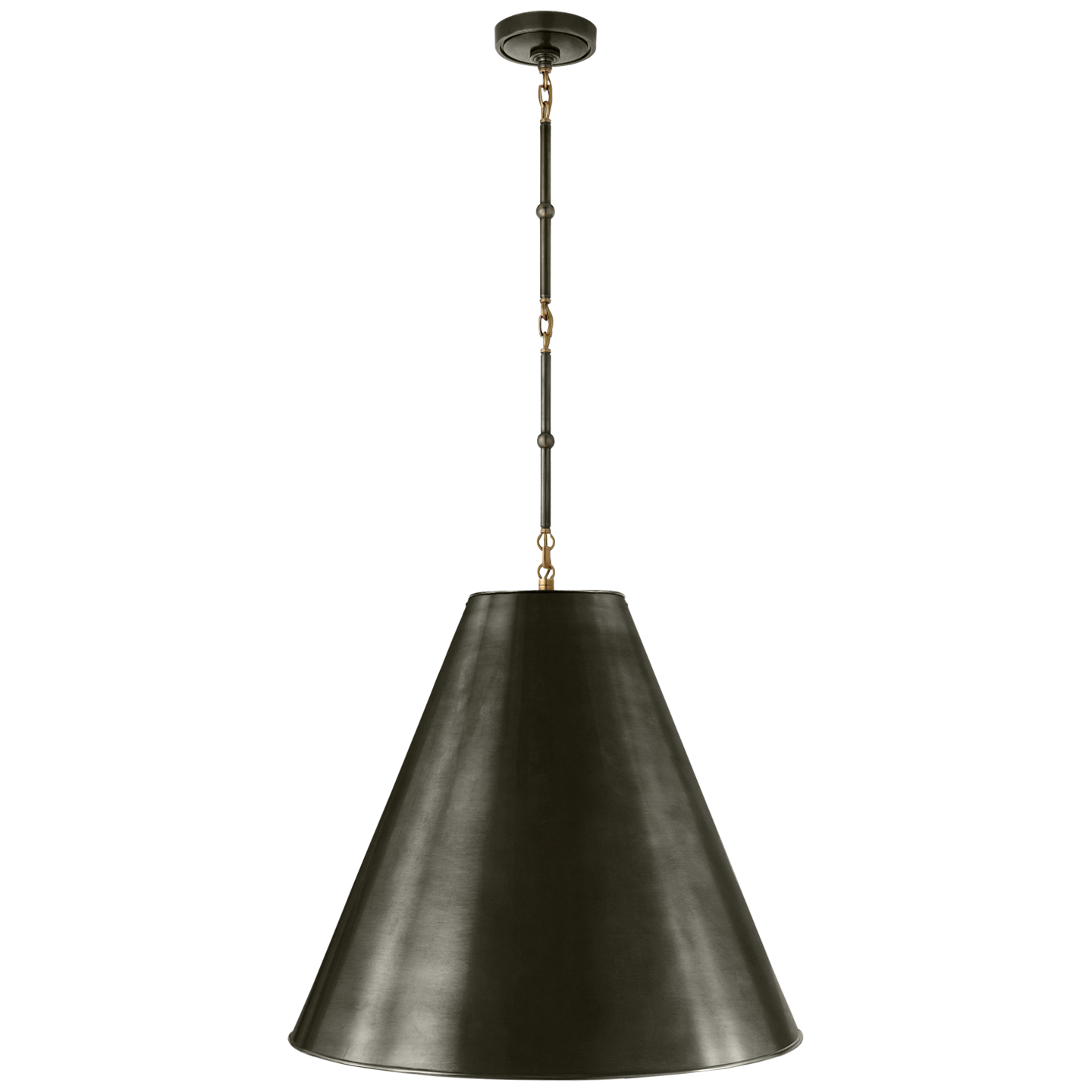 Showcasing the simplicity of conical shades with refined details, the Goodman displays classic elegance. Exploring pared-down silhouettes through metal and paper, Thomas O'Brien focuses on elegant accents like graceful long link chains and the pivots on articulating arms. The designs will lend a modern touch to the interiors.
