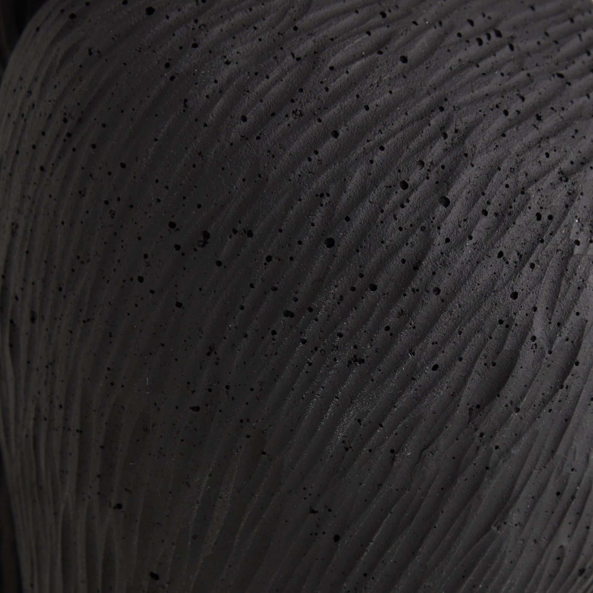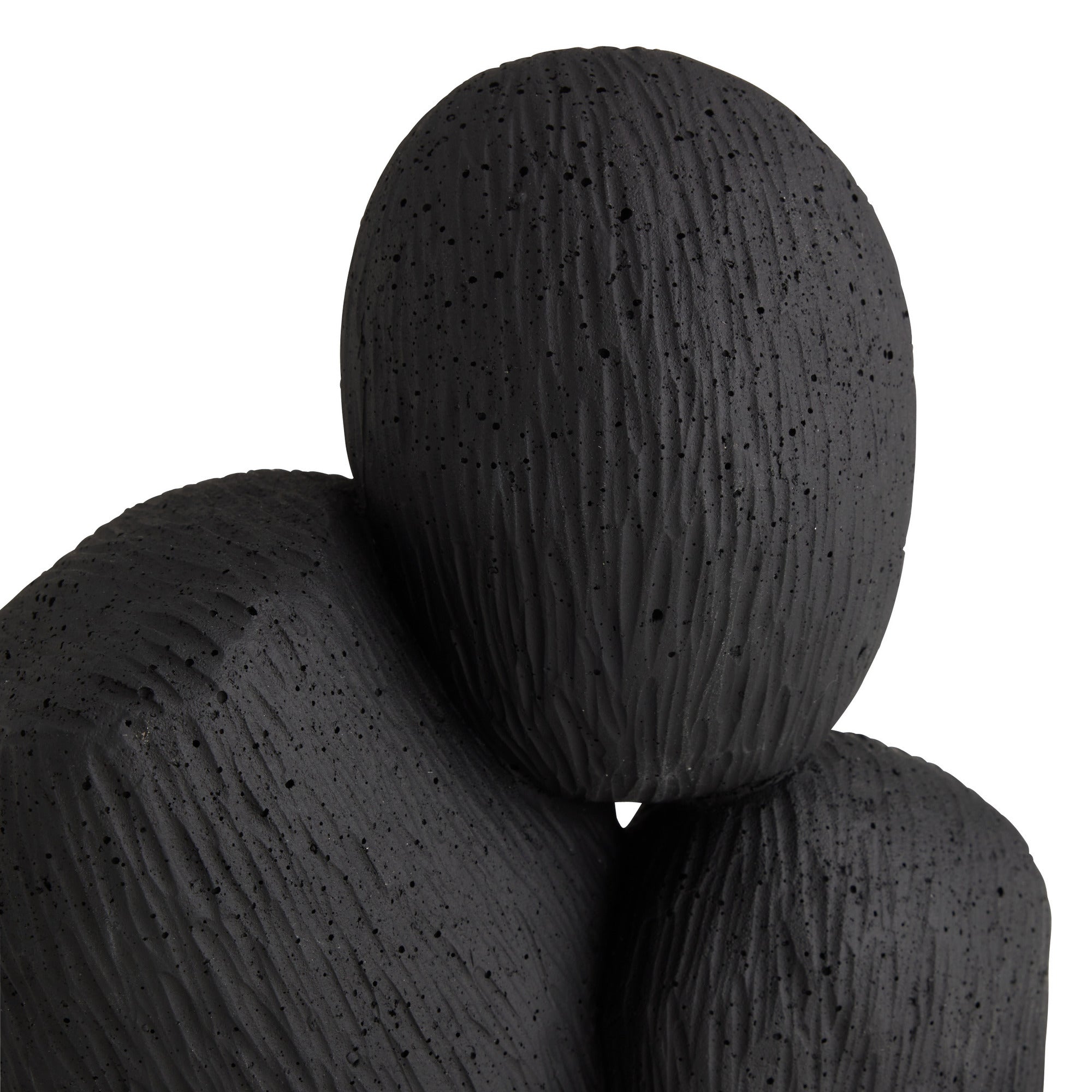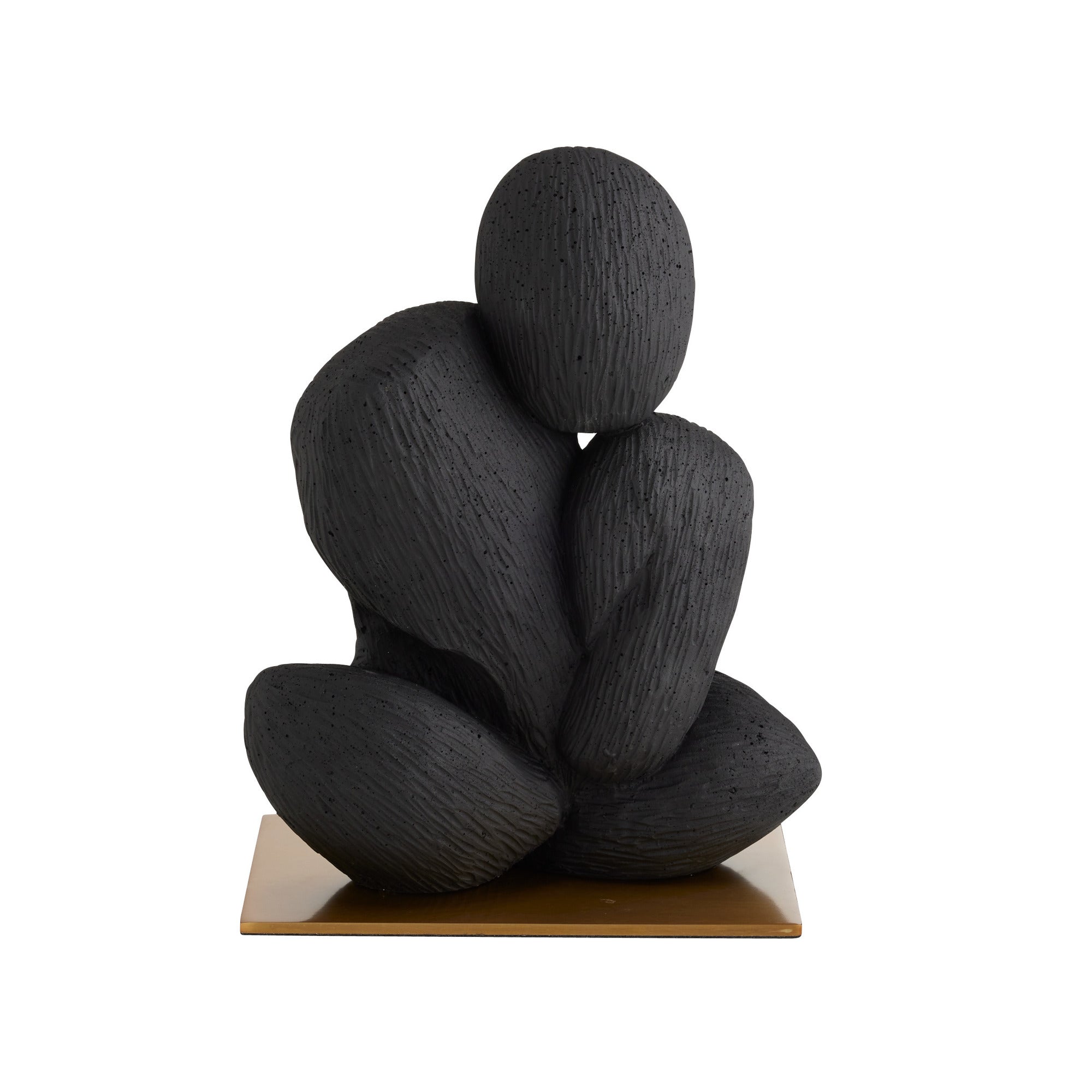 DescriptionFree-form shapes of charcoal ricestone composite form a striking totem that is both meditative and textural. Different when viewed from every angle, it is secured on a base of steel-plated in antique brass.
