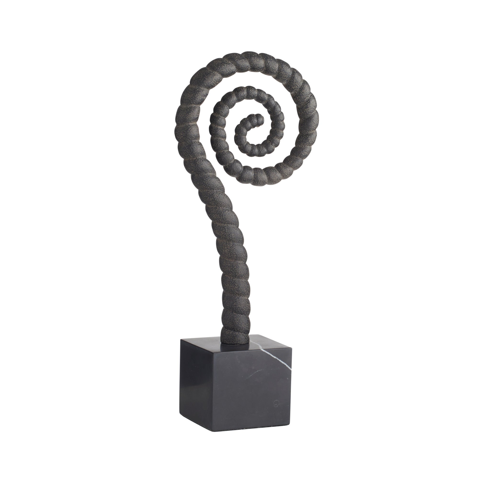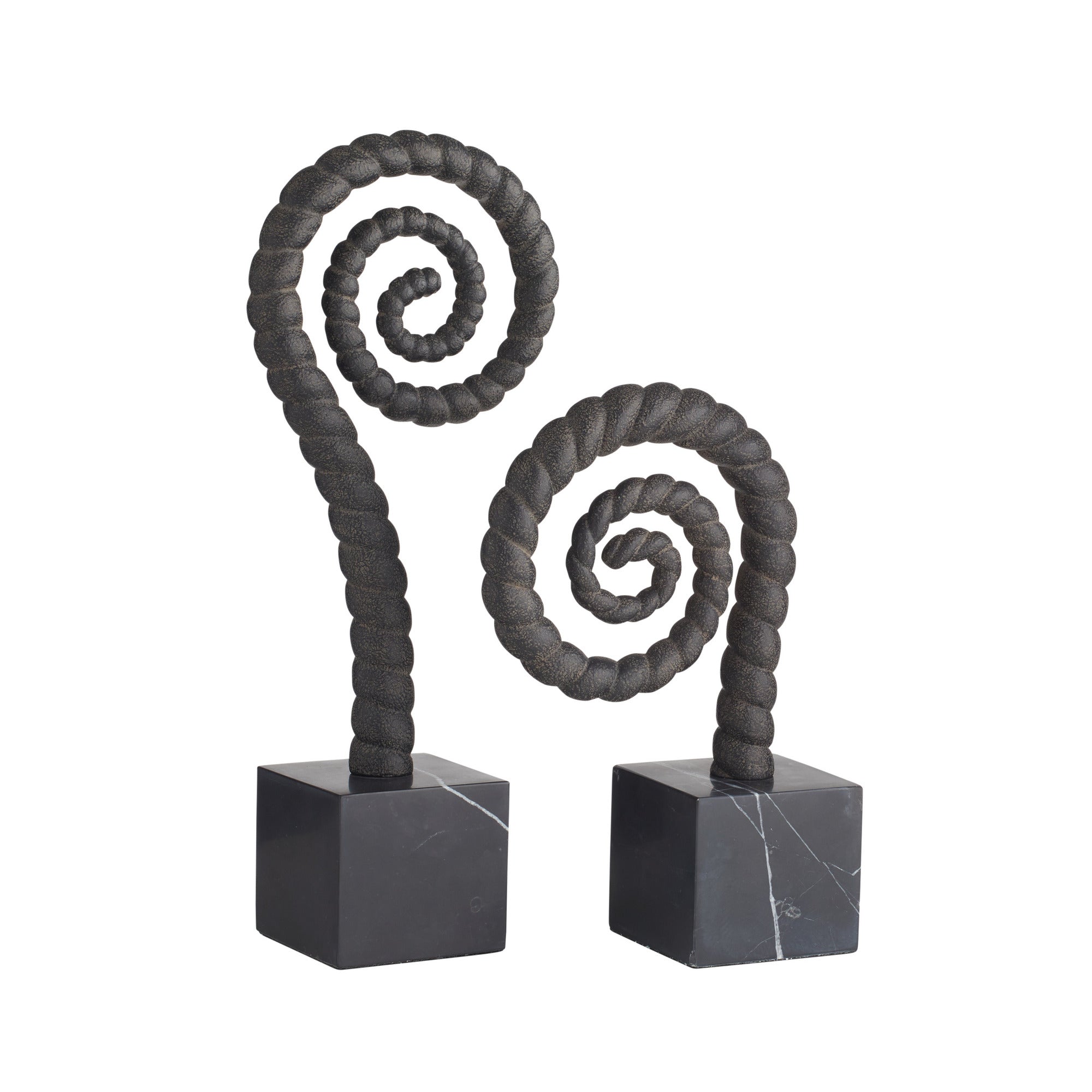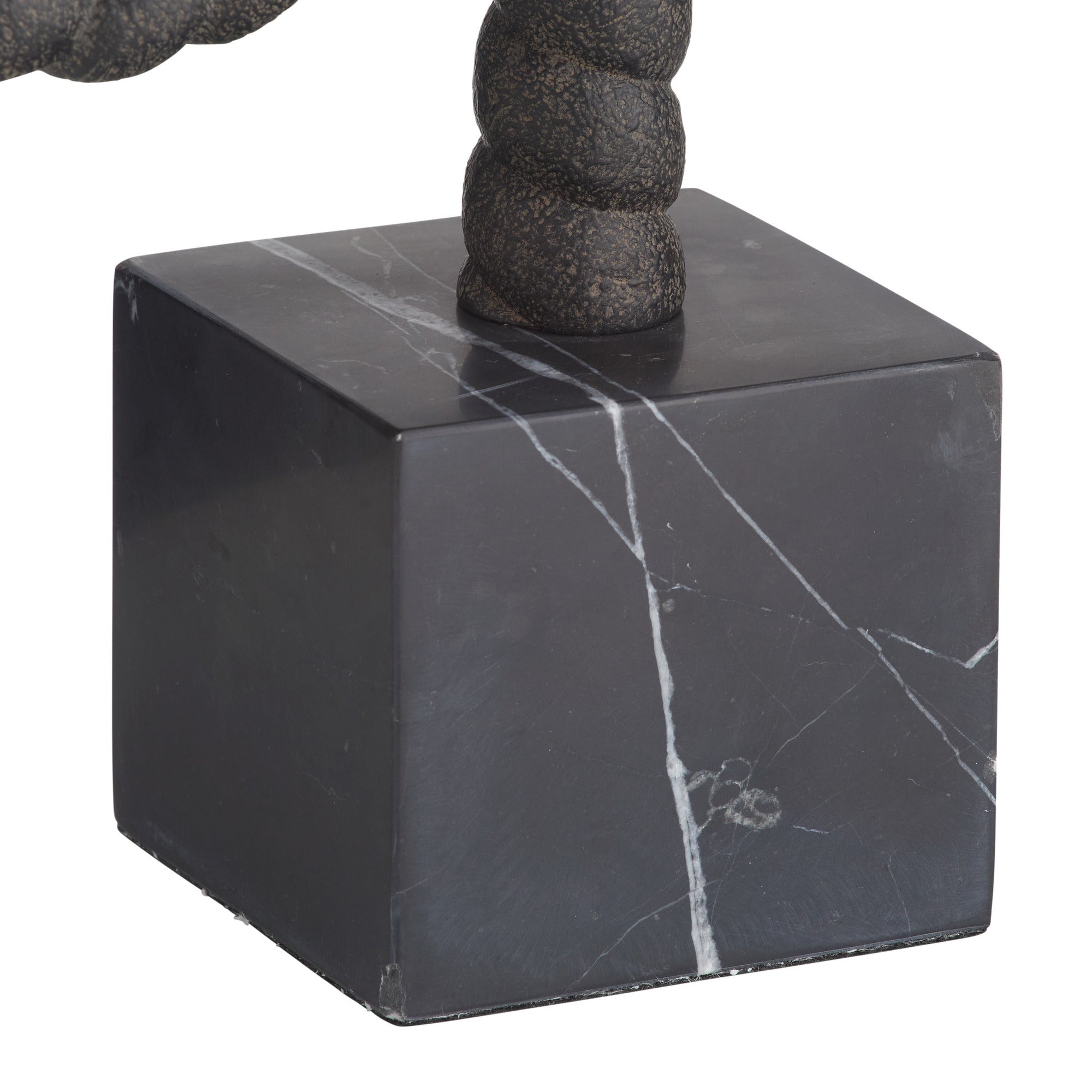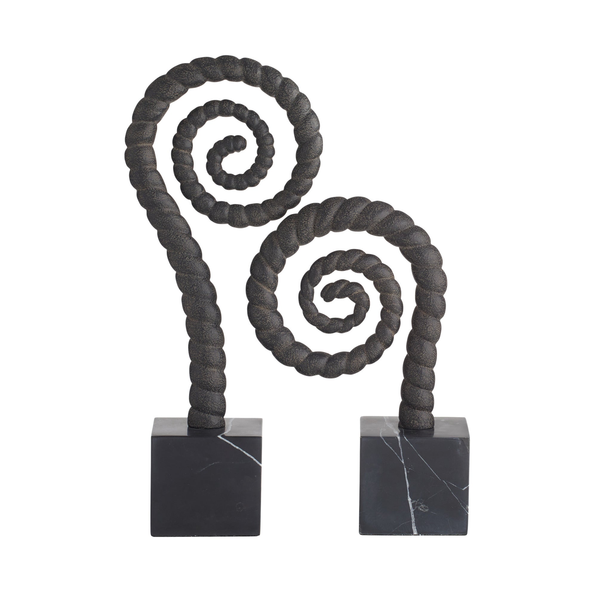 DescriptionOur coal resin sculptures mimic the curved silhouette of a ram's horn. Black marble bases streaked with white veins makes this sculpture sturdy and stylish. Can be used as a pair of bookends, their textural finish lends implied movement to your shelfscape. Finish will vary.