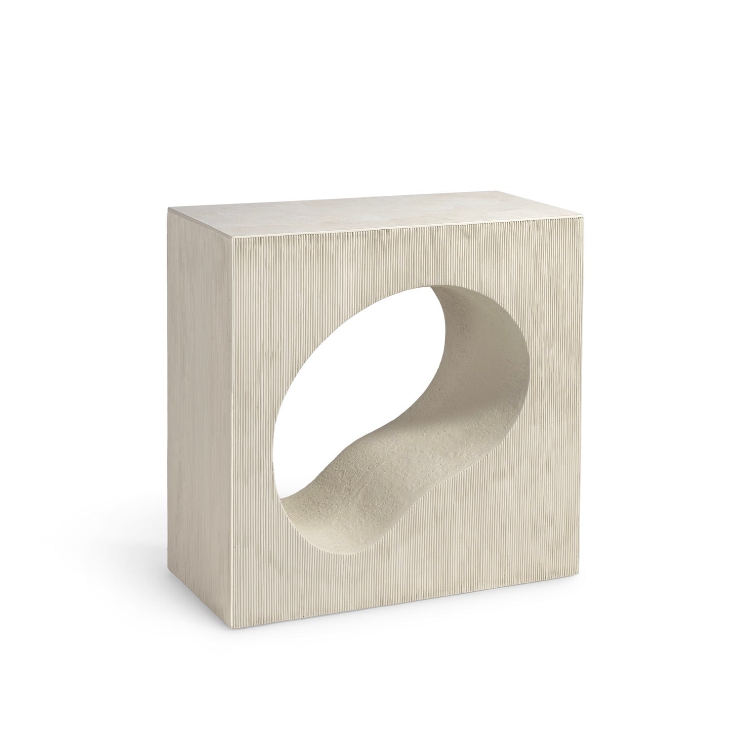 DescriptionWhite agate top inlaid over a white textured cast resin base with textured gesso inside details. Console is fully suitable for outdoor use and coordinates with left version (740505) of this design. Console is finished on both sides and can be flipped in either direction.