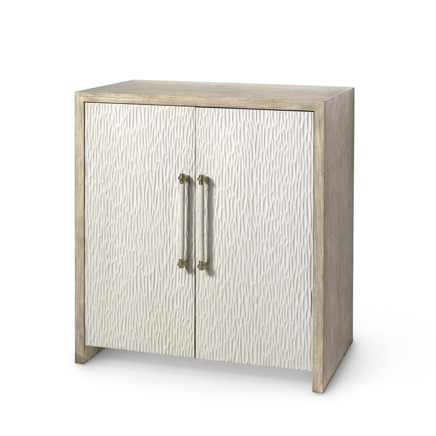 DescriptionHardwood frame in a grey-wash finish accented with two hand-carved door fronts in a whitewash finish. Doors with pewter-finished metal handles wrapped with white leather and slow-close hinges. Inside compartment features six rows for glassware to be hung, two hidden drawers and holds twenty-four bottles of wine. Bar cabinet is shipped on a pallet and may require lift gate and/or forklift. White glove option is also available. Please inquire further with our customer service team.