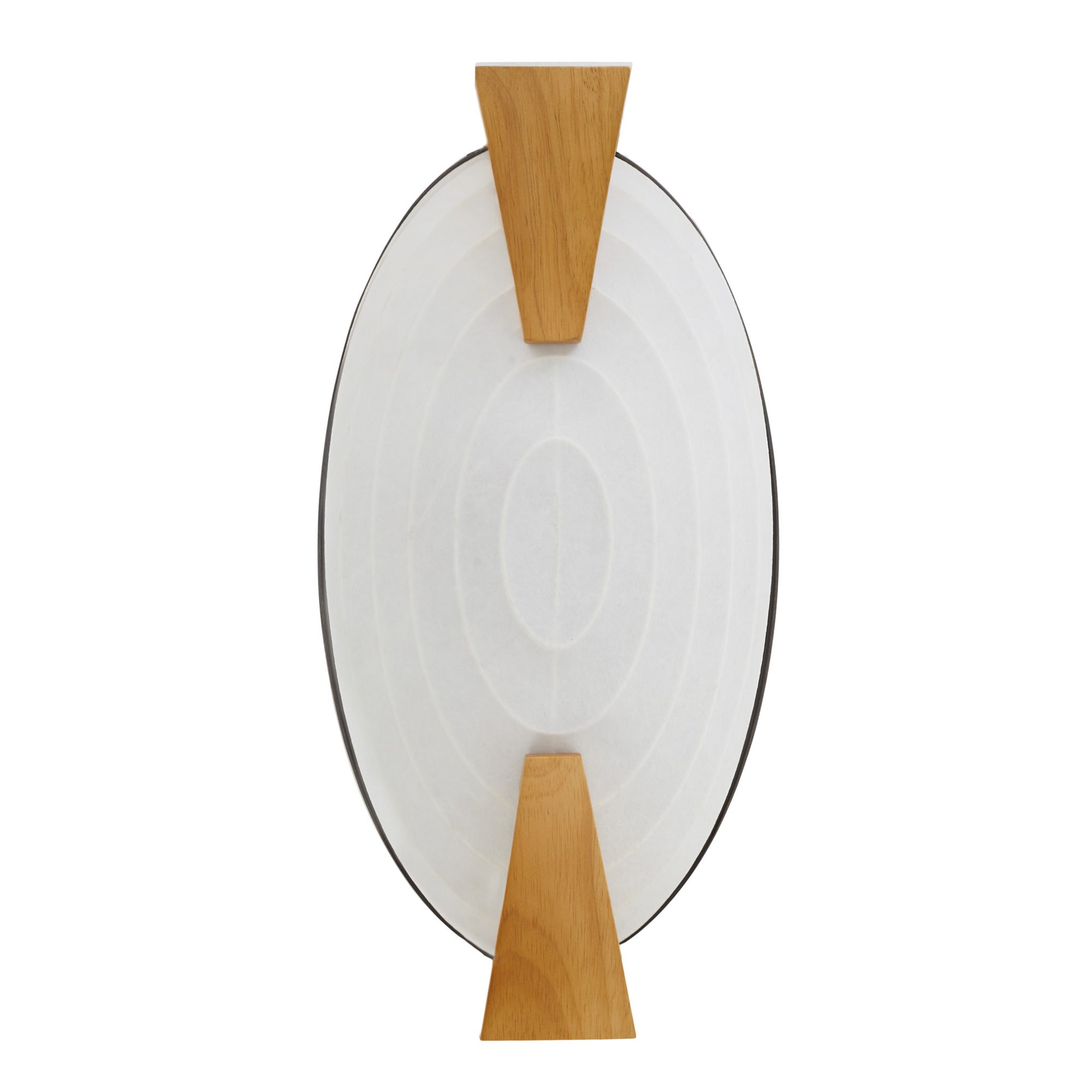 DescriptionThe stepped form of modern architecture informs this stylish flush mount. An extroverted piece molded from our new ivory faux vellum is bracketed by accents of oyster-hued wood. Suspended from an English bronze-plated steel canopy. Finish will vary. Damp-rated, although limited covered outdoor areas may affect finish.