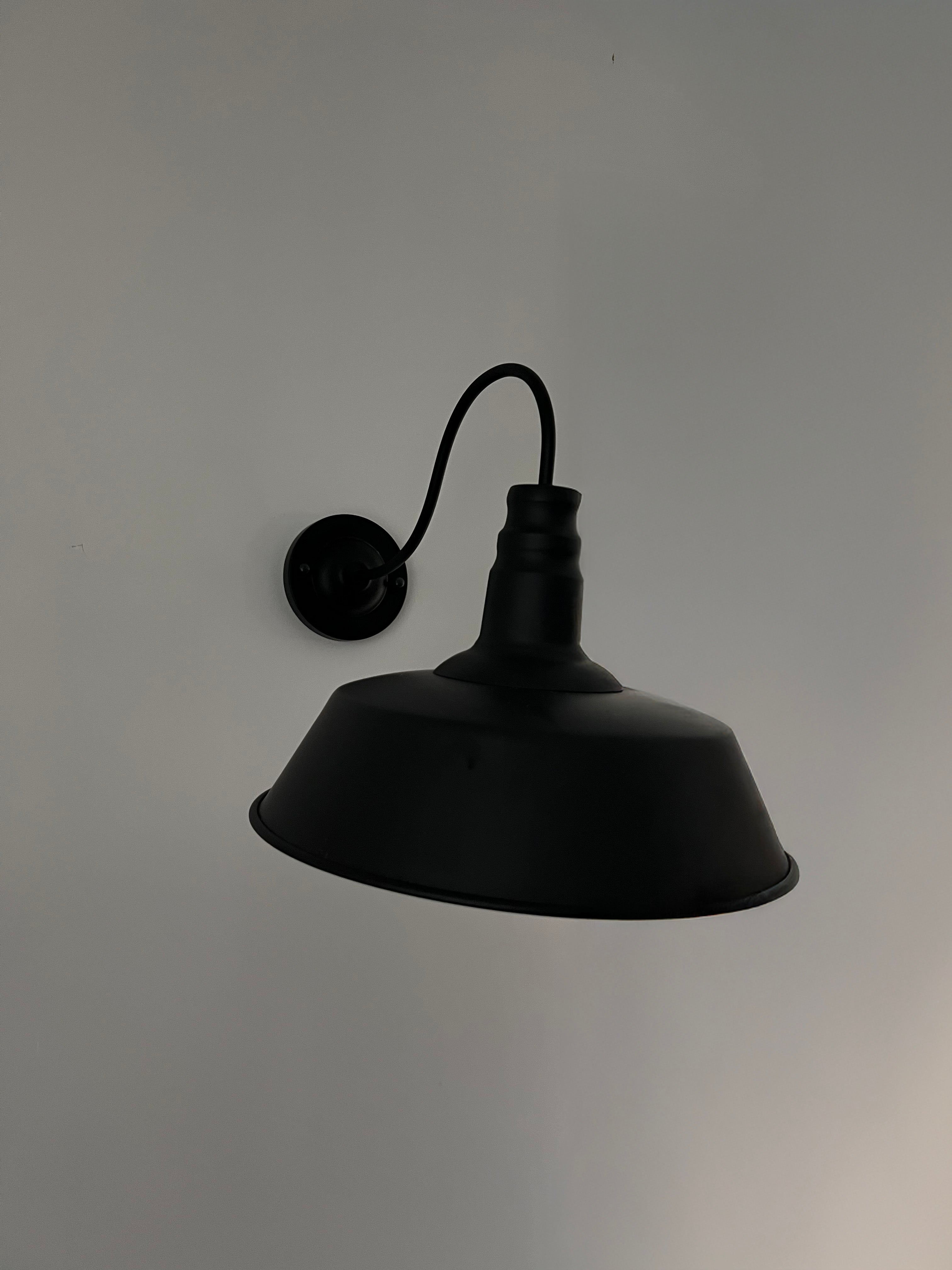 The Hampton Wall Light brings timeless elegance with its striking retro silhouette. Featuring a bold black exterior contrasted by crisp white interior lining.