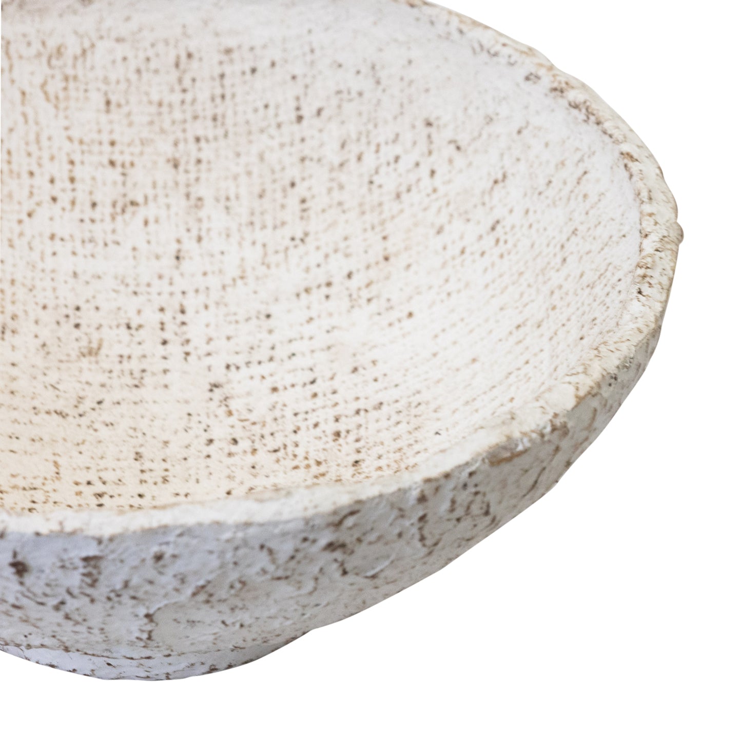 DescriptionRaw and unpolished, this hand sculpted paper mache bowl is abundant in texture and colour variations. An interesting use of material and technique, this piece is characterised by unique shapes and uneven edges shaped by its maker's hands.