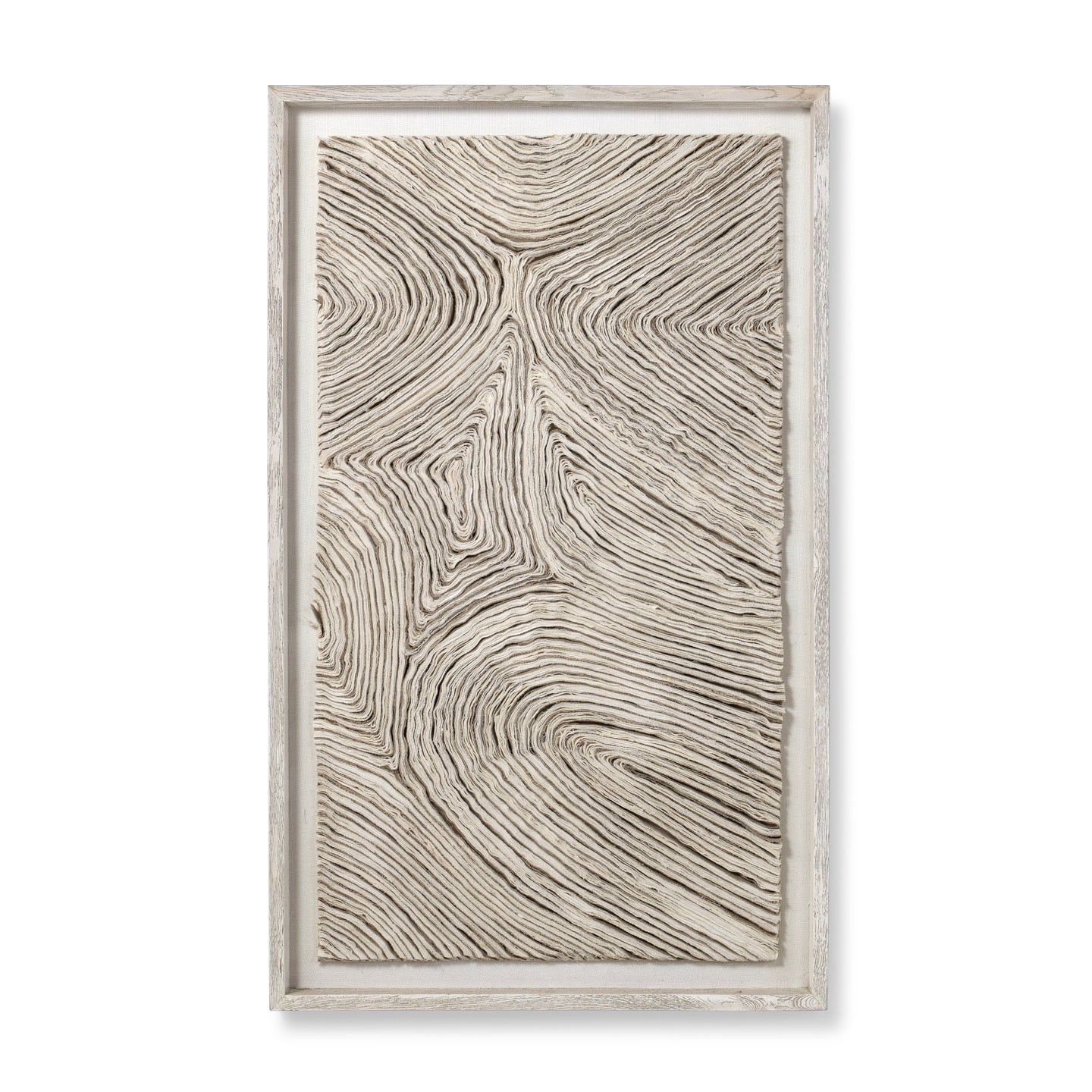 DescriptionLayers of fabric in natural and white tones are hand folded and sewn to create a uniquely textural design against a linen background and complemented by an oak wood frame in white cerused finish. Decor comes with metal cleats to hang both vertically and horizontally.