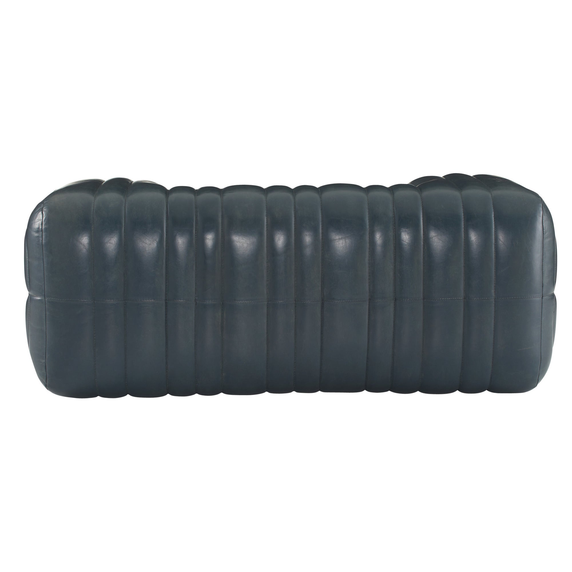 DescriptionBuilt with generous proportions and varied channeling, a gymnastics pommel horse influenced the rounded form of our distressed storm leather bench. Its wide sides and graphic opening give it a visual appeal from every angle, while the robust scale gives a grounded feeling to any seating area. Leather will vary.