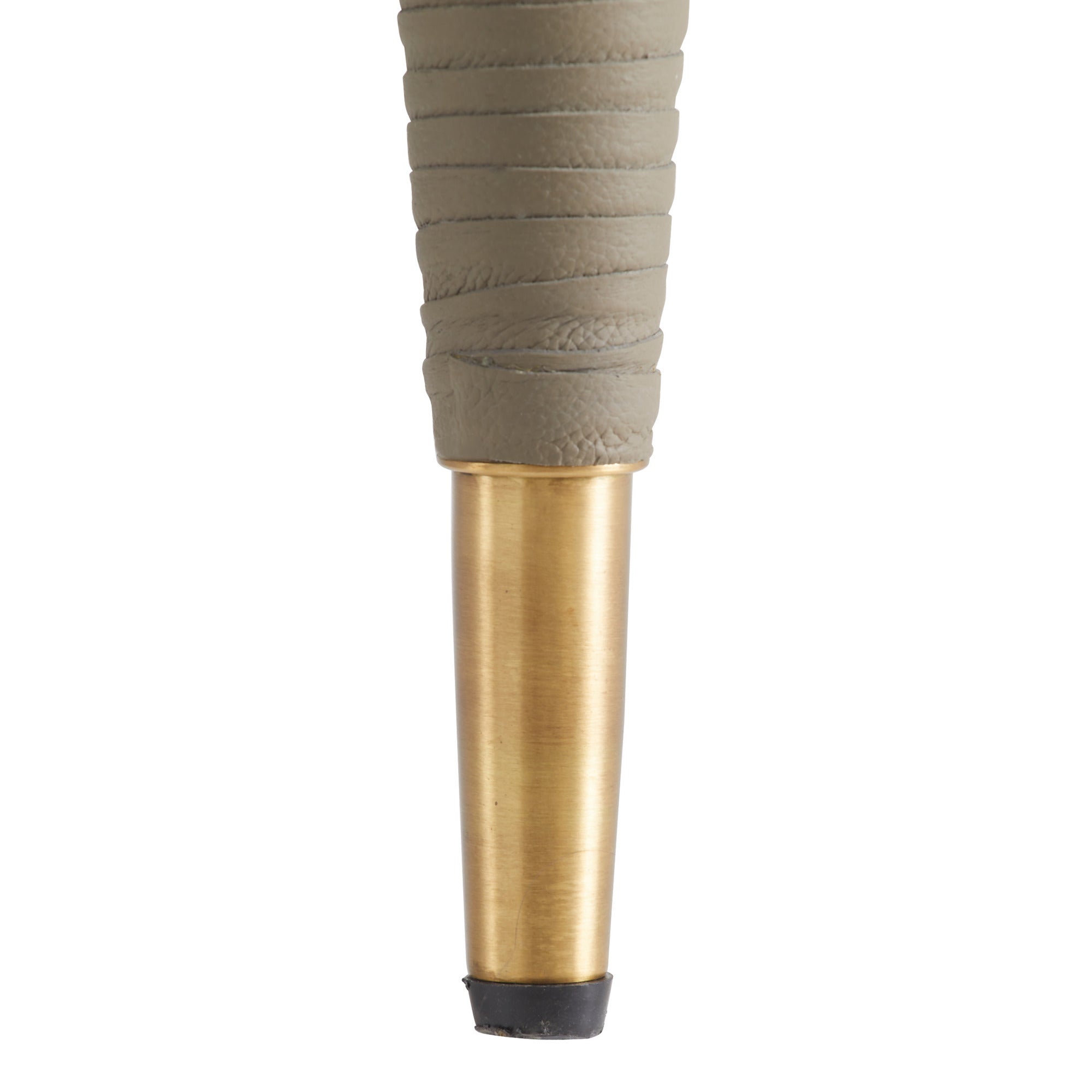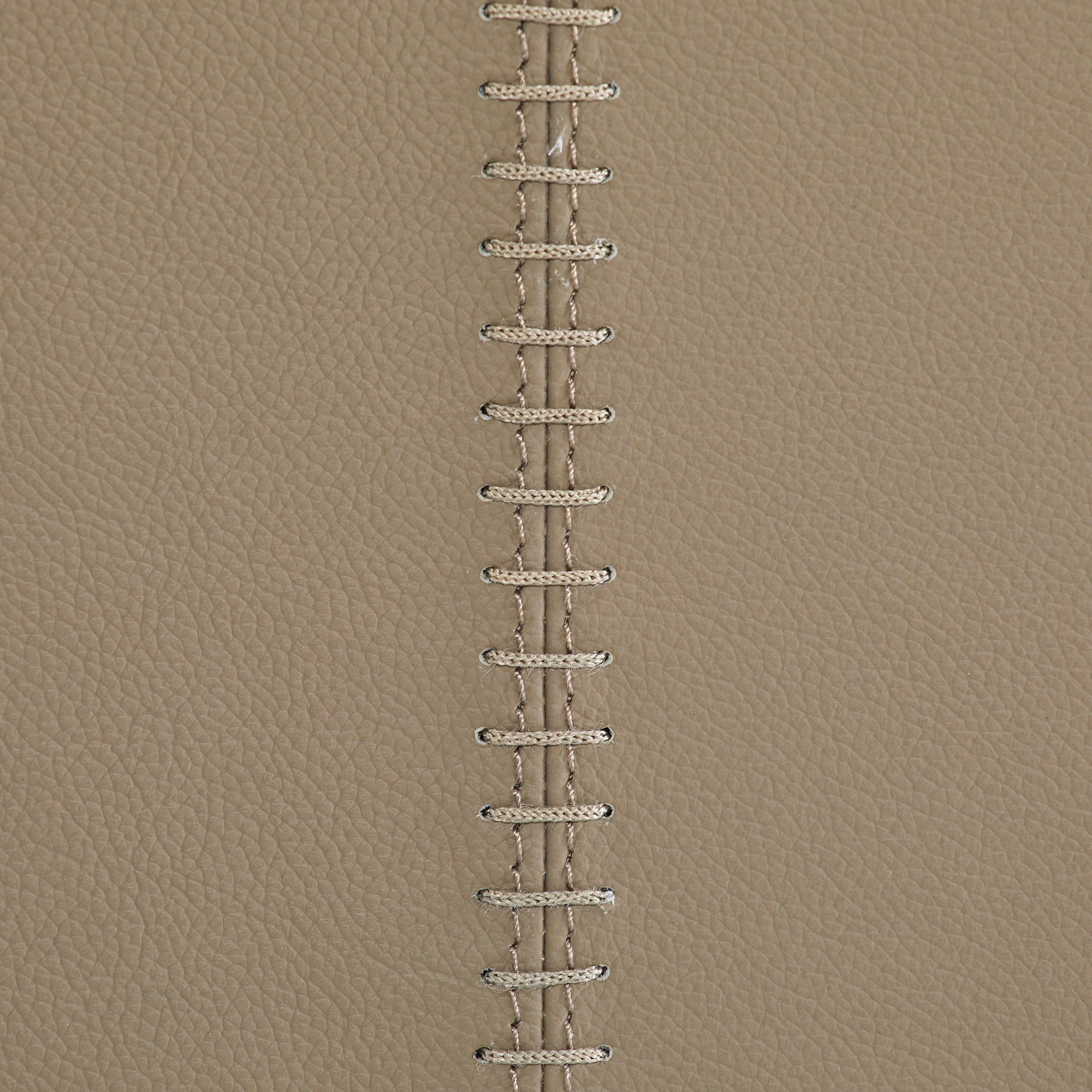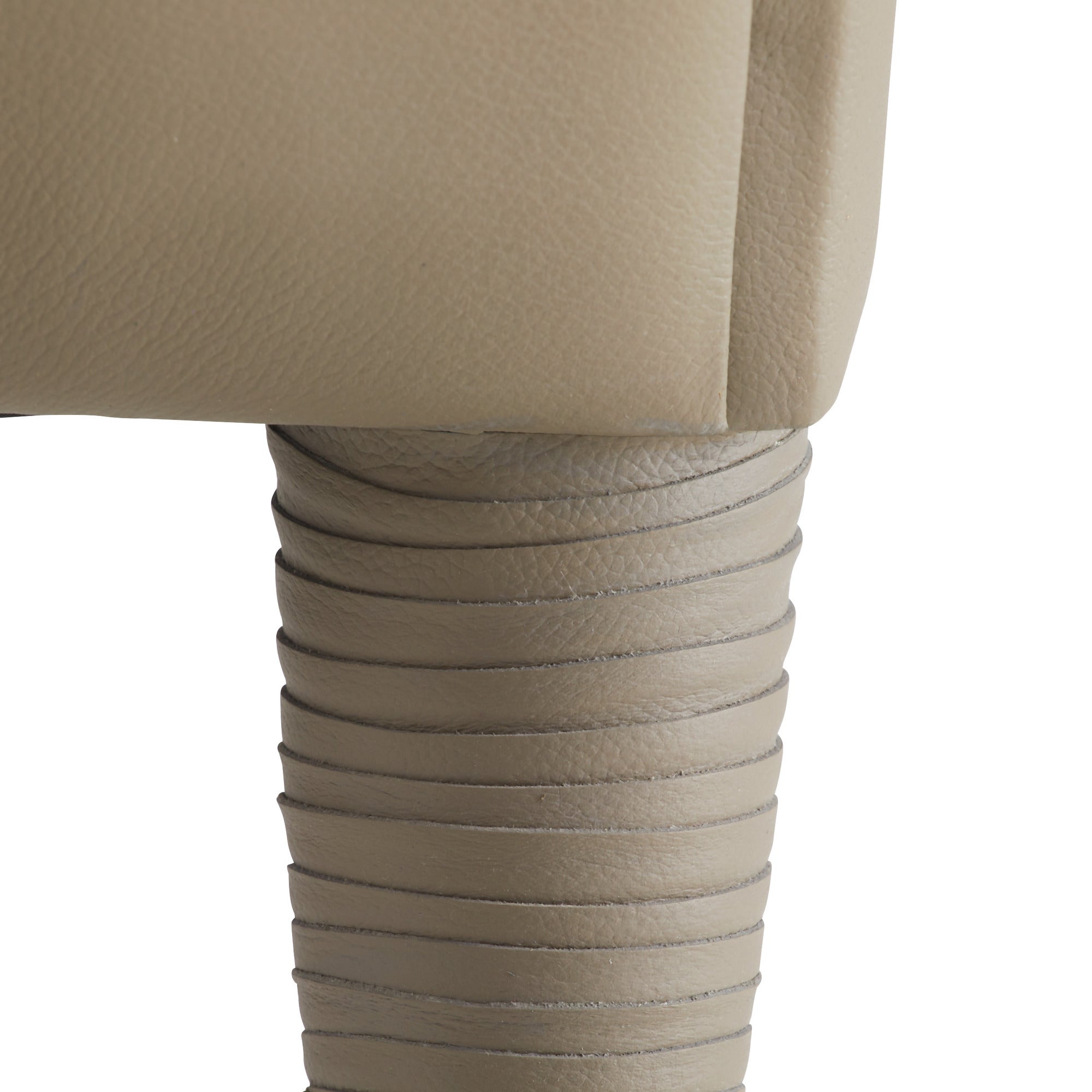 DescriptionRacer stripe paneling and topstitching define the wing-backed Hawthorne. Covered in rich dove leather, it is perfectly scaled for a host/hostess chair or desk. Each exaggerated tapered leg is wrapped in leather cord and tipped with a polished antique brass-plated ferrule. Stitching continues at the back so this piece can float within the room. Leather will vary.