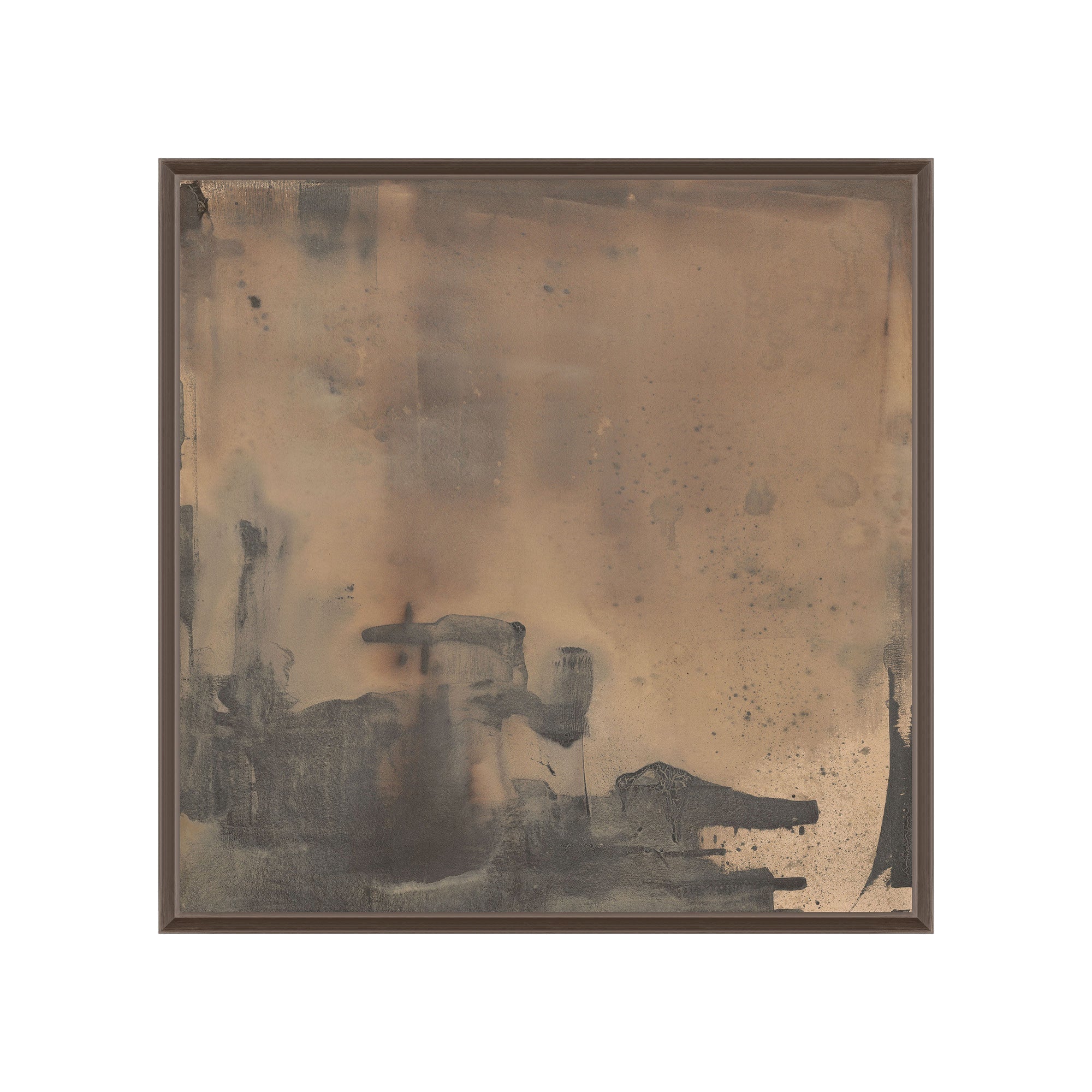 DescriptionHidden Truths by David Erickson draws the viewer into a misty interplay of shadow and light, where inky washes drift across a warm, weathered ground. Subtle gradients and splattered details suggest landscapes half-remembered or secrets just beyond reach. Presented on natural canvas, the piece carries an organic texture that enhances its quiet depth and atmospheric intrigue.