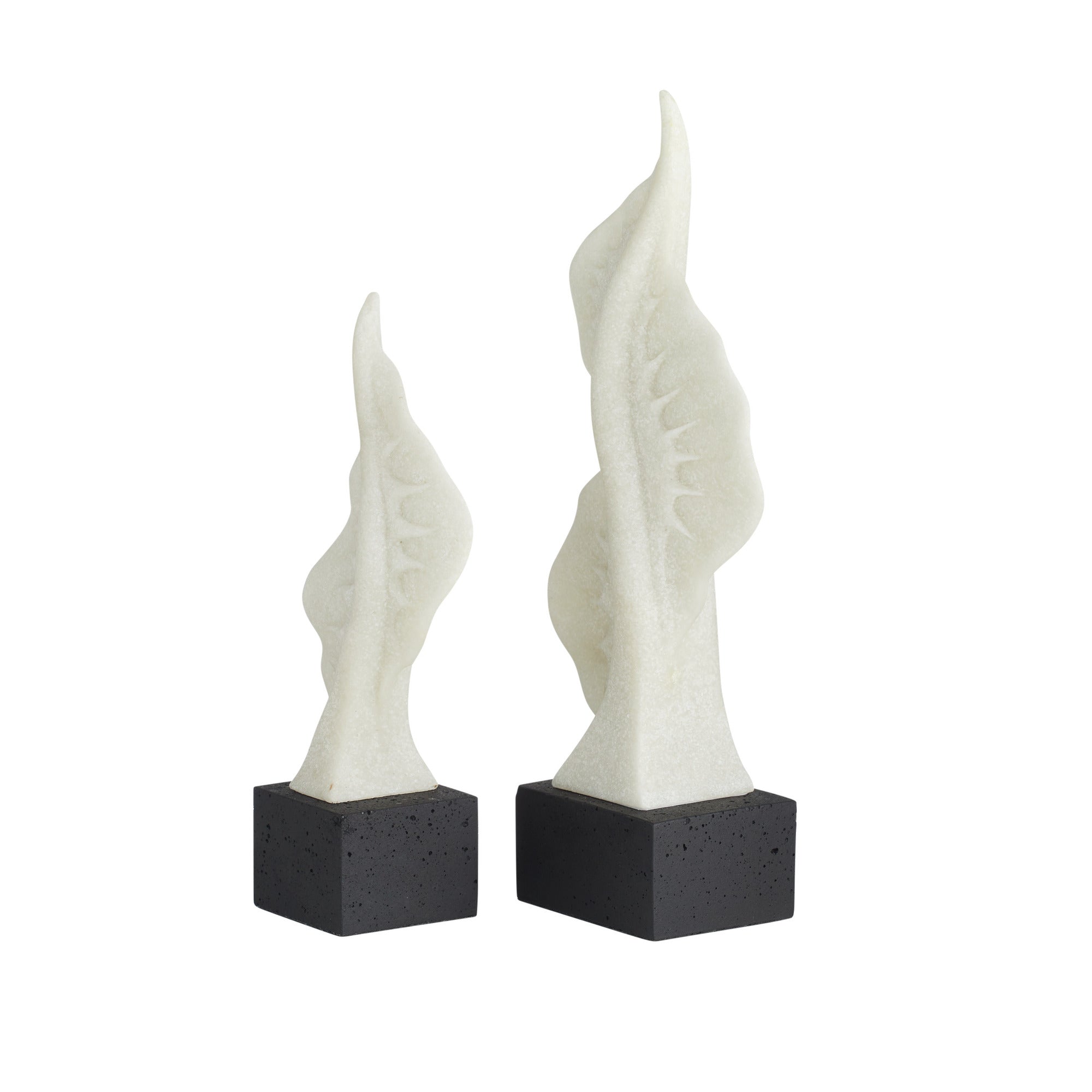 DescriptionThe sculptural silhouettes of marine life are reflected in these ivory ricestone composite sculptures. Reminiscent of seaweed or a Portuguese man-of-war fin, each twisted form stretches upward while secured to a charcoal ricestone composite base. Finish will vary.