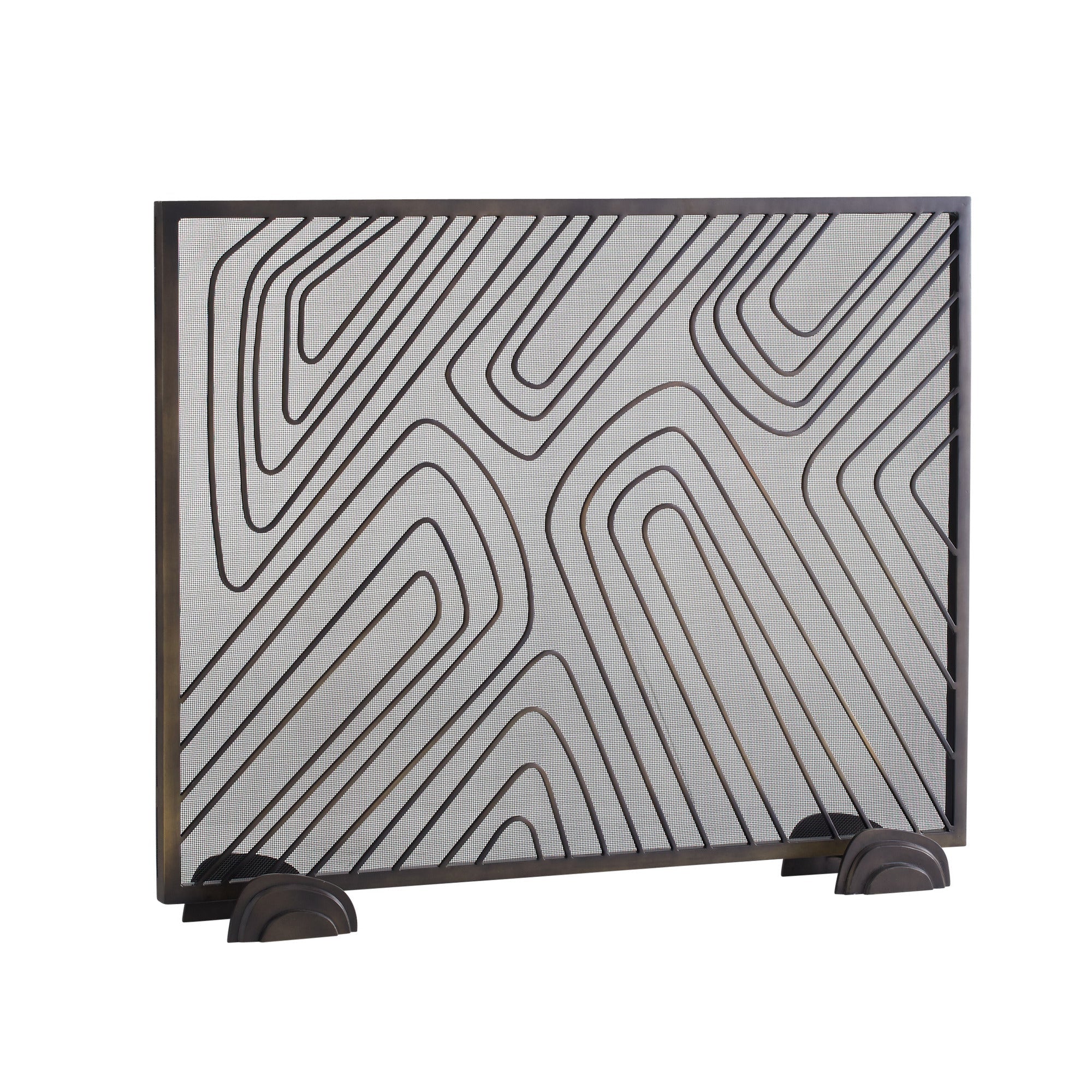 DescriptionThe bronze iron mesh of our sturdy fire screen is both functional and stylish, recalling traced patterns and linework. Inspired by the unique swirls of a fingerprint, the Holmes is plated in bronze and finished with pebble-shaped radial feet for secure placement.