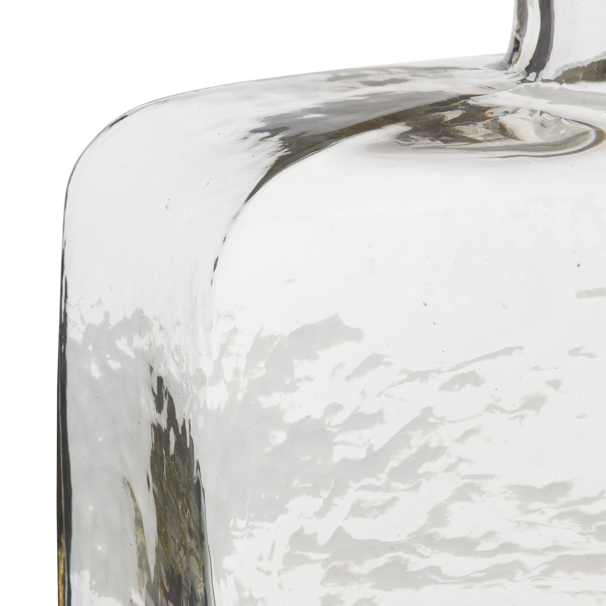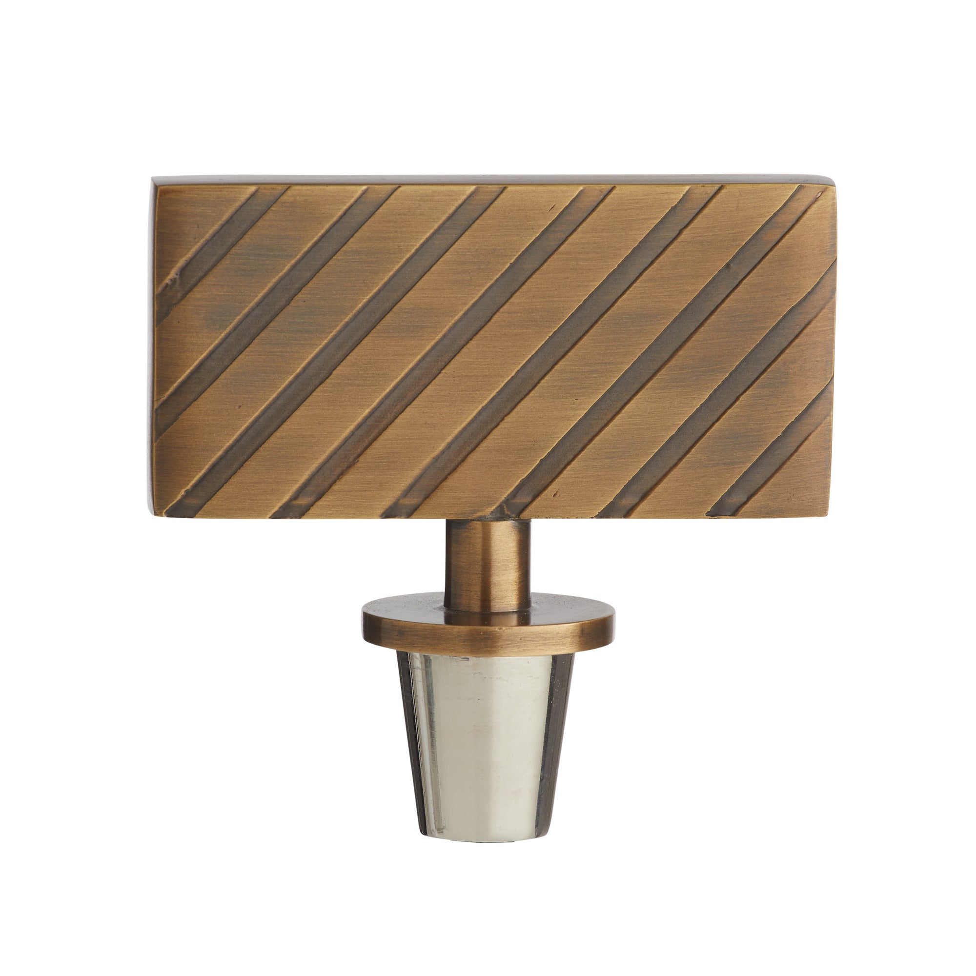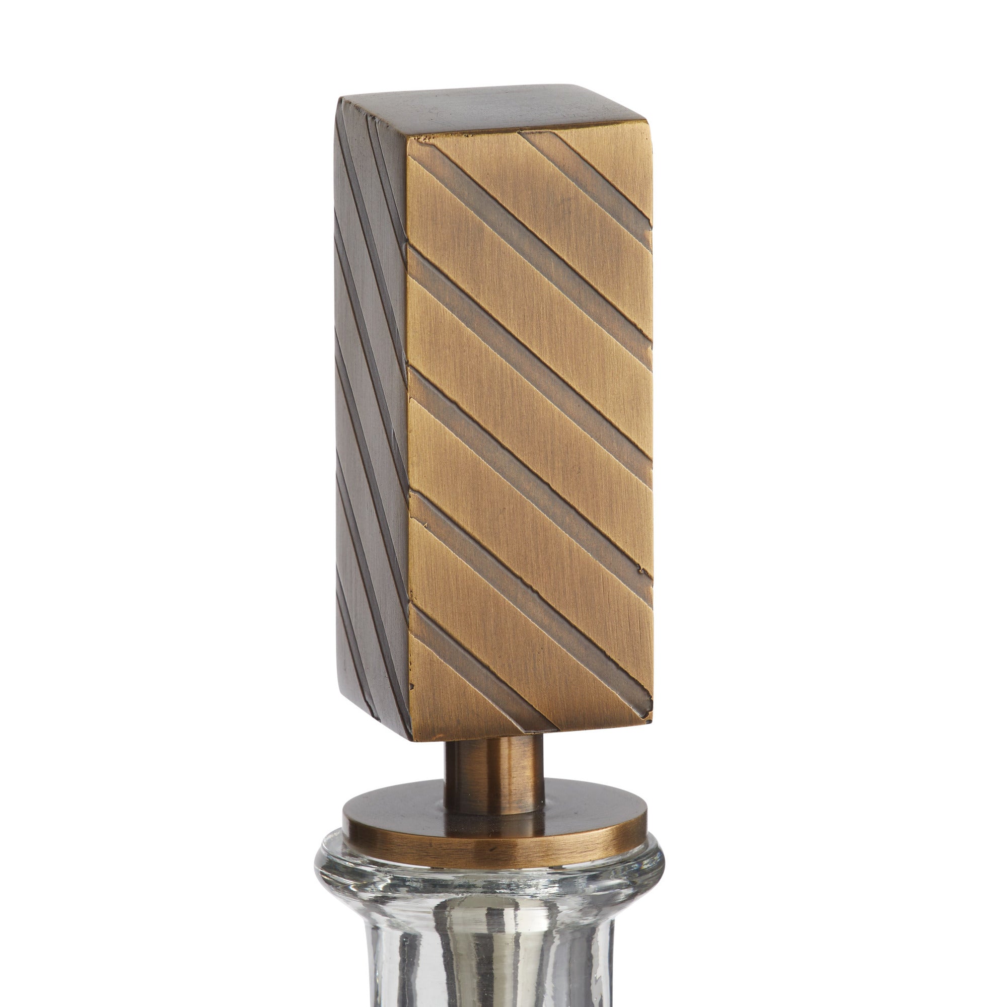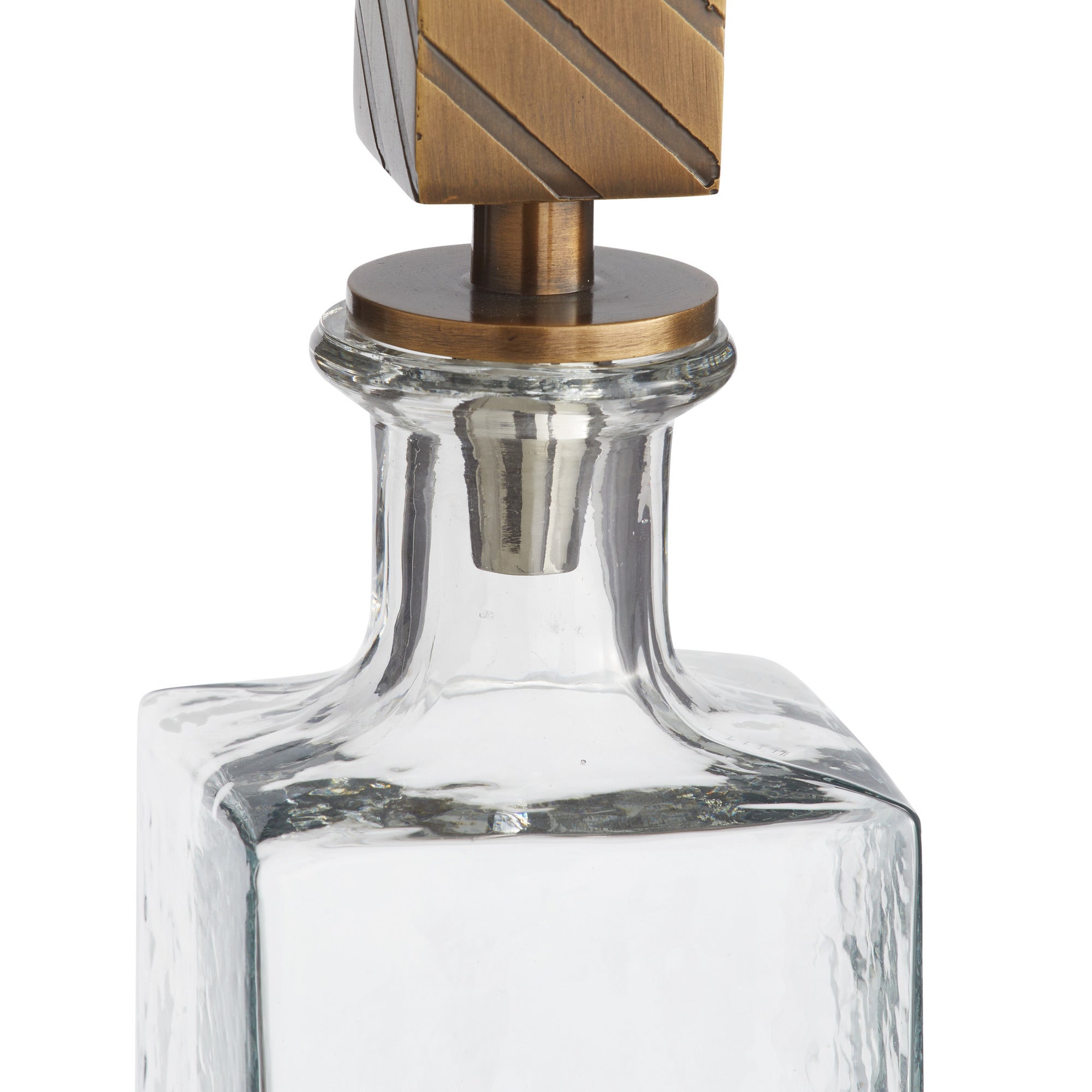 DescriptionDesigned to complement a masculine bar cart, this pair of sophisticated clear hammered glass decanters possesses a preppy appeal. The rectangular stoppers, made of antique brass and nickel, have an embossed hatched pattern reminiscent of the stripes on a classic rep tie.