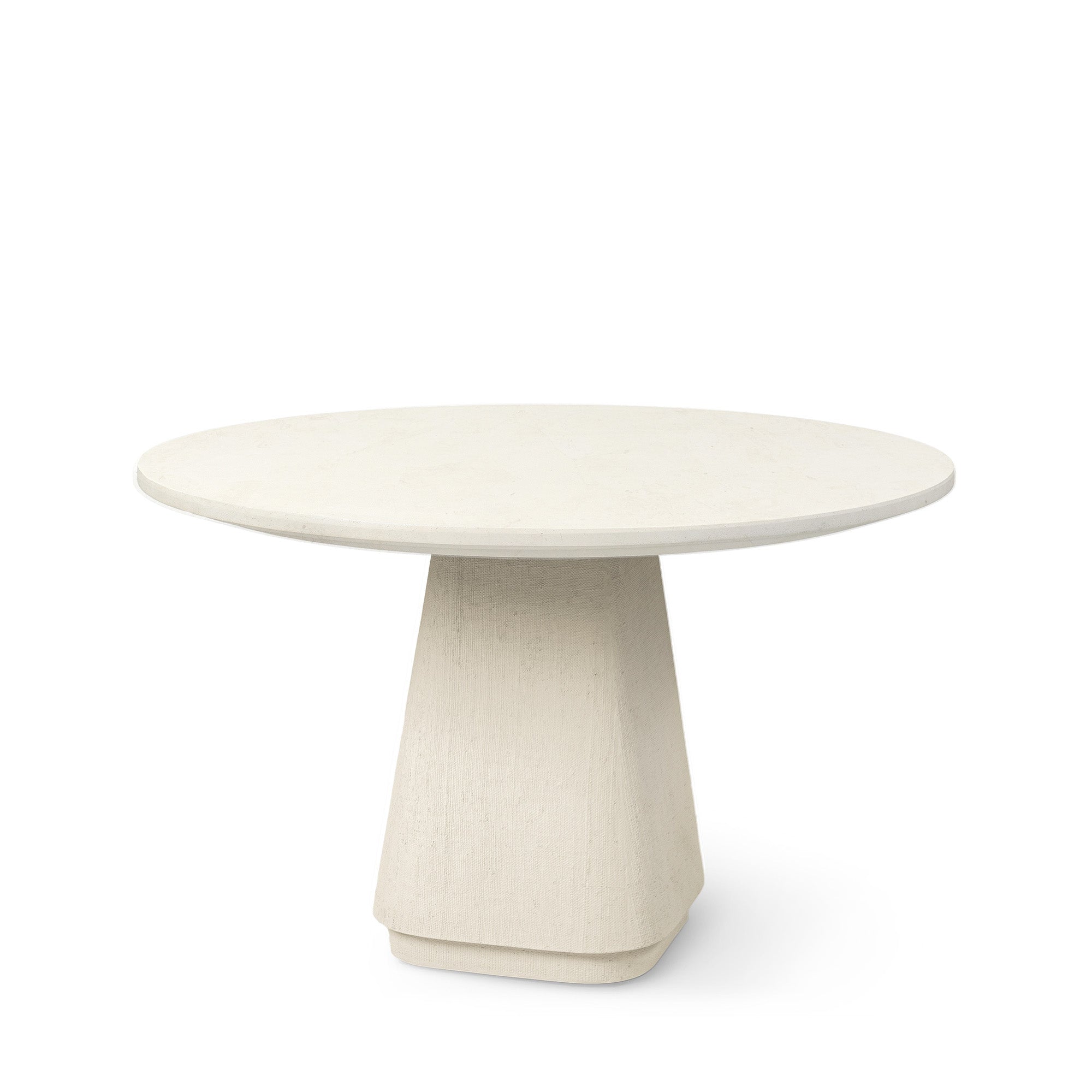 DescriptionPALECEK Studio Collection. Table base showcases the natural beauty and texture of raffia cast in resin with an elegant white eggshell finish. Tabletop is customizable, select a material that perfectly fits your style. Create a fully outdoor suitable table with a top made of arabia stone, fossilized clam, stonecast or white agate. Or combine with a wood top available in any PALECEK finish, making the table for indoor use only.