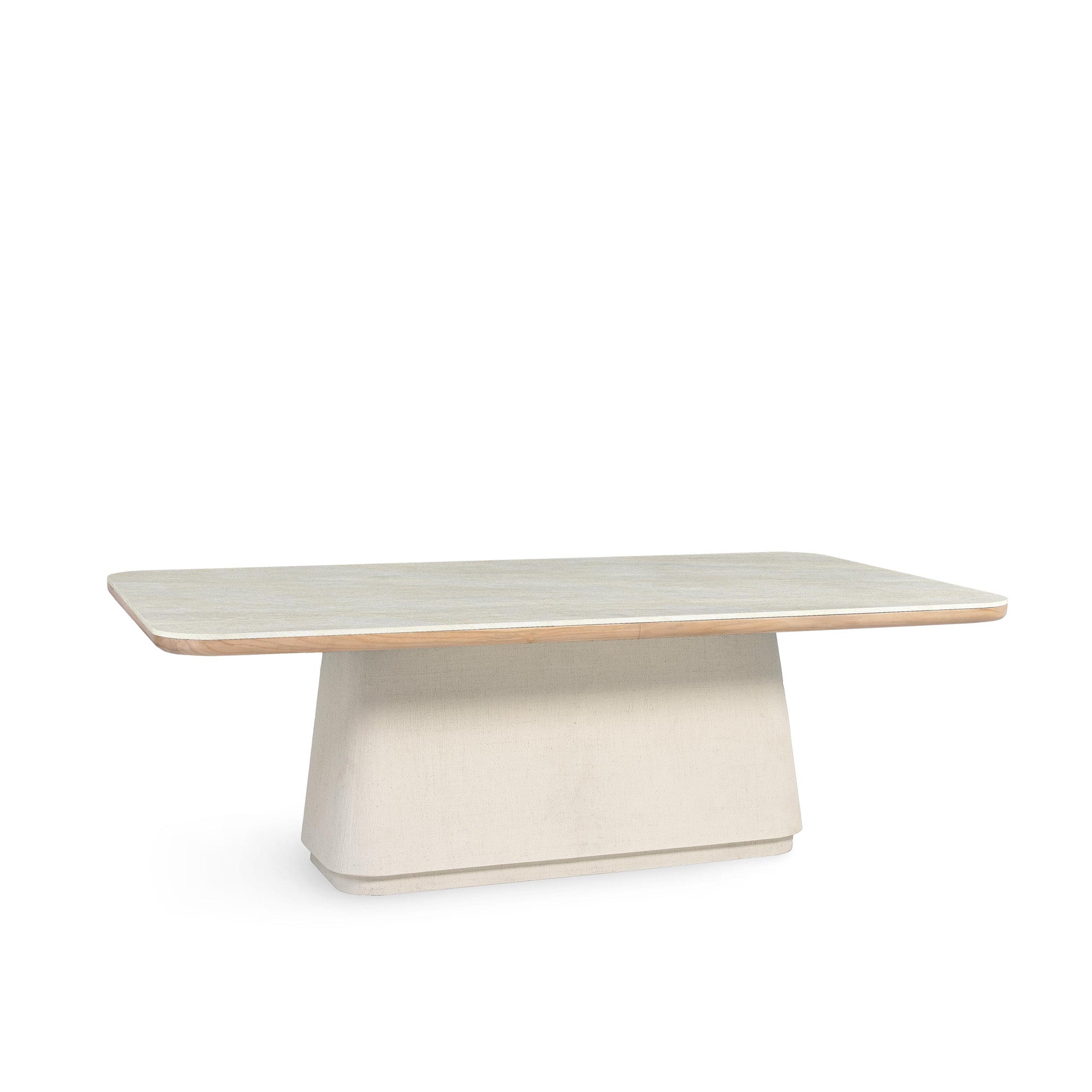 DescriptionPALECEK Studio Collection. Table base showcases the natural beauty and texture of raffia cast in resin with an elegant white eggshell finish. Tabletop is fully customizable, select the size and material that perfectly fits your style and needs. Create a fully outdoor suitable table with a top made of fossilized clam, teak wood, white agate or quadra teak stone in a sand or earth tone. Or combine with a wood top available in any PALECEK finish, making the table for indoor use only.
