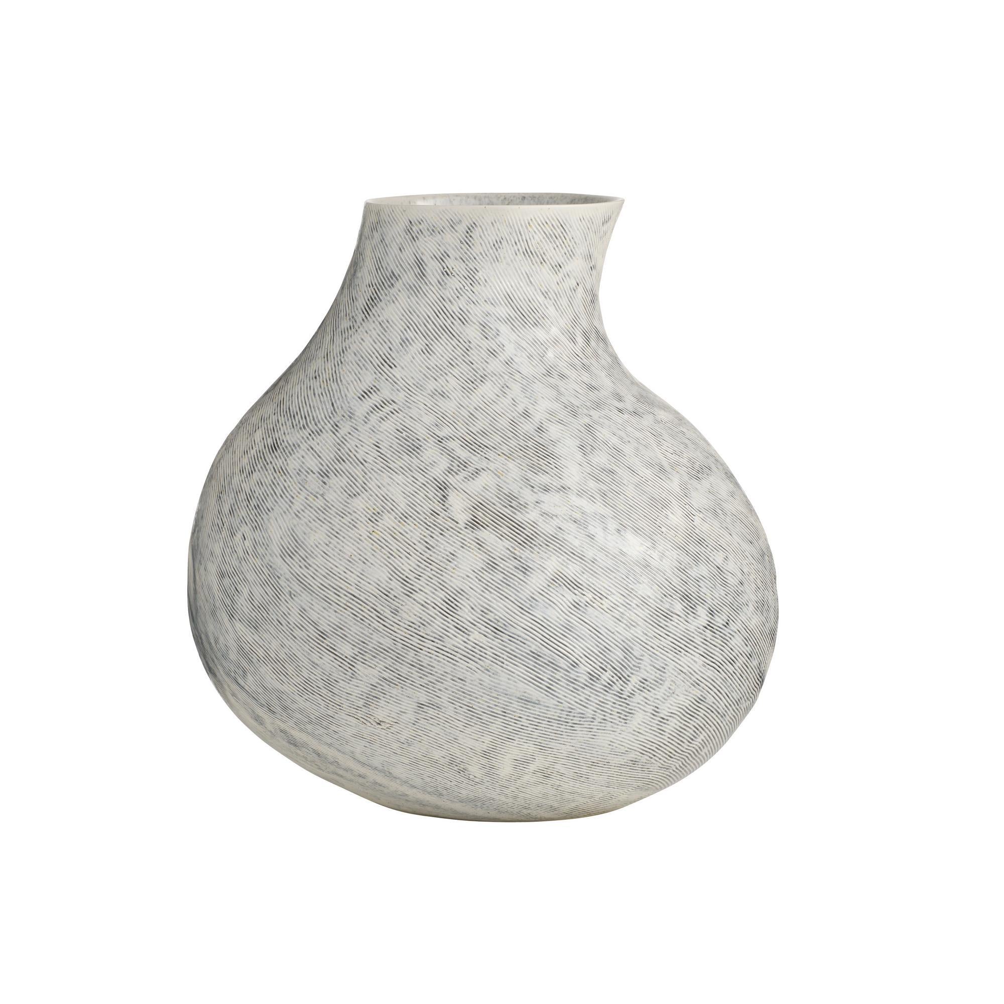DescriptionThe curves of a tulip bulb elevate our free-form, large-scale vase of the finest porcelain. Finished in ice-reactive glaze, this contemporary artifact has an appealing, hand-thrown texture and made to be watertight. Finish will vary.