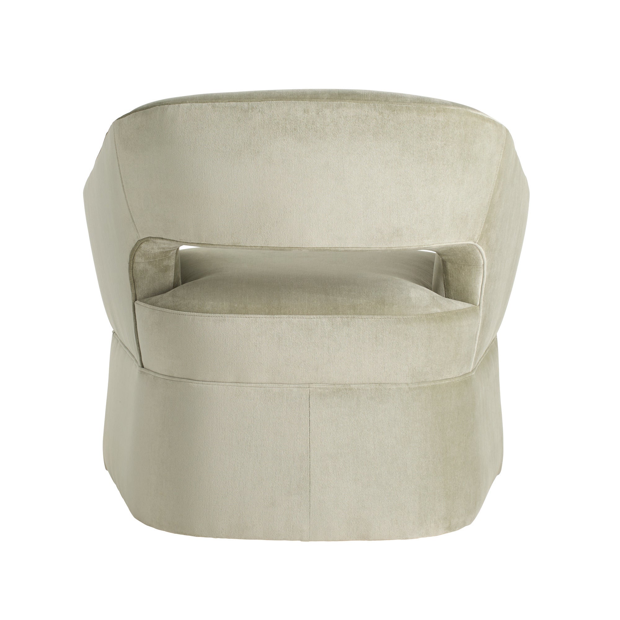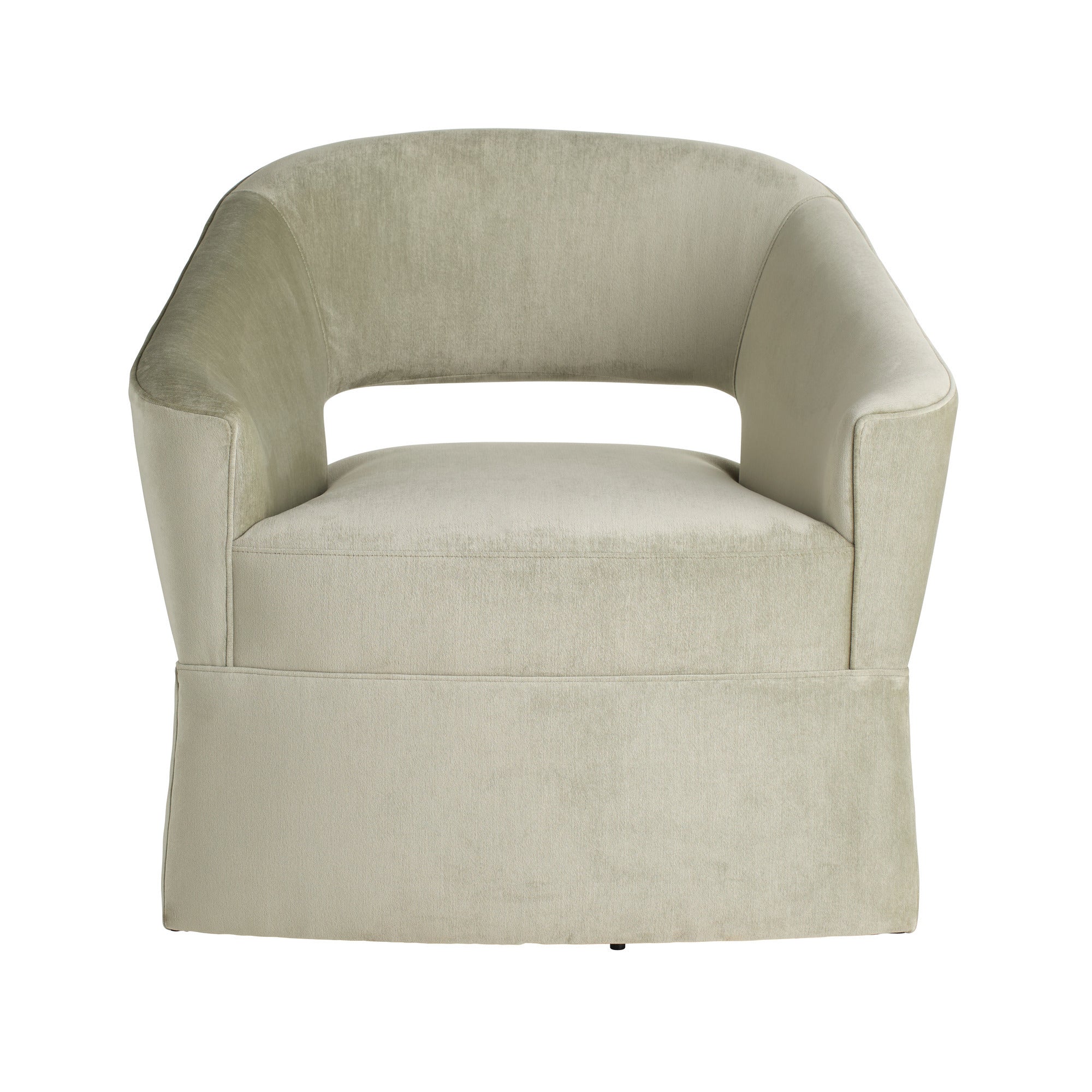 DescriptionThe hourglass shape of this chair features a tailored arm and a cutout back, making it stylish from any angle. Upholstered in sage performance velvet and mounted on a blackened iron swivel base, it combines striking design with practical, everyday functionality.