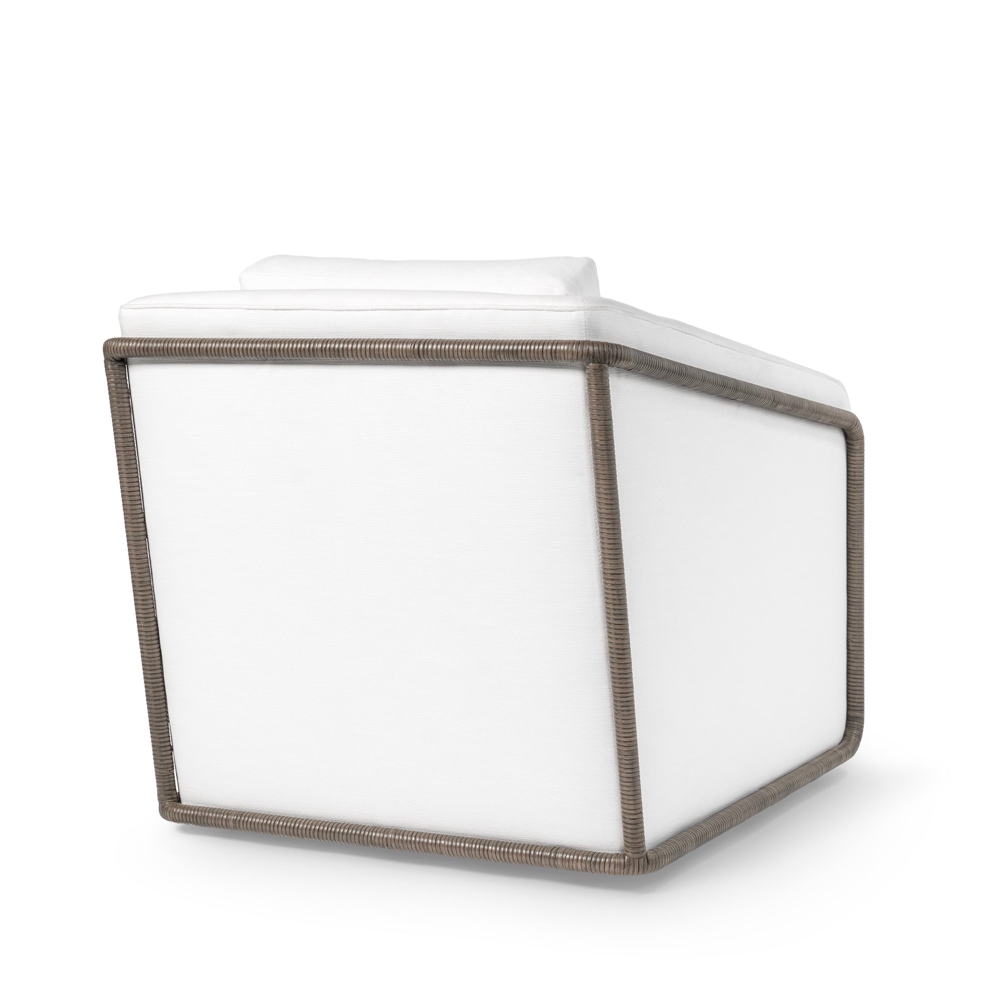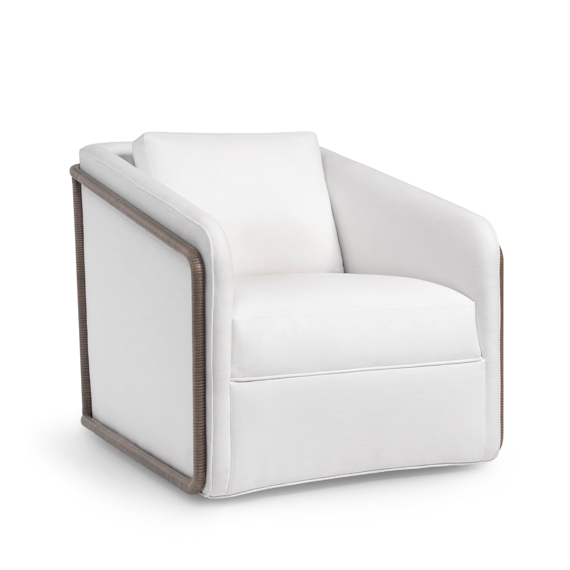 DescriptionCore rattan hand-wrapped over a metal frame and legs featuring a fully upholstered inside and outside back, front apron, fixed upholstered seat and a 360 degree swivel mechanism. Available in all PALECEK finishes. Coordinates with the Madrid collection.