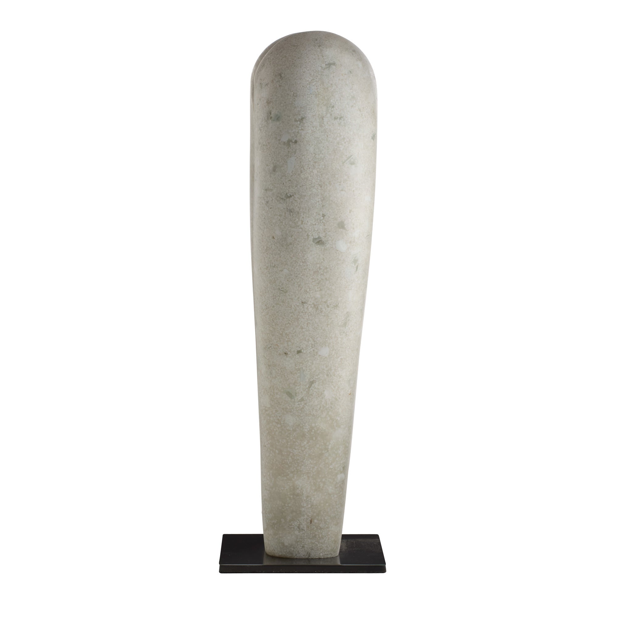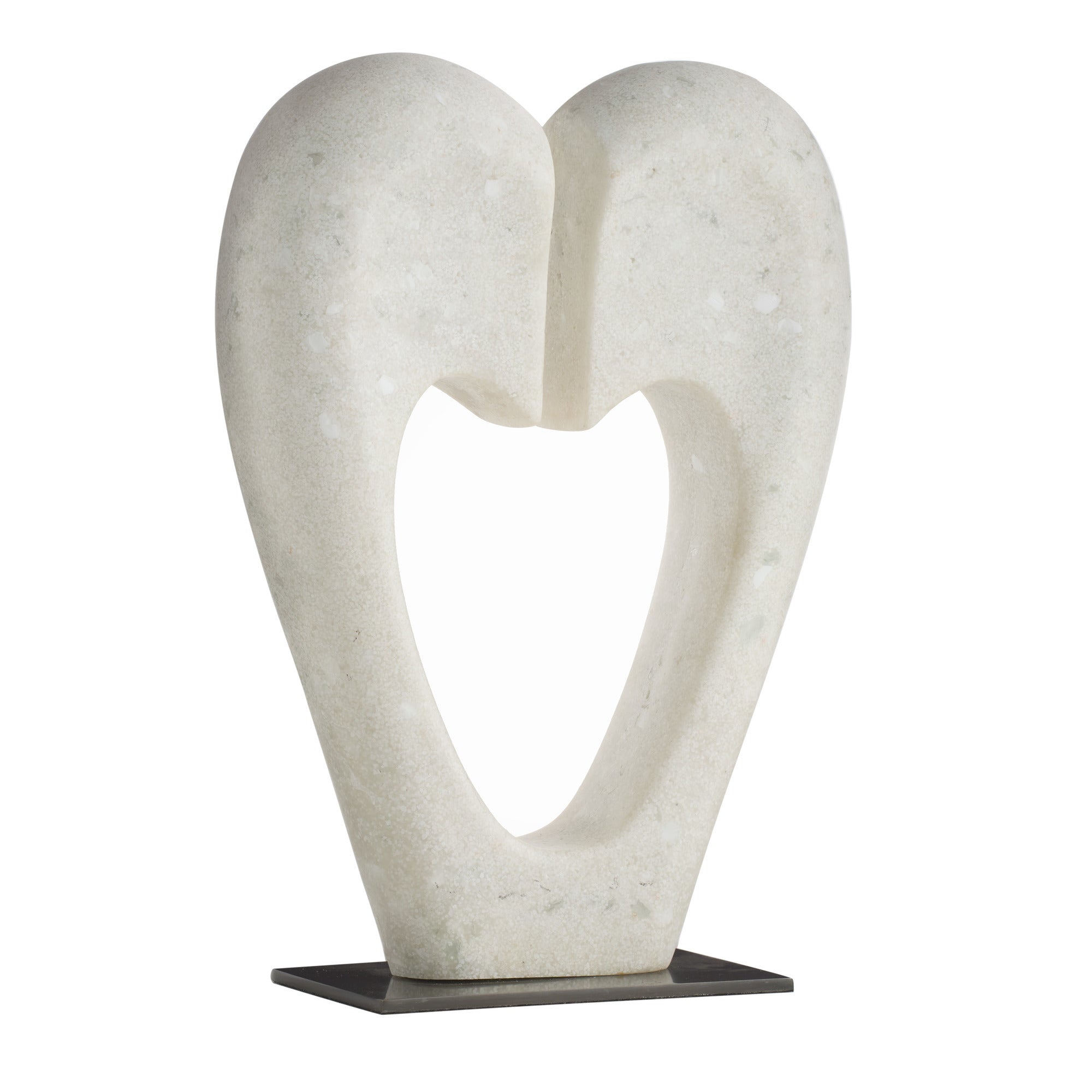 DescriptionMaking the most of the balance between positive and negative space, an abstract ivory glass stone composite form recalls a modernist heart. Secured to a square base of bronze iron, this monolithic style intrigues from every angle. Finish will vary.