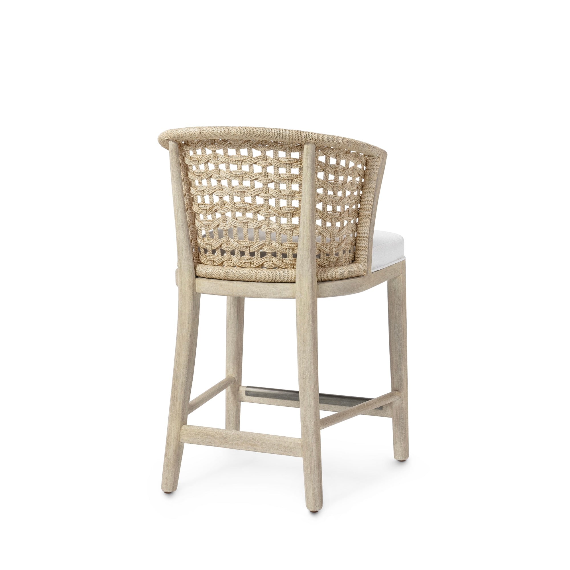 DescriptionHardwood frame and legs with a cerused light whitewash finish featuring natural hand-twisted abaca rope in a unique open weave design backrest and sides. Stool comes with a pewter finished metal kick plate on the front stretcher and a fixed upholstered seat. Coordinates with the Melani collection. Stool is also available with a 26" (781701) or 30" (754701) seat height.