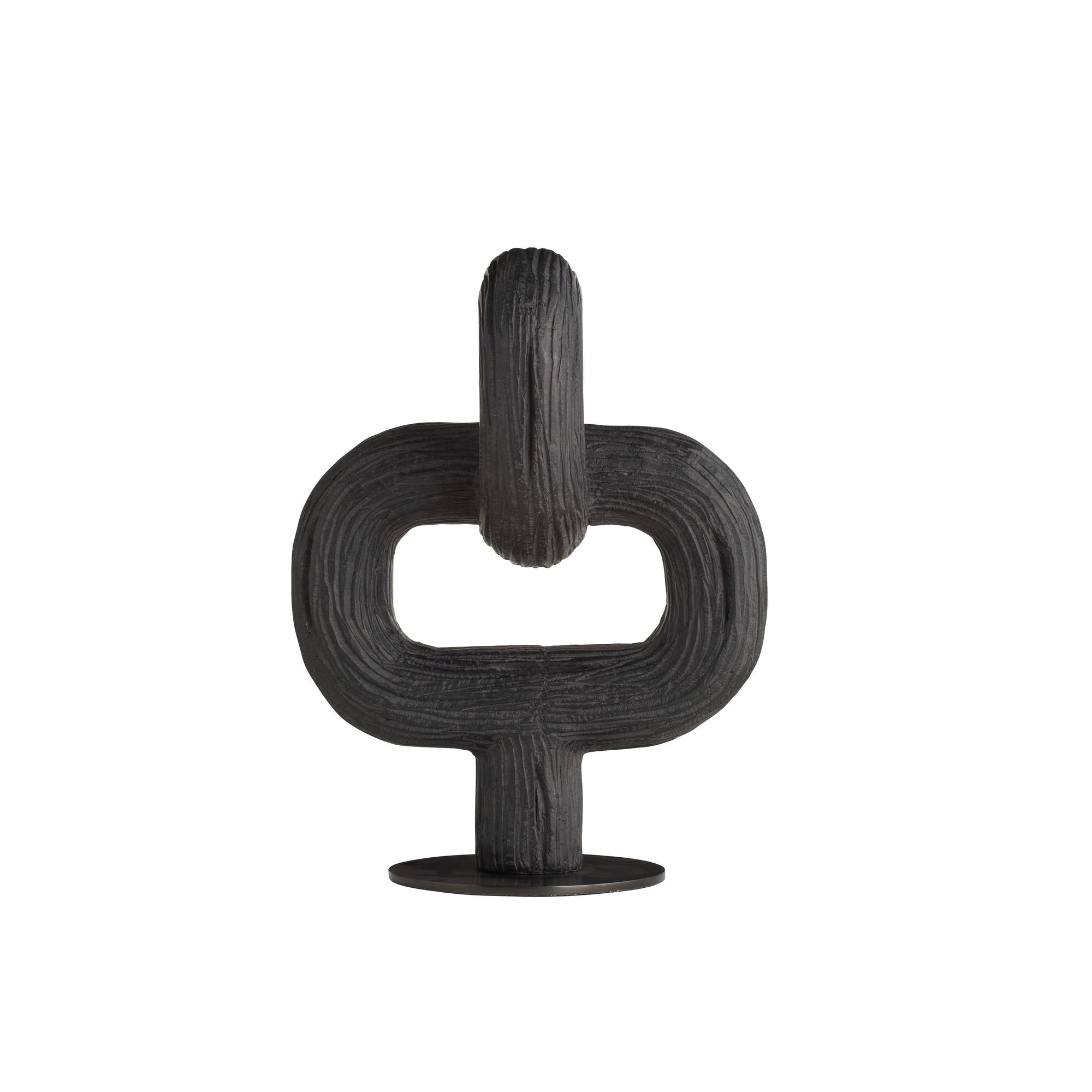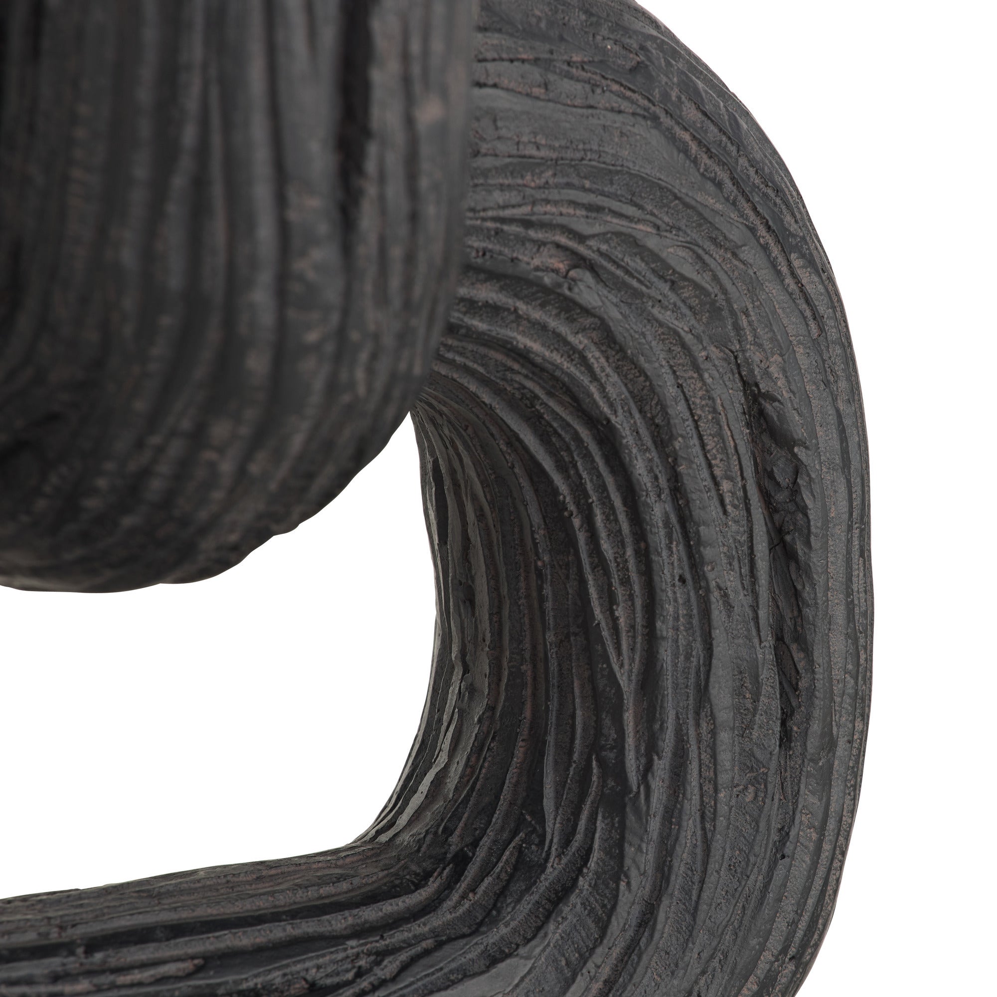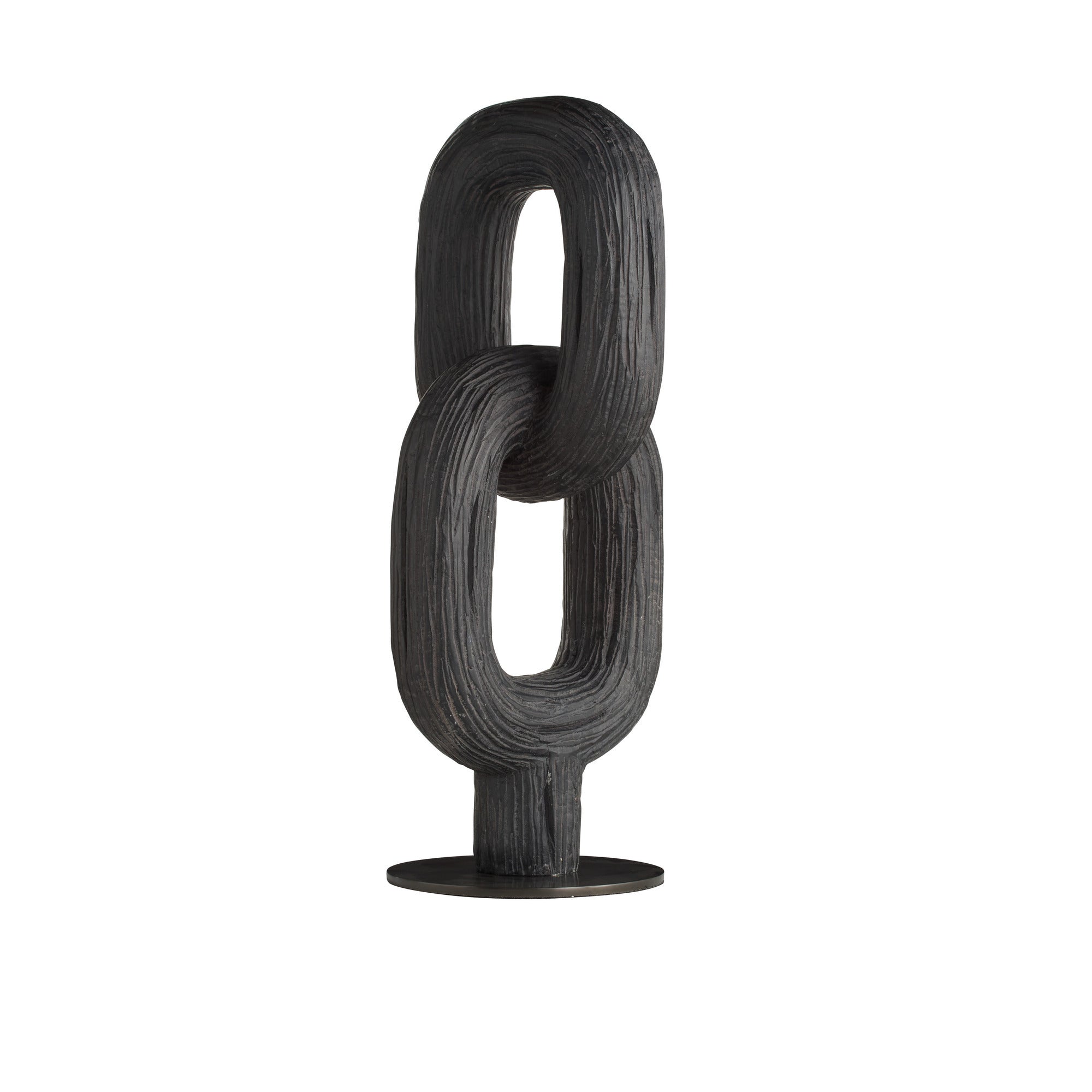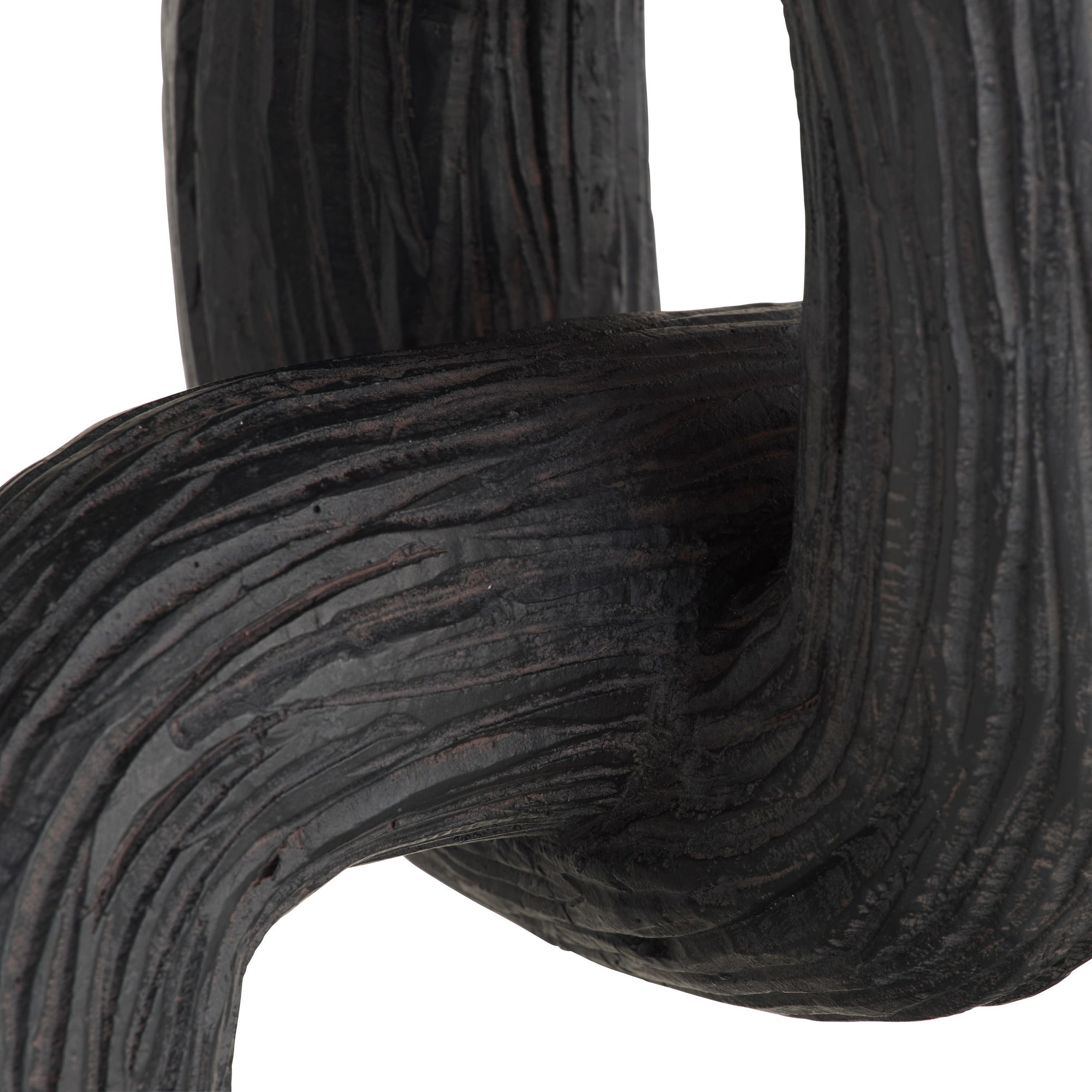 DescriptionReminiscent of forged links, these sculptures add scale and texture to any display. Secured to a circular base of bronze iron, each resin form finished in ebony can be displayed together or separately. Finish will vary.