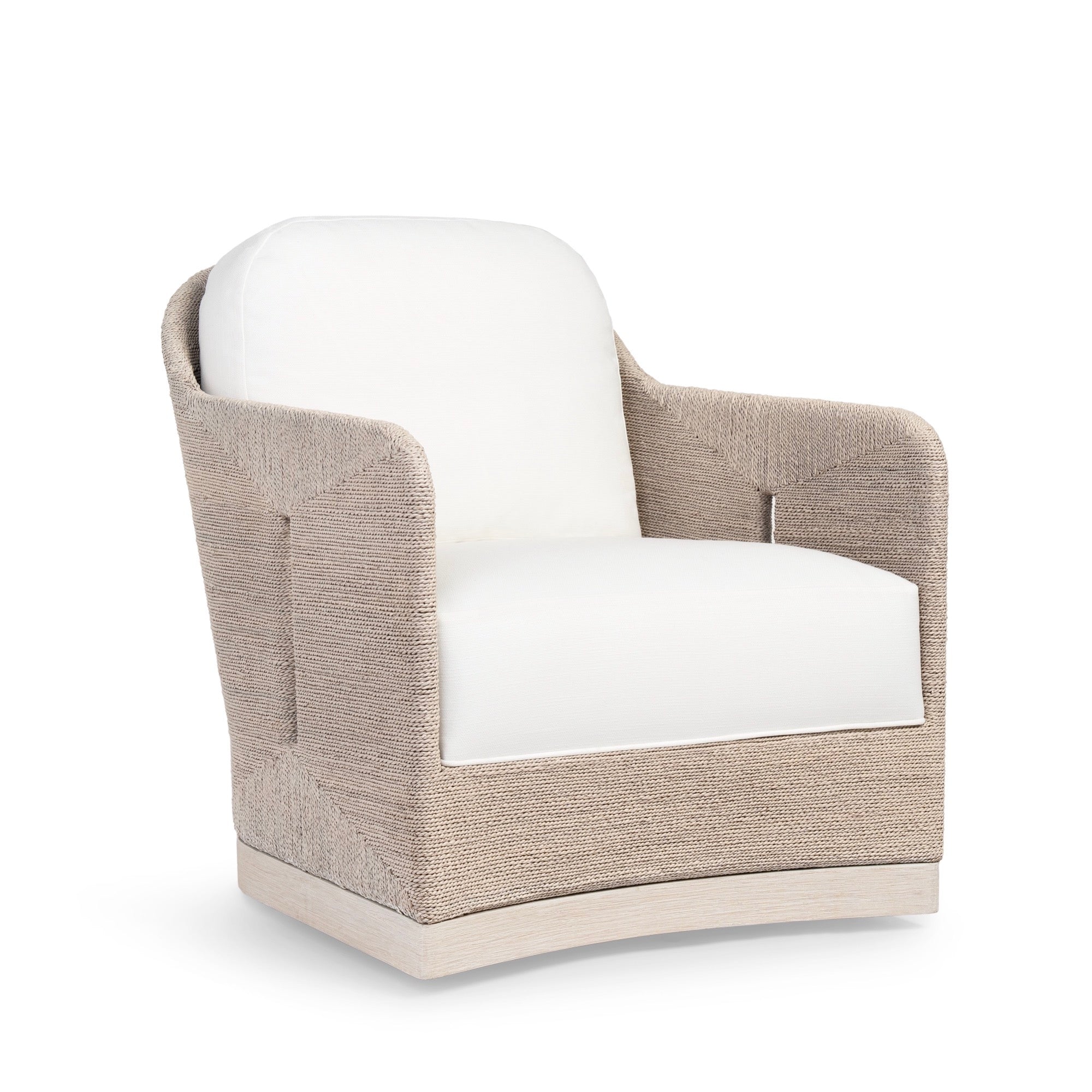 DescriptionHardwood frame featuring lampakanay rope hand-twisted and woven around a double wall back, sides and arms in an intricately unique pattern accented with a hand-distressed hardwood apron all in a whitewash finish. Chair comes with a fixed upholstered seat and loose back cushion. Coordinates with the Mesa whitewash collection.